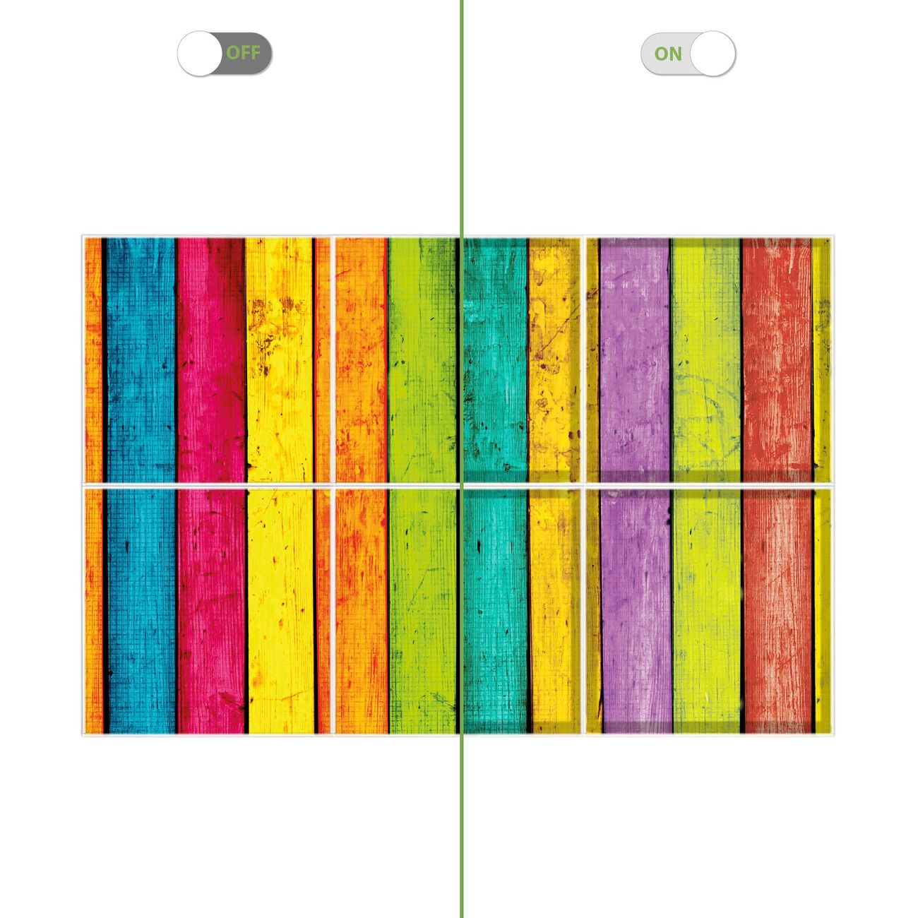 Entdecken Sie unsere vielseitigen Lichtdecken, hier in der Größe 186 x 124cm mit dem Motiv Motiv Bunte Holzlatten - Ihre Beleuchtungslösung für jede Umgebung Beleuchten Sie Ihren Raum nicht nur, sondern schaffen Sie Atmosphäre! Die banjado Lichtdecke verwandelt jeden Ort, ob zu Hause, in Praxen, Büros oder Studios in eine Wohlfühloase. Unsere einzelnen Elemente haben eine genormte Einheitsgröße von 62 x 62cm und können somit in jede gängige Rasterdecken verbaut werden. So finden Sie Ihre passende Ausführung: Gern helfen wir Ihnen, die passende Ausführung zu wählen. Hierfür muss die aktuelle Gegebenheit Ihrer Decke oder Wand beachtet werden. Haben Sie bereits eine Rasterdecke (auch Odenwalddecke genannt)? Hier bestellen Sie lediglich das Motiv + Beleuchtungspanel, denn beides wird in die bereits vorhandene Decke eingelegt. Haben Sie eine glatte Decke mit Lichtauslass oder möchten die Lichtdecke an der Wand befestigen? Hier bestellen Sie bitte Motiv + Beleuchtungspanel + Deckenbefestigung, eine Aufbauanleitung liegt immer bei. Die Lichtdecke kann sowohl an der Decke als auch an der Wand montiert werden, perfekt für kreative Lichtakzente oder alternative Beleuchtungslösungen. Haben Sie bereits eine Lichtdecke und möchten nur das Motiv wechseln? Hier bestellen Sie bitte nur Motiv, der Wechsel ist denkbar einfach. Der Aufbau Ihrer banjado Lichtdecke gestaltet sich unkompliziert, dank einer verständlichen Anleitung, die Ihnen Schritt für Schritt durch den Montageprozess hilft. Für die endgültige Installation und den sicheren Anschluss empfehlen wir die Hinzuziehung eines Fachmanns, um die optimale Funktion und Sicherheit Ihrer Beleuchtung zu gewährleisten. Falls Sie einen Fachmann für die Installation benötigen, geben Sie uns gern Bescheid, wir vermitteln Ihnen gern einen geeigneten Ansprechpartner aus Ihrer Nähe. Steuerung: Steigern Sie Ihr Beleuchtungserlebnis mit der nahtlosen Integration in Ihr Smart Home. Durch die Kompatibilität mit der SmartLife App, Alexa und Google Assistant wird Ihr Smartphone zur zentralen Steuerungseinheit. Ihr Handy fungiert hierbei sozusagen als Fernbedienung. Legen Sie individuelle Lichtszenen in der App fest, die bei Aktivierung über den Wand-Ein-/Ausschalter immer wieder abgerufen werden können ohne Handy. Mit der Szenenfunktion in der Smart App können Sie die Beleuchtung personalisieren und steuern, sodass sie auf Ihre individuellen Bedürfnisse, Tagesrhythmus und Stimmung zugeschnitten ist. Beispielsweise können Sie sich in der Morgendämmerung durch ein sanftes Licht wecken lassen oder das Licht der Praxis werktags um 7 Uhr automatisch einschalten lassen. Dieses kann dann natürlich auch zu einer bestimmten Zeit automatisch ausgeschaltet werden. Motivwahl: Diese einzigartige Lichtdecke zeichnet sich durch ihre Fähigkeit aus, die Lichtfarbe je nach gewähltem Motiv anzupassen - ein Baum wirft ein sanftes grünes Licht, während eine Wolkendecke Ihren Raum in ein beruhigendes blaues Leuchten hüllt. Berücksichtigen Sie dies bitte bei Ihrer Motivauswahl. Sie können das Motiv jederzeit ohne großen Aufwand austauschen, ob nach Jahreszeit oder anderem Anlass, unsere Auswahl lässt kaum Wünsche offen. Wir fertigen Ihnen gern eine personalisierte Lichtdecke mit einem eigenen Motiv oder Logo oder Foto, schreiben Sie uns jederzeit an. Technische Daten: Das Motiv ist auf einer 4mm starken Acrylglas Scheibe aufgebracht, das Gesamtgewicht Ihrer Ausführung beträgt 29,6kg. Die Farbtemperatur lässt sich frei einstellen von 3000 bis 6000 Kelvin, damit können Sie stufenlos zwischen warmweiß, neutralweiß und kaltweiß wählen. Die Gesamtleistung bei Ihrer gewählten Ausführung beträgt 240W. Der Lichtstrom beträgt 3600 Lumen, die Nennspannung 230 V. Die Lichtdecke ist mit Schutzart IP20 für den Innenbereich konzipiert und sollte nicht im Nassbereich verwendet werden.