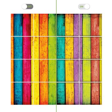 Motiv Bunte Holzlatten Nr. 10620 Größe: 248x248x1cm BxHxT Gewicht: ca. 68,80 kg Material: Acylglas, Metall, hochwertig bedruckte Premiumfolie Druck: farbbrilliant, hochauflösend Stärke Glas: 4mm Acylglas Einzelelement: 62x62cm groß Dimmbar: JA LED Paneel: 40W, 230V, 3600lm, 4000K neutralweiß Steuerung: SmartApp / Alexa / Google Assistent oder ähnliche