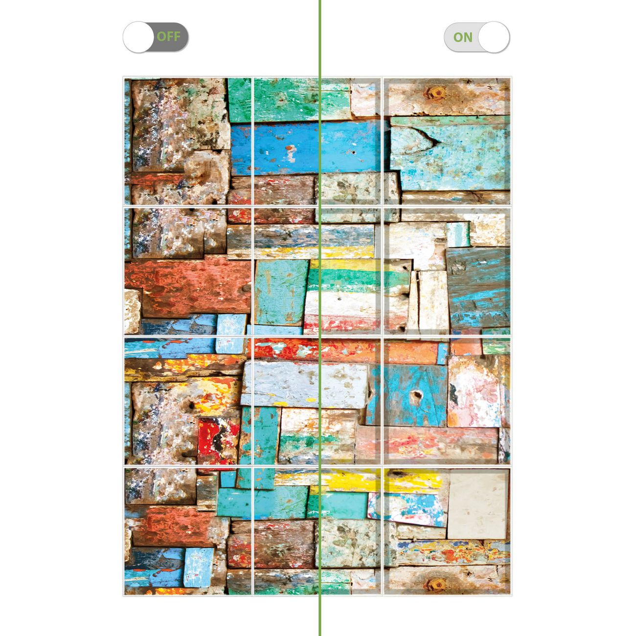 Entdecken Sie unsere vielseitigen Lichtdecken, hier in der Größe 186 x 248cm mit dem Motiv Motiv Bunte Holzschindeln - Ihre Beleuchtungslösung für jede Umgebung Beleuchten Sie Ihren Raum nicht nur, sondern schaffen Sie Atmosphäre! Die banjado Lichtdecke verwandelt jeden Ort, ob zu Hause, in Praxen, Büros oder Studios in eine Wohlfühloase. Unsere einzelnen Elemente haben eine genormte Einheitsgröße von 62 x 62cm und können somit in jede gängige Rasterdecken verbaut werden. So finden Sie Ihre passende Ausführung: Gern helfen wir Ihnen, die passende Ausführung zu wählen. Hierfür muss die aktuelle Gegebenheit Ihrer Decke oder Wand beachtet werden. Haben Sie bereits eine Rasterdecke (auch Odenwalddecke genannt)? Hier bestellen Sie lediglich das Motiv + Beleuchtungspanel, denn beides wird in die bereits vorhandene Decke eingelegt. Haben Sie eine glatte Decke mit Lichtauslass oder möchten die Lichtdecke an der Wand befestigen? Hier bestellen Sie bitte Motiv + Beleuchtungspanel + Deckenbefestigung, eine Aufbauanleitung liegt immer bei. Die Lichtdecke kann sowohl an der Decke als auch an der Wand montiert werden, perfekt für kreative Lichtakzente oder alternative Beleuchtungslösungen. Haben Sie bereits eine Lichtdecke und möchten nur das Motiv wechseln? Hier bestellen Sie bitte nur Motiv, der Wechsel ist denkbar einfach. Der Aufbau Ihrer banjado Lichtdecke gestaltet sich unkompliziert, dank einer verständlichen Anleitung, die Ihnen Schritt für Schritt durch den Montageprozess hilft. Für die endgültige Installation und den sicheren Anschluss empfehlen wir die Hinzuziehung eines Fachmanns, um die optimale Funktion und Sicherheit Ihrer Beleuchtung zu gewährleisten. Falls Sie einen Fachmann für die Installation benötigen, geben Sie uns gern Bescheid, wir vermitteln Ihnen gern einen geeigneten Ansprechpartner aus Ihrer Nähe. Steuerung: Steigern Sie Ihr Beleuchtungserlebnis mit der nahtlosen Integration in Ihr Smart Home. Durch die Kompatibilität mit der SmartLife App, Alexa und Google Assistant wird Ihr Smartphone zur zentralen Steuerungseinheit. Ihr Handy fungiert hierbei sozusagen als Fernbedienung. Legen Sie individuelle Lichtszenen in der App fest, die bei Aktivierung über den Wand-Ein-/Ausschalter immer wieder abgerufen werden können ohne Handy. Mit der Szenenfunktion in der Smart App können Sie die Beleuchtung personalisieren und steuern, sodass sie auf Ihre individuellen Bedürfnisse, Tagesrhythmus und Stimmung zugeschnitten ist. Beispielsweise können Sie sich in der Morgendämmerung durch ein sanftes Licht wecken lassen oder das Licht der Praxis werktags um 7 Uhr automatisch einschalten lassen. Dieses kann dann natürlich auch zu einer bestimmten Zeit automatisch ausgeschaltet werden. Motivwahl: Diese einzigartige Lichtdecke zeichnet sich durch ihre Fähigkeit aus, die Lichtfarbe je nach gewähltem Motiv anzupassen - ein Baum wirft ein sanftes grünes Licht, während eine Wolkendecke Ihren Raum in ein beruhigendes blaues Leuchten hüllt. Berücksichtigen Sie dies bitte bei Ihrer Motivauswahl. Sie können das Motiv jederzeit ohne großen Aufwand austauschen, ob nach Jahreszeit oder anderem Anlass, unsere Auswahl lässt kaum Wünsche offen. Wir fertigen Ihnen gern eine personalisierte Lichtdecke mit einem eigenen Motiv oder Logo oder Foto, schreiben Sie uns jederzeit an. Technische Daten: Das Motiv ist auf einer 4mm starken Acrylglas Scheibe aufgebracht, das Gesamtgewicht Ihrer Ausführung beträgt 27,1kg. Die Farbtemperatur lässt sich frei einstellen von 3000 bis 6000 Kelvin, damit können Sie stufenlos zwischen warmweiß, neutralweiß und kaltweiß wählen. Die Gesamtleistung bei Ihrer gewählten Ausführung beträgt 480W. Der Lichtstrom beträgt 3600 Lumen, die Nennspannung 230 V. Die Lichtdecke ist mit Schutzart IP20 für den Innenbereich konzipiert und sollte nicht im Nassbereich verwendet werden.