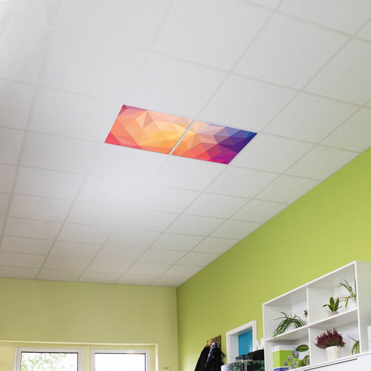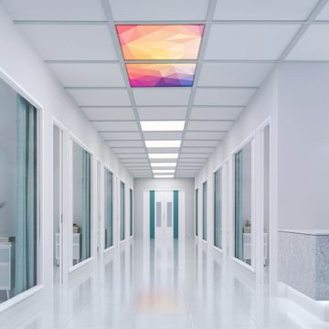 Entdecken Sie unsere vielseitigen Lichtdecken, hier in der Größe 124 x 62cm mit dem Motiv Motiv Bunte Kristalle - Ihre Beleuchtungslösung für jede Umgebung Beleuchten Sie Ihren Raum nicht nur, sondern schaffen Sie Atmosphäre! Die banjado Lichtdecke verwandelt jeden Ort, ob zu Hause, in Praxen, Büros oder Studios in eine Wohlfühloase. Unsere einzelnen Elemente haben eine genormte Einheitsgröße von 62 x 62cm und können somit in jede gängige Rasterdecken verbaut werden. So finden Sie Ihre passende Ausführung: Gern helfen wir Ihnen, die passende Ausführung zu wählen. Hierfür muss die aktuelle Gegebenheit Ihrer Decke oder Wand beachtet werden. Haben Sie bereits eine Rasterdecke (auch Odenwalddecke genannt)? Hier bestellen Sie lediglich das Motiv + Beleuchtungspanel, denn beides wird in die bereits vorhandene Decke eingelegt. Haben Sie eine glatte Decke mit Lichtauslass oder möchten die Lichtdecke an der Wand befestigen? Hier bestellen Sie bitte Motiv + Beleuchtungspanel + Deckenbefestigung, eine Aufbauanleitung liegt immer bei. Die Lichtdecke kann sowohl an der Decke als auch an der Wand montiert werden, perfekt für kreative Lichtakzente oder alternative Beleuchtungslösungen. Haben Sie bereits eine Lichtdecke und möchten nur das Motiv wechseln? Hier bestellen Sie bitte nur Motiv, der Wechsel ist denkbar einfach. Der Aufbau Ihrer banjado Lichtdecke gestaltet sich unkompliziert, dank einer verständlichen Anleitung, die Ihnen Schritt für Schritt durch den Montageprozess hilft. Für die endgültige Installation und den sicheren Anschluss empfehlen wir die Hinzuziehung eines Fachmanns, um die optimale Funktion und Sicherheit Ihrer Beleuchtung zu gewährleisten. Falls Sie einen Fachmann für die Installation benötigen, geben Sie uns gern Bescheid, wir vermitteln Ihnen gern einen geeigneten Ansprechpartner aus Ihrer Nähe. Steuerung: Steigern Sie Ihr Beleuchtungserlebnis mit der nahtlosen Integration in Ihr Smart Home. Durch die Kompatibilität mit der SmartLife App, Alexa und Google Assistant wird Ihr Smartphone zur zentralen Steuerungseinheit. Ihr Handy fungiert hierbei sozusagen als Fernbedienung. Legen Sie individuelle Lichtszenen in der App fest, die bei Aktivierung über den Wand-Ein-/Ausschalter immer wieder abgerufen werden können ohne Handy. Mit der Szenenfunktion in der Smart App können Sie die Beleuchtung personalisieren und steuern, sodass sie auf Ihre individuellen Bedürfnisse, Tagesrhythmus und Stimmung zugeschnitten ist. Beispielsweise können Sie sich in der Morgendämmerung durch ein sanftes Licht wecken lassen oder das Licht der Praxis werktags um 7 Uhr automatisch einschalten lassen. Dieses kann dann natürlich auch zu einer bestimmten Zeit automatisch ausgeschaltet werden. Motivwahl: Diese einzigartige Lichtdecke zeichnet sich durch ihre Fähigkeit aus, die Lichtfarbe je nach gewähltem Motiv anzupassen - ein Baum wirft ein sanftes grünes Licht, während eine Wolkendecke Ihren Raum in ein beruhigendes blaues Leuchten hüllt. Berücksichtigen Sie dies bitte bei Ihrer Motivauswahl. Sie können das Motiv jederzeit ohne großen Aufwand austauschen, ob nach Jahreszeit oder anderem Anlass, unsere Auswahl lässt kaum Wünsche offen. Wir fertigen Ihnen gern eine personalisierte Lichtdecke mit einem eigenen Motiv oder Logo oder Foto, schreiben Sie uns jederzeit an. Technische Daten: Das Motiv ist auf einer 4mm starken Acrylglas Scheibe aufgebracht, das Gesamtgewicht Ihrer Ausführung beträgt 8,9kg. Die Farbtemperatur lässt sich frei einstellen von 3000 bis 6000 Kelvin, damit können Sie stufenlos zwischen warmweiß, neutralweiß und kaltweiß wählen. Die Gesamtleistung bei Ihrer gewählten Ausführung beträgt 80W. Der Lichtstrom beträgt 3600 Lumen, die Nennspannung 230 V. Die Lichtdecke ist mit Schutzart IP20 für den Innenbereich konzipiert und sollte nicht im Nassbereich verwendet werden.