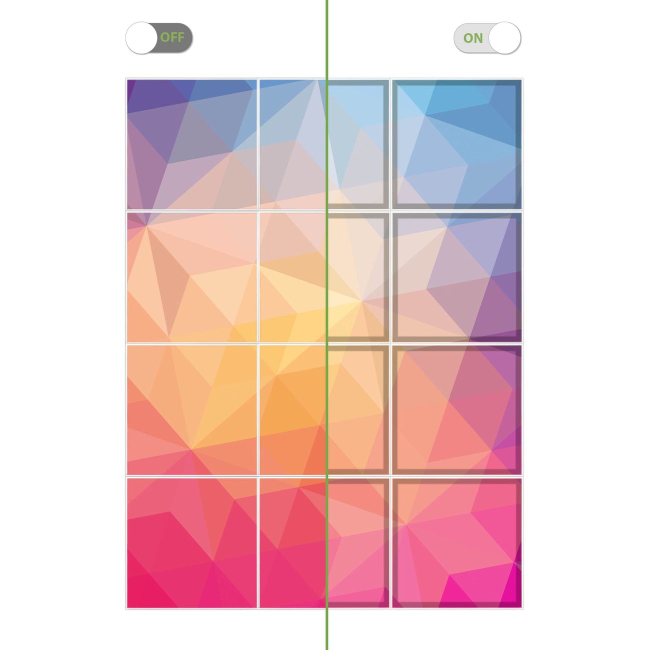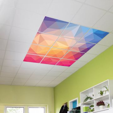 Entdecken Sie unsere vielseitigen Lichtdecken, hier in der Größe 186 x 248cm mit dem Motiv Motiv Bunte Kristalle - Ihre Beleuchtungslösung für jede Umgebung Beleuchten Sie Ihren Raum nicht nur, sondern schaffen Sie Atmosphäre! Die banjado Lichtdecke verwandelt jeden Ort, ob zu Hause, in Praxen, Büros oder Studios in eine Wohlfühloase. Unsere einzelnen Elemente haben eine genormte Einheitsgröße von 62 x 62cm und können somit in jede gängige Rasterdecken verbaut werden. So finden Sie Ihre passende Ausführung: Gern helfen wir Ihnen, die passende Ausführung zu wählen. Hierfür muss die aktuelle Gegebenheit Ihrer Decke oder Wand beachtet werden. Haben Sie bereits eine Rasterdecke (auch Odenwalddecke genannt)? Hier bestellen Sie lediglich das Motiv + Beleuchtungspanel, denn beides wird in die bereits vorhandene Decke eingelegt. Haben Sie eine glatte Decke mit Lichtauslass oder möchten die Lichtdecke an der Wand befestigen? Hier bestellen Sie bitte Motiv + Beleuchtungspanel + Deckenbefestigung, eine Aufbauanleitung liegt immer bei. Die Lichtdecke kann sowohl an der Decke als auch an der Wand montiert werden, perfekt für kreative Lichtakzente oder alternative Beleuchtungslösungen. Haben Sie bereits eine Lichtdecke und möchten nur das Motiv wechseln? Hier bestellen Sie bitte nur Motiv, der Wechsel ist denkbar einfach. Der Aufbau Ihrer banjado Lichtdecke gestaltet sich unkompliziert, dank einer verständlichen Anleitung, die Ihnen Schritt für Schritt durch den Montageprozess hilft. Für die endgültige Installation und den sicheren Anschluss empfehlen wir die Hinzuziehung eines Fachmanns, um die optimale Funktion und Sicherheit Ihrer Beleuchtung zu gewährleisten. Falls Sie einen Fachmann für die Installation benötigen, geben Sie uns gern Bescheid, wir vermitteln Ihnen gern einen geeigneten Ansprechpartner aus Ihrer Nähe. Steuerung: Steigern Sie Ihr Beleuchtungserlebnis mit der nahtlosen Integration in Ihr Smart Home. Durch die Kompatibilität mit der SmartLife App, Alexa und Google Assistant wird Ihr Smartphone zur zentralen Steuerungseinheit. Ihr Handy fungiert hierbei sozusagen als Fernbedienung. Legen Sie individuelle Lichtszenen in der App fest, die bei Aktivierung über den Wand-Ein-/Ausschalter immer wieder abgerufen werden können ohne Handy. Mit der Szenenfunktion in der Smart App können Sie die Beleuchtung personalisieren und steuern, sodass sie auf Ihre individuellen Bedürfnisse, Tagesrhythmus und Stimmung zugeschnitten ist. Beispielsweise können Sie sich in der Morgendämmerung durch ein sanftes Licht wecken lassen oder das Licht der Praxis werktags um 7 Uhr automatisch einschalten lassen. Dieses kann dann natürlich auch zu einer bestimmten Zeit automatisch ausgeschaltet werden. Motivwahl: Diese einzigartige Lichtdecke zeichnet sich durch ihre Fähigkeit aus, die Lichtfarbe je nach gewähltem Motiv anzupassen - ein Baum wirft ein sanftes grünes Licht, während eine Wolkendecke Ihren Raum in ein beruhigendes blaues Leuchten hüllt. Berücksichtigen Sie dies bitte bei Ihrer Motivauswahl. Sie können das Motiv jederzeit ohne großen Aufwand austauschen, ob nach Jahreszeit oder anderem Anlass, unsere Auswahl lässt kaum Wünsche offen. Wir fertigen Ihnen gern eine personalisierte Lichtdecke mit einem eigenen Motiv oder Logo oder Foto, schreiben Sie uns jederzeit an. Technische Daten: Das Motiv ist auf einer 4mm starken Acrylglas Scheibe aufgebracht, das Gesamtgewicht Ihrer Ausführung beträgt 27,1kg. Die Farbtemperatur lässt sich frei einstellen von 3000 bis 6000 Kelvin, damit können Sie stufenlos zwischen warmweiß, neutralweiß und kaltweiß wählen. Die Gesamtleistung bei Ihrer gewählten Ausführung beträgt 480W. Der Lichtstrom beträgt 3600 Lumen, die Nennspannung 230 V. Die Lichtdecke ist mit Schutzart IP20 für den Innenbereich konzipiert und sollte nicht im Nassbereich verwendet werden.