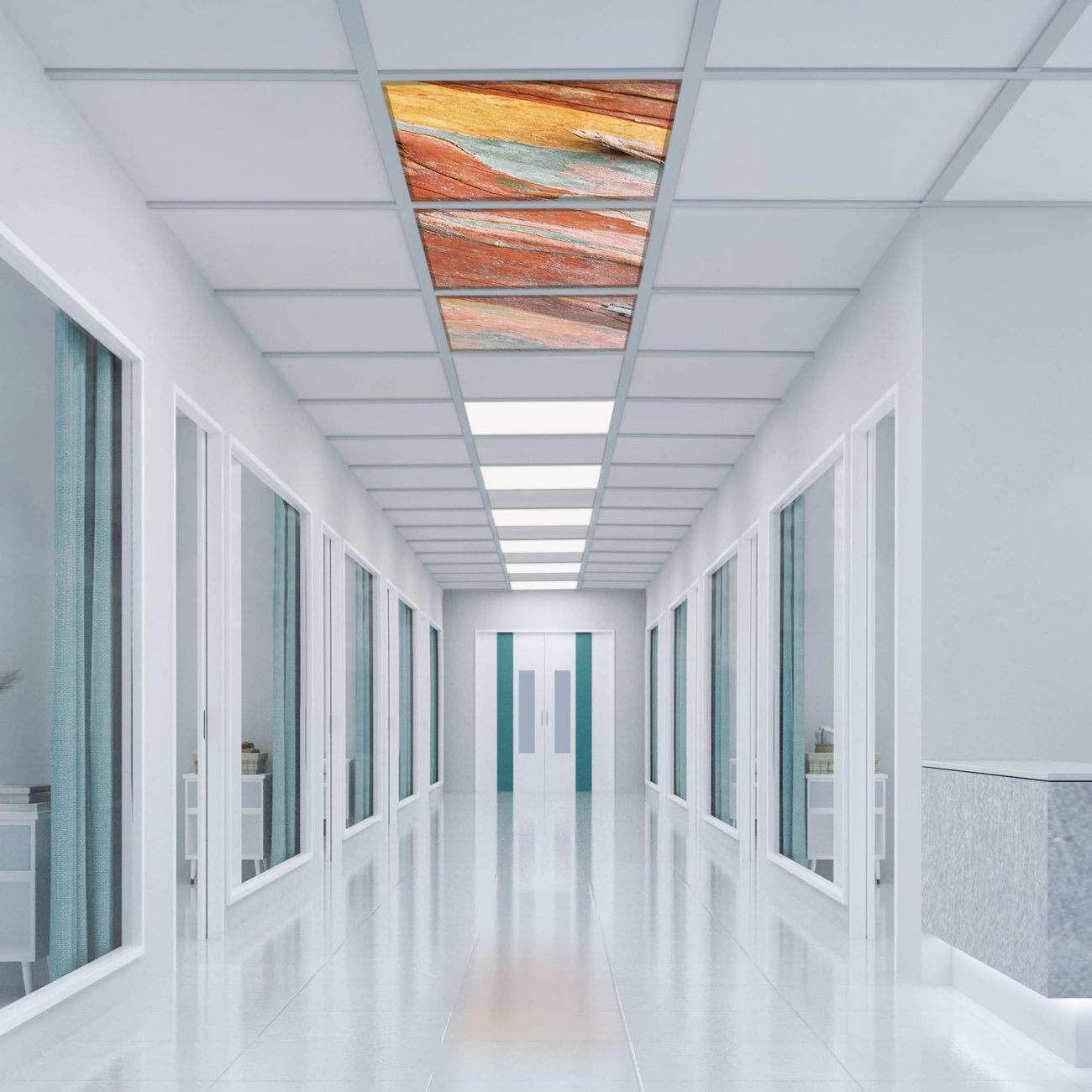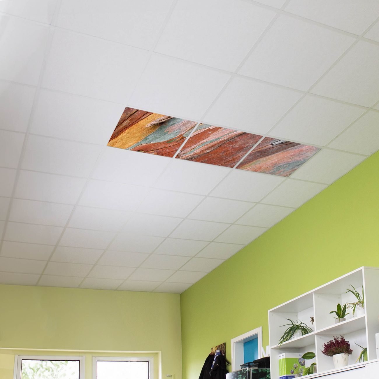 Entdecken Sie unsere vielseitigen Lichtdecken, hier in der Größe 186 x 62cm mit dem Motiv Motiv Coloured Wood - Ihre Beleuchtungslösung für jede Umgebung Beleuchten Sie Ihren Raum nicht nur, sondern schaffen Sie Atmosphäre! Die banjado Lichtdecke verwandelt jeden Ort, ob zu Hause, in Praxen, Büros oder Studios in eine Wohlfühloase. Unsere einzelnen Elemente haben eine genormte Einheitsgröße von 62 x 62cm und können somit in jede gängige Rasterdecken verbaut werden. So finden Sie Ihre passende Ausführung: Gern helfen wir Ihnen, die passende Ausführung zu wählen. Hierfür muss die aktuelle Gegebenheit Ihrer Decke oder Wand beachtet werden. Haben Sie bereits eine Rasterdecke (auch Odenwalddecke genannt)? Hier bestellen Sie lediglich das Motiv + Beleuchtungspanel, denn beides wird in die bereits vorhandene Decke eingelegt. Haben Sie eine glatte Decke mit Lichtauslass oder möchten die Lichtdecke an der Wand befestigen? Hier bestellen Sie bitte Motiv + Beleuchtungspanel + Deckenbefestigung, eine Aufbauanleitung liegt immer bei. Die Lichtdecke kann sowohl an der Decke als auch an der Wand montiert werden, perfekt für kreative Lichtakzente oder alternative Beleuchtungslösungen. Haben Sie bereits eine Lichtdecke und möchten nur das Motiv wechseln? Hier bestellen Sie bitte nur Motiv, der Wechsel ist denkbar einfach. Der Aufbau Ihrer banjado Lichtdecke gestaltet sich unkompliziert, dank einer verständlichen Anleitung, die Ihnen Schritt für Schritt durch den Montageprozess hilft. Für die endgültige Installation und den sicheren Anschluss empfehlen wir die Hinzuziehung eines Fachmanns, um die optimale Funktion und Sicherheit Ihrer Beleuchtung zu gewährleisten. Falls Sie einen Fachmann für die Installation benötigen, geben Sie uns gern Bescheid, wir vermitteln Ihnen gern einen geeigneten Ansprechpartner aus Ihrer Nähe. Steuerung: Steigern Sie Ihr Beleuchtungserlebnis mit der nahtlosen Integration in Ihr Smart Home. Durch die Kompatibilität mit der SmartLife App, Alexa und Google Assistant wird Ihr Smartphone zur zentralen Steuerungseinheit. Ihr Handy fungiert hierbei sozusagen als Fernbedienung. Legen Sie individuelle Lichtszenen in der App fest, die bei Aktivierung über den Wand-Ein-/Ausschalter immer wieder abgerufen werden können ohne Handy. Mit der Szenenfunktion in der Smart App können Sie die Beleuchtung personalisieren und steuern, sodass sie auf Ihre individuellen Bedürfnisse, Tagesrhythmus und Stimmung zugeschnitten ist. Beispielsweise können Sie sich in der Morgendämmerung durch ein sanftes Licht wecken lassen oder das Licht der Praxis werktags um 7 Uhr automatisch einschalten lassen. Dieses kann dann natürlich auch zu einer bestimmten Zeit automatisch ausgeschaltet werden. Motivwahl: Diese einzigartige Lichtdecke zeichnet sich durch ihre Fähigkeit aus, die Lichtfarbe je nach gewähltem Motiv anzupassen - ein Baum wirft ein sanftes grünes Licht, während eine Wolkendecke Ihren Raum in ein beruhigendes blaues Leuchten hüllt. Berücksichtigen Sie dies bitte bei Ihrer Motivauswahl. Sie können das Motiv jederzeit ohne großen Aufwand austauschen, ob nach Jahreszeit oder anderem Anlass, unsere Auswahl lässt kaum Wünsche offen. Wir fertigen Ihnen gern eine personalisierte Lichtdecke mit einem eigenen Motiv oder Logo oder Foto, schreiben Sie uns jederzeit an. Technische Daten: Das Motiv ist auf einer 4mm starken Acrylglas Scheibe aufgebracht, das Gesamtgewicht Ihrer Ausführung beträgt 6,8kg. Die Farbtemperatur lässt sich frei einstellen von 3000 bis 6000 Kelvin, damit können Sie stufenlos zwischen warmweiß, neutralweiß und kaltweiß wählen. Die Gesamtleistung bei Ihrer gewählten Ausführung beträgt 120W. Der Lichtstrom beträgt 3600 Lumen, die Nennspannung 230 V. Die Lichtdecke ist mit Schutzart IP20 für den Innenbereich konzipiert und sollte nicht im Nassbereich verwendet werden.