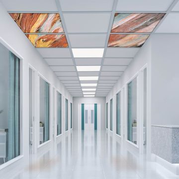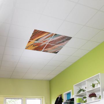Entdecken Sie unsere vielseitigen Lichtdecken, hier in der Größe 124 x 124cm mit dem Motiv Motiv Coloured Wood - Ihre Beleuchtungslösung für jede Umgebung Beleuchten Sie Ihren Raum nicht nur, sondern schaffen Sie Atmosphäre! Die banjado Lichtdecke verwandelt jeden Ort, ob zu Hause, in Praxen, Büros oder Studios in eine Wohlfühloase. Unsere einzelnen Elemente haben eine genormte Einheitsgröße von 62 x 62cm und können somit in jede gängige Rasterdecken verbaut werden. So finden Sie Ihre passende Ausführung: Gern helfen wir Ihnen, die passende Ausführung zu wählen. Hierfür muss die aktuelle Gegebenheit Ihrer Decke oder Wand beachtet werden. Haben Sie bereits eine Rasterdecke (auch Odenwalddecke genannt)? Hier bestellen Sie lediglich das Motiv + Beleuchtungspanel, denn beides wird in die bereits vorhandene Decke eingelegt. Haben Sie eine glatte Decke mit Lichtauslass oder möchten die Lichtdecke an der Wand befestigen? Hier bestellen Sie bitte Motiv + Beleuchtungspanel + Deckenbefestigung, eine Aufbauanleitung liegt immer bei. Die Lichtdecke kann sowohl an der Decke als auch an der Wand montiert werden, perfekt für kreative Lichtakzente oder alternative Beleuchtungslösungen. Haben Sie bereits eine Lichtdecke und möchten nur das Motiv wechseln? Hier bestellen Sie bitte nur Motiv, der Wechsel ist denkbar einfach. Der Aufbau Ihrer banjado Lichtdecke gestaltet sich unkompliziert, dank einer verständlichen Anleitung, die Ihnen Schritt für Schritt durch den Montageprozess hilft. Für die endgültige Installation und den sicheren Anschluss empfehlen wir die Hinzuziehung eines Fachmanns, um die optimale Funktion und Sicherheit Ihrer Beleuchtung zu gewährleisten. Falls Sie einen Fachmann für die Installation benötigen, geben Sie uns gern Bescheid, wir vermitteln Ihnen gern einen geeigneten Ansprechpartner aus Ihrer Nähe. Steuerung: Steigern Sie Ihr Beleuchtungserlebnis mit der nahtlosen Integration in Ihr Smart Home. Durch die Kompatibilität mit der SmartLife App, Alexa und Google Assistant wird Ihr Smartphone zur zentralen Steuerungseinheit. Ihr Handy fungiert hierbei sozusagen als Fernbedienung. Legen Sie individuelle Lichtszenen in der App fest, die bei Aktivierung über den Wand-Ein-/Ausschalter immer wieder abgerufen werden können ohne Handy. Mit der Szenenfunktion in der Smart App können Sie die Beleuchtung personalisieren und steuern, sodass sie auf Ihre individuellen Bedürfnisse, Tagesrhythmus und Stimmung zugeschnitten ist. Beispielsweise können Sie sich in der Morgendämmerung durch ein sanftes Licht wecken lassen oder das Licht der Praxis werktags um 7 Uhr automatisch einschalten lassen. Dieses kann dann natürlich auch zu einer bestimmten Zeit automatisch ausgeschaltet werden. Motivwahl: Diese einzigartige Lichtdecke zeichnet sich durch ihre Fähigkeit aus, die Lichtfarbe je nach gewähltem Motiv anzupassen - ein Baum wirft ein sanftes grünes Licht, während eine Wolkendecke Ihren Raum in ein beruhigendes blaues Leuchten hüllt. Berücksichtigen Sie dies bitte bei Ihrer Motivauswahl. Sie können das Motiv jederzeit ohne großen Aufwand austauschen, ob nach Jahreszeit oder anderem Anlass, unsere Auswahl lässt kaum Wünsche offen. Wir fertigen Ihnen gern eine personalisierte Lichtdecke mit einem eigenen Motiv oder Logo oder Foto, schreiben Sie uns jederzeit an. Technische Daten: Das Motiv ist auf einer 4mm starken Acrylglas Scheibe aufgebracht, das Gesamtgewicht Ihrer Ausführung beträgt 9,0kg. Die Farbtemperatur lässt sich frei einstellen von 3000 bis 6000 Kelvin, damit können Sie stufenlos zwischen warmweiß, neutralweiß und kaltweiß wählen. Die Gesamtleistung bei Ihrer gewählten Ausführung beträgt 160W. Der Lichtstrom beträgt 3600 Lumen, die Nennspannung 230 V. Die Lichtdecke ist mit Schutzart IP20 für den Innenbereich konzipiert und sollte nicht im Nassbereich verwendet werden.