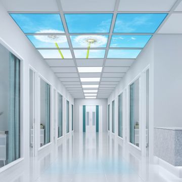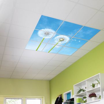 Entdecken Sie unsere vielseitigen Lichtdecken, hier in der Größe 186 x 186cm mit dem Motiv Motiv Dandelion - Ihre Beleuchtungslösung für jede Umgebung Beleuchten Sie Ihren Raum nicht nur, sondern schaffen Sie Atmosphäre! Die banjado Lichtdecke verwandelt jeden Ort, ob zu Hause, in Praxen, Büros oder Studios in eine Wohlfühloase. Unsere einzelnen Elemente haben eine genormte Einheitsgröße von 62 x 62cm und können somit in jede gängige Rasterdecken verbaut werden. So finden Sie Ihre passende Ausführung: Gern helfen wir Ihnen, die passende Ausführung zu wählen. Hierfür muss die aktuelle Gegebenheit Ihrer Decke oder Wand beachtet werden. Haben Sie bereits eine Rasterdecke (auch Odenwalddecke genannt)? Hier bestellen Sie lediglich das Motiv + Beleuchtungspanel, denn beides wird in die bereits vorhandene Decke eingelegt. Haben Sie eine glatte Decke mit Lichtauslass oder möchten die Lichtdecke an der Wand befestigen? Hier bestellen Sie bitte Motiv + Beleuchtungspanel + Deckenbefestigung, eine Aufbauanleitung liegt immer bei. Die Lichtdecke kann sowohl an der Decke als auch an der Wand montiert werden, perfekt für kreative Lichtakzente oder alternative Beleuchtungslösungen. Haben Sie bereits eine Lichtdecke und möchten nur das Motiv wechseln? Hier bestellen Sie bitte nur Motiv, der Wechsel ist denkbar einfach. Der Aufbau Ihrer banjado Lichtdecke gestaltet sich unkompliziert, dank einer verständlichen Anleitung, die Ihnen Schritt für Schritt durch den Montageprozess hilft. Für die endgültige Installation und den sicheren Anschluss empfehlen wir die Hinzuziehung eines Fachmanns, um die optimale Funktion und Sicherheit Ihrer Beleuchtung zu gewährleisten. Falls Sie einen Fachmann für die Installation benötigen, geben Sie uns gern Bescheid, wir vermitteln Ihnen gern einen geeigneten Ansprechpartner aus Ihrer Nähe. Steuerung: Steigern Sie Ihr Beleuchtungserlebnis mit der nahtlosen Integration in Ihr Smart Home. Durch die Kompatibilität mit der SmartLife App, Alexa und Google Assistant wird Ihr Smartphone zur zentralen Steuerungseinheit. Ihr Handy fungiert hierbei sozusagen als Fernbedienung. Legen Sie individuelle Lichtszenen in der App fest, die bei Aktivierung über den Wand-Ein-/Ausschalter immer wieder abgerufen werden können ohne Handy. Mit der Szenenfunktion in der Smart App können Sie die Beleuchtung personalisieren und steuern, sodass sie auf Ihre individuellen Bedürfnisse, Tagesrhythmus und Stimmung zugeschnitten ist. Beispielsweise können Sie sich in der Morgendämmerung durch ein sanftes Licht wecken lassen oder das Licht der Praxis werktags um 7 Uhr automatisch einschalten lassen. Dieses kann dann natürlich auch zu einer bestimmten Zeit automatisch ausgeschaltet werden. Motivwahl: Diese einzigartige Lichtdecke zeichnet sich durch ihre Fähigkeit aus, die Lichtfarbe je nach gewähltem Motiv anzupassen - ein Baum wirft ein sanftes grünes Licht, während eine Wolkendecke Ihren Raum in ein beruhigendes blaues Leuchten hüllt. Berücksichtigen Sie dies bitte bei Ihrer Motivauswahl. Sie können das Motiv jederzeit ohne großen Aufwand austauschen, ob nach Jahreszeit oder anderem Anlass, unsere Auswahl lässt kaum Wünsche offen. Wir fertigen Ihnen gern eine personalisierte Lichtdecke mit einem eigenen Motiv oder Logo oder Foto, schreiben Sie uns jederzeit an. Technische Daten: Das Motiv ist auf einer 4mm starken Acrylglas Scheibe aufgebracht, das Gesamtgewicht Ihrer Ausführung beträgt 20,4kg. Die Farbtemperatur lässt sich frei einstellen von 3000 bis 6000 Kelvin, damit können Sie stufenlos zwischen warmweiß, neutralweiß und kaltweiß wählen. Die Gesamtleistung bei Ihrer gewählten Ausführung beträgt 360W. Der Lichtstrom beträgt 3600 Lumen, die Nennspannung 230 V. Die Lichtdecke ist mit Schutzart IP20 für den Innenbereich konzipiert und sollte nicht im Nassbereich verwendet werden.
