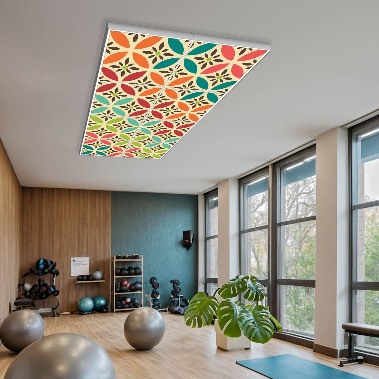 Entdecken Sie unsere vielseitigen Lichtdecken, hier in der Größe 124 x 248cm mit dem Motiv Motiv Diamant Muster - Ihre Beleuchtungslösung für jede Umgebung Beleuchten Sie Ihren Raum nicht nur, sondern schaffen Sie Atmosphäre! Die banjado Lichtdecke verwandelt jeden Ort, ob zu Hause, in Praxen, Büros oder Studios in eine Wohlfühloase. Unsere einzelnen Elemente haben eine genormte Einheitsgröße von 62 x 62cm und können somit in jede gängige Rasterdecken verbaut werden. So finden Sie Ihre passende Ausführung: Gern helfen wir Ihnen, die passende Ausführung zu wählen. Hierfür muss die aktuelle Gegebenheit Ihrer Decke oder Wand beachtet werden. Haben Sie bereits eine Rasterdecke (auch Odenwalddecke genannt)? Hier bestellen Sie lediglich das Motiv + Beleuchtungspanel, denn beides wird in die bereits vorhandene Decke eingelegt. Haben Sie eine glatte Decke mit Lichtauslass oder möchten die Lichtdecke an der Wand befestigen? Hier bestellen Sie bitte Motiv + Beleuchtungspanel + Deckenbefestigung, eine Aufbauanleitung liegt immer bei. Die Lichtdecke kann sowohl an der Decke als auch an der Wand montiert werden, perfekt für kreative Lichtakzente oder alternative Beleuchtungslösungen. Haben Sie bereits eine Lichtdecke und möchten nur das Motiv wechseln? Hier bestellen Sie bitte nur Motiv, der Wechsel ist denkbar einfach. Der Aufbau Ihrer banjado Lichtdecke gestaltet sich unkompliziert, dank einer verständlichen Anleitung, die Ihnen Schritt für Schritt durch den Montageprozess hilft. Für die endgültige Installation und den sicheren Anschluss empfehlen wir die Hinzuziehung eines Fachmanns, um die optimale Funktion und Sicherheit Ihrer Beleuchtung zu gewährleisten. Falls Sie einen Fachmann für die Installation benötigen, geben Sie uns gern Bescheid, wir vermitteln Ihnen gern einen geeigneten Ansprechpartner aus Ihrer Nähe. Steuerung: Steigern Sie Ihr Beleuchtungserlebnis mit der nahtlosen Integration in Ihr Smart Home. Durch die Kompatibilität mit der SmartLife App, Alexa und Google Assistant wird Ihr Smartphone zur zentralen Steuerungseinheit. Ihr Handy fungiert hierbei sozusagen als Fernbedienung. Legen Sie individuelle Lichtszenen in der App fest, die bei Aktivierung über den Wand-Ein-/Ausschalter immer wieder abgerufen werden können ohne Handy. Mit der Szenenfunktion in der Smart App können Sie die Beleuchtung personalisieren und steuern, sodass sie auf Ihre individuellen Bedürfnisse, Tagesrhythmus und Stimmung zugeschnitten ist. Beispielsweise können Sie sich in der Morgendämmerung durch ein sanftes Licht wecken lassen oder das Licht der Praxis werktags um 7 Uhr automatisch einschalten lassen. Dieses kann dann natürlich auch zu einer bestimmten Zeit automatisch ausgeschaltet werden. Motivwahl: Diese einzigartige Lichtdecke zeichnet sich durch ihre Fähigkeit aus, die Lichtfarbe je nach gewähltem Motiv anzupassen - ein Baum wirft ein sanftes grünes Licht, während eine Wolkendecke Ihren Raum in ein beruhigendes blaues Leuchten hüllt. Berücksichtigen Sie dies bitte bei Ihrer Motivauswahl. Sie können das Motiv jederzeit ohne großen Aufwand austauschen, ob nach Jahreszeit oder anderem Anlass, unsere Auswahl lässt kaum Wünsche offen. Wir fertigen Ihnen gern eine personalisierte Lichtdecke mit einem eigenen Motiv oder Logo oder Foto, schreiben Sie uns jederzeit an. Technische Daten: Das Motiv ist auf einer 4mm starken Acrylglas Scheibe aufgebracht, das Gesamtgewicht Ihrer Ausführung beträgt 39,4kg. Die Farbtemperatur lässt sich frei einstellen von 3000 bis 6000 Kelvin, damit können Sie stufenlos zwischen warmweiß, neutralweiß und kaltweiß wählen. Die Gesamtleistung bei Ihrer gewählten Ausführung beträgt 320W. Der Lichtstrom beträgt 3600 Lumen, die Nennspannung 230 V. Die Lichtdecke ist mit Schutzart IP20 für den Innenbereich konzipiert und sollte nicht im Nassbereich verwendet werden.