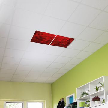 Entdecken Sie unsere vielseitigen Lichtdecken, hier in der Größe 124 x 62cm mit dem Motiv Motiv Dreiecke Rot - Ihre Beleuchtungslösung für jede Umgebung Beleuchten Sie Ihren Raum nicht nur, sondern schaffen Sie Atmosphäre! Die banjado Lichtdecke verwandelt jeden Ort, ob zu Hause, in Praxen, Büros oder Studios in eine Wohlfühloase. Unsere einzelnen Elemente haben eine genormte Einheitsgröße von 62 x 62cm und können somit in jede gängige Rasterdecken verbaut werden. So finden Sie Ihre passende Ausführung: Gern helfen wir Ihnen, die passende Ausführung zu wählen. Hierfür muss die aktuelle Gegebenheit Ihrer Decke oder Wand beachtet werden. Haben Sie bereits eine Rasterdecke (auch Odenwalddecke genannt)? Hier bestellen Sie lediglich das Motiv + Beleuchtungspanel, denn beides wird in die bereits vorhandene Decke eingelegt. Haben Sie eine glatte Decke mit Lichtauslass oder möchten die Lichtdecke an der Wand befestigen? Hier bestellen Sie bitte Motiv + Beleuchtungspanel + Deckenbefestigung, eine Aufbauanleitung liegt immer bei. Die Lichtdecke kann sowohl an der Decke als auch an der Wand montiert werden, perfekt für kreative Lichtakzente oder alternative Beleuchtungslösungen. Haben Sie bereits eine Lichtdecke und möchten nur das Motiv wechseln? Hier bestellen Sie bitte nur Motiv, der Wechsel ist denkbar einfach. Der Aufbau Ihrer banjado Lichtdecke gestaltet sich unkompliziert, dank einer verständlichen Anleitung, die Ihnen Schritt für Schritt durch den Montageprozess hilft. Für die endgültige Installation und den sicheren Anschluss empfehlen wir die Hinzuziehung eines Fachmanns, um die optimale Funktion und Sicherheit Ihrer Beleuchtung zu gewährleisten. Falls Sie einen Fachmann für die Installation benötigen, geben Sie uns gern Bescheid, wir vermitteln Ihnen gern einen geeigneten Ansprechpartner aus Ihrer Nähe. Steuerung: Steigern Sie Ihr Beleuchtungserlebnis mit der nahtlosen Integration in Ihr Smart Home. Durch die Kompatibilität mit der SmartLife App, Alexa und Google Assistant wird Ihr Smartphone zur zentralen Steuerungseinheit. Ihr Handy fungiert hierbei sozusagen als Fernbedienung. Legen Sie individuelle Lichtszenen in der App fest, die bei Aktivierung über den Wand-Ein-/Ausschalter immer wieder abgerufen werden können ohne Handy. Mit der Szenenfunktion in der Smart App können Sie die Beleuchtung personalisieren und steuern, sodass sie auf Ihre individuellen Bedürfnisse, Tagesrhythmus und Stimmung zugeschnitten ist. Beispielsweise können Sie sich in der Morgendämmerung durch ein sanftes Licht wecken lassen oder das Licht der Praxis werktags um 7 Uhr automatisch einschalten lassen. Dieses kann dann natürlich auch zu einer bestimmten Zeit automatisch ausgeschaltet werden. Motivwahl: Diese einzigartige Lichtdecke zeichnet sich durch ihre Fähigkeit aus, die Lichtfarbe je nach gewähltem Motiv anzupassen - ein Baum wirft ein sanftes grünes Licht, während eine Wolkendecke Ihren Raum in ein beruhigendes blaues Leuchten hüllt. Berücksichtigen Sie dies bitte bei Ihrer Motivauswahl. Sie können das Motiv jederzeit ohne großen Aufwand austauschen, ob nach Jahreszeit oder anderem Anlass, unsere Auswahl lässt kaum Wünsche offen. Wir fertigen Ihnen gern eine personalisierte Lichtdecke mit einem eigenen Motiv oder Logo oder Foto, schreiben Sie uns jederzeit an. Technische Daten: Das Motiv ist auf einer 4mm starken Acrylglas Scheibe aufgebracht, das Gesamtgewicht Ihrer Ausführung beträgt 4,5kg. Die Farbtemperatur lässt sich frei einstellen von 3000 bis 6000 Kelvin, damit können Sie stufenlos zwischen warmweiß, neutralweiß und kaltweiß wählen. Die Gesamtleistung bei Ihrer gewählten Ausführung beträgt 80W. Der Lichtstrom beträgt 3600 Lumen, die Nennspannung 230 V. Die Lichtdecke ist mit Schutzart IP20 für den Innenbereich konzipiert und sollte nicht im Nassbereich verwendet werden.