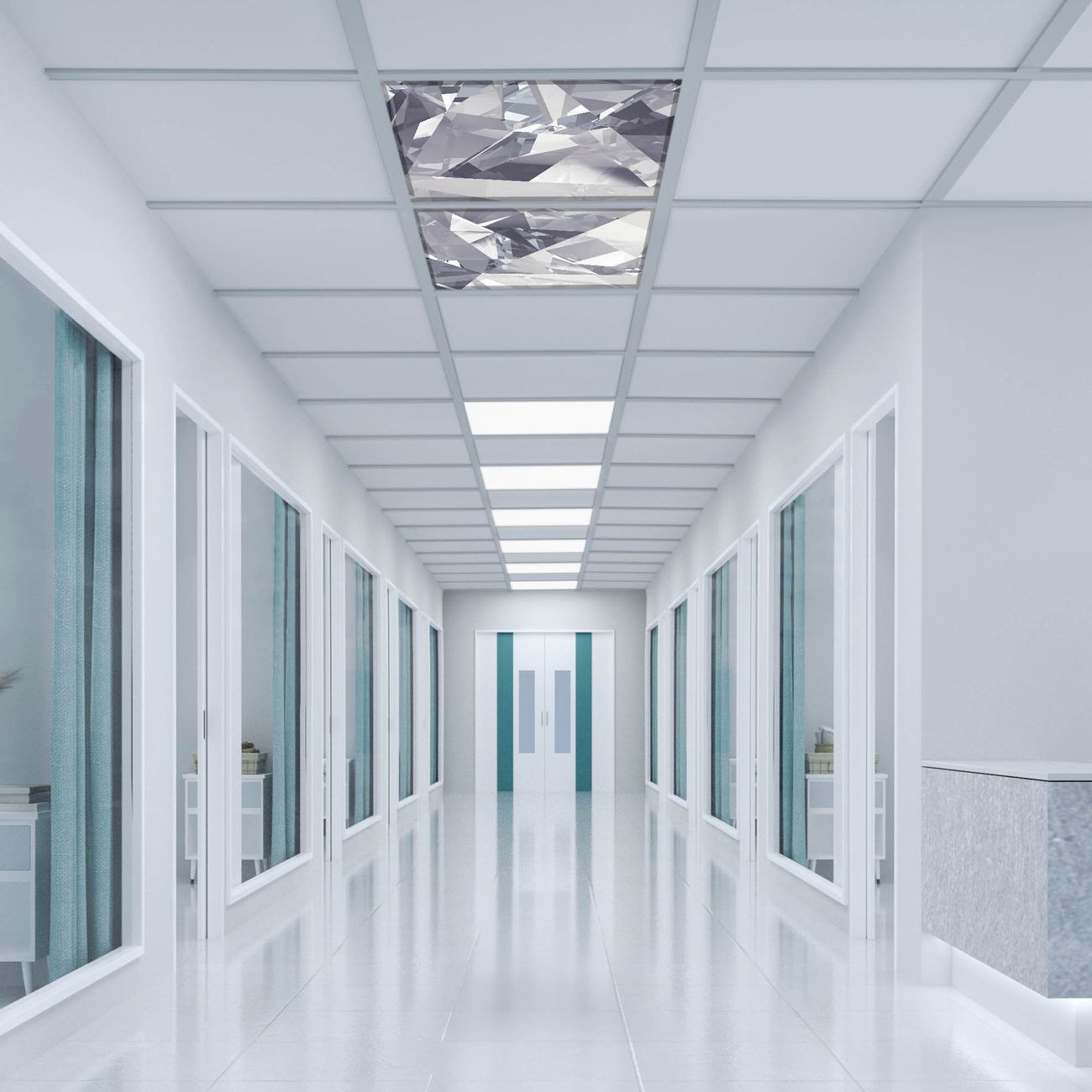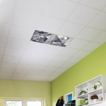 Entdecken Sie unsere vielseitigen Lichtdecken, hier in der Größe 124 x 62cm mit dem Motiv Motiv Facetten Monochrome - Ihre Beleuchtungslösung für jede Umgebung Beleuchten Sie Ihren Raum nicht nur, sondern schaffen Sie Atmosphäre! Die banjado Lichtdecke verwandelt jeden Ort, ob zu Hause, in Praxen, Büros oder Studios in eine Wohlfühloase. Unsere einzelnen Elemente haben eine genormte Einheitsgröße von 62 x 62cm und können somit in jede gängige Rasterdecken verbaut werden. So finden Sie Ihre passende Ausführung: Gern helfen wir Ihnen, die passende Ausführung zu wählen. Hierfür muss die aktuelle Gegebenheit Ihrer Decke oder Wand beachtet werden. Haben Sie bereits eine Rasterdecke (auch Odenwalddecke genannt)? Hier bestellen Sie lediglich das Motiv + Beleuchtungspanel, denn beides wird in die bereits vorhandene Decke eingelegt. Haben Sie eine glatte Decke mit Lichtauslass oder möchten die Lichtdecke an der Wand befestigen? Hier bestellen Sie bitte Motiv + Beleuchtungspanel + Deckenbefestigung, eine Aufbauanleitung liegt immer bei. Die Lichtdecke kann sowohl an der Decke als auch an der Wand montiert werden, perfekt für kreative Lichtakzente oder alternative Beleuchtungslösungen. Haben Sie bereits eine Lichtdecke und möchten nur das Motiv wechseln? Hier bestellen Sie bitte nur Motiv, der Wechsel ist denkbar einfach. Der Aufbau Ihrer banjado Lichtdecke gestaltet sich unkompliziert, dank einer verständlichen Anleitung, die Ihnen Schritt für Schritt durch den Montageprozess hilft. Für die endgültige Installation und den sicheren Anschluss empfehlen wir die Hinzuziehung eines Fachmanns, um die optimale Funktion und Sicherheit Ihrer Beleuchtung zu gewährleisten. Falls Sie einen Fachmann für die Installation benötigen, geben Sie uns gern Bescheid, wir vermitteln Ihnen gern einen geeigneten Ansprechpartner aus Ihrer Nähe. Steuerung: Steigern Sie Ihr Beleuchtungserlebnis mit der nahtlosen Integration in Ihr Smart Home. Durch die Kompatibilität mit der SmartLife App, Alexa und Google Assistant wird Ihr Smartphone zur zentralen Steuerungseinheit. Ihr Handy fungiert hierbei sozusagen als Fernbedienung. Legen Sie individuelle Lichtszenen in der App fest, die bei Aktivierung über den Wand-Ein-/Ausschalter immer wieder abgerufen werden können ohne Handy. Mit der Szenenfunktion in der Smart App können Sie die Beleuchtung personalisieren und steuern, sodass sie auf Ihre individuellen Bedürfnisse, Tagesrhythmus und Stimmung zugeschnitten ist. Beispielsweise können Sie sich in der Morgendämmerung durch ein sanftes Licht wecken lassen oder das Licht der Praxis werktags um 7 Uhr automatisch einschalten lassen. Dieses kann dann natürlich auch zu einer bestimmten Zeit automatisch ausgeschaltet werden. Motivwahl: Diese einzigartige Lichtdecke zeichnet sich durch ihre Fähigkeit aus, die Lichtfarbe je nach gewähltem Motiv anzupassen - ein Baum wirft ein sanftes grünes Licht, während eine Wolkendecke Ihren Raum in ein beruhigendes blaues Leuchten hüllt. Berücksichtigen Sie dies bitte bei Ihrer Motivauswahl. Sie können das Motiv jederzeit ohne großen Aufwand austauschen, ob nach Jahreszeit oder anderem Anlass, unsere Auswahl lässt kaum Wünsche offen. Wir fertigen Ihnen gern eine personalisierte Lichtdecke mit einem eigenen Motiv oder Logo oder Foto, schreiben Sie uns jederzeit an. Technische Daten: Das Motiv ist auf einer 4mm starken Acrylglas Scheibe aufgebracht, das Gesamtgewicht Ihrer Ausführung beträgt 8,9kg. Die Farbtemperatur lässt sich frei einstellen von 3000 bis 6000 Kelvin, damit können Sie stufenlos zwischen warmweiß, neutralweiß und kaltweiß wählen. Die Gesamtleistung bei Ihrer gewählten Ausführung beträgt 80W. Der Lichtstrom beträgt 3600 Lumen, die Nennspannung 230 V. Die Lichtdecke ist mit Schutzart IP20 für den Innenbereich konzipiert und sollte nicht im Nassbereich verwendet werden.