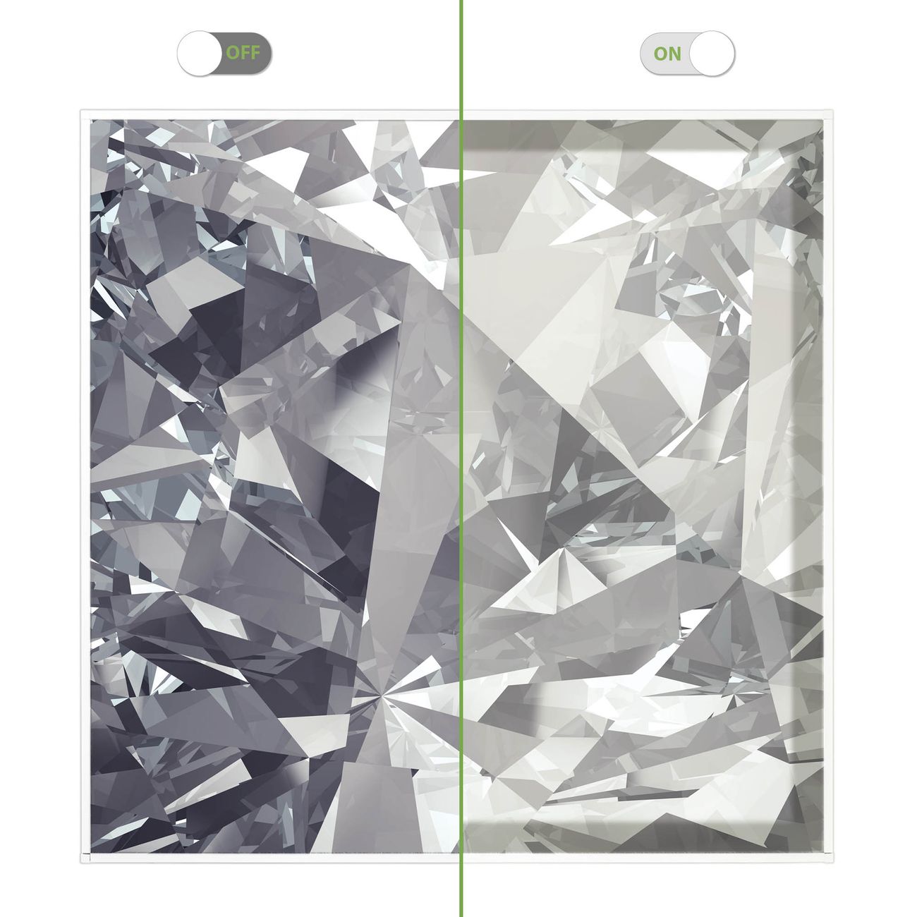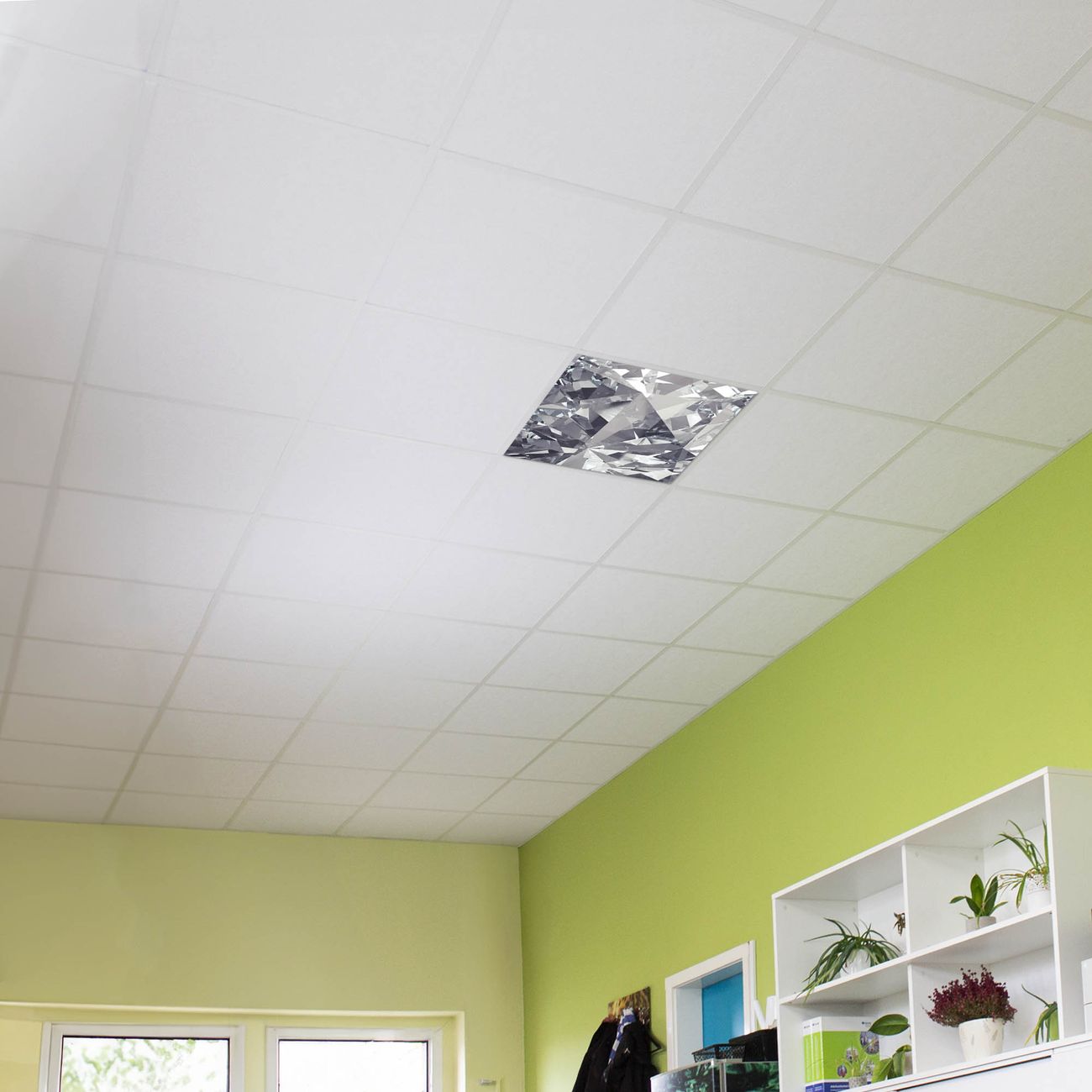 Entdecken Sie unsere vielseitigen Lichtdecken, hier in der Größe 62 x 62cm mit dem Motiv Motiv Facetten Monochrome - Ihre Beleuchtungslösung für jede Umgebung Beleuchten Sie Ihren Raum nicht nur, sondern schaffen Sie Atmosphäre! Die banjado Lichtdecke verwandelt jeden Ort, ob zu Hause, in Praxen, Büros oder Studios in eine Wohlfühloase. Unsere einzelnen Elemente haben eine genormte Einheitsgröße von 62 x 62cm und können somit in jede gängige Rasterdecken verbaut werden. So finden Sie Ihre passende Ausführung: Gern helfen wir Ihnen, die passende Ausführung zu wählen. Hierfür muss die aktuelle Gegebenheit Ihrer Decke oder Wand beachtet werden. Haben Sie bereits eine Rasterdecke (auch Odenwalddecke genannt)? Hier bestellen Sie lediglich das Motiv + Beleuchtungspanel, denn beides wird in die bereits vorhandene Decke eingelegt. Haben Sie eine glatte Decke mit Lichtauslass oder möchten die Lichtdecke an der Wand befestigen? Hier bestellen Sie bitte Motiv + Beleuchtungspanel + Deckenbefestigung, eine Aufbauanleitung liegt immer bei. Die Lichtdecke kann sowohl an der Decke als auch an der Wand montiert werden, perfekt für kreative Lichtakzente oder alternative Beleuchtungslösungen. Haben Sie bereits eine Lichtdecke und möchten nur das Motiv wechseln? Hier bestellen Sie bitte nur Motiv, der Wechsel ist denkbar einfach. Der Aufbau Ihrer banjado Lichtdecke gestaltet sich unkompliziert, dank einer verständlichen Anleitung, die Ihnen Schritt für Schritt durch den Montageprozess hilft. Für die endgültige Installation und den sicheren Anschluss empfehlen wir die Hinzuziehung eines Fachmanns, um die optimale Funktion und Sicherheit Ihrer Beleuchtung zu gewährleisten. Falls Sie einen Fachmann für die Installation benötigen, geben Sie uns gern Bescheid, wir vermitteln Ihnen gern einen geeigneten Ansprechpartner aus Ihrer Nähe. Steuerung: Steigern Sie Ihr Beleuchtungserlebnis mit der nahtlosen Integration in Ihr Smart Home. Durch die Kompatibilität mit der SmartLife App, Alexa und Google Assistant wird Ihr Smartphone zur zentralen Steuerungseinheit. Ihr Handy fungiert hierbei sozusagen als Fernbedienung. Legen Sie individuelle Lichtszenen in der App fest, die bei Aktivierung über den Wand-Ein-/Ausschalter immer wieder abgerufen werden können ohne Handy. Mit der Szenenfunktion in der Smart App können Sie die Beleuchtung personalisieren und steuern, sodass sie auf Ihre individuellen Bedürfnisse, Tagesrhythmus und Stimmung zugeschnitten ist. Beispielsweise können Sie sich in der Morgendämmerung durch ein sanftes Licht wecken lassen oder das Licht der Praxis werktags um 7 Uhr automatisch einschalten lassen. Dieses kann dann natürlich auch zu einer bestimmten Zeit automatisch ausgeschaltet werden. Motivwahl: Diese einzigartige Lichtdecke zeichnet sich durch ihre Fähigkeit aus, die Lichtfarbe je nach gewähltem Motiv anzupassen - ein Baum wirft ein sanftes grünes Licht, während eine Wolkendecke Ihren Raum in ein beruhigendes blaues Leuchten hüllt. Berücksichtigen Sie dies bitte bei Ihrer Motivauswahl. Sie können das Motiv jederzeit ohne großen Aufwand austauschen, ob nach Jahreszeit oder anderem Anlass, unsere Auswahl lässt kaum Wünsche offen. Wir fertigen Ihnen gern eine personalisierte Lichtdecke mit einem eigenen Motiv oder Logo oder Foto, schreiben Sie uns jederzeit an. Technische Daten: Das Motiv ist auf einer 4mm starken Acrylglas Scheibe aufgebracht, das Gesamtgewicht Ihrer Ausführung beträgt 4,4kg. Die Farbtemperatur lässt sich frei einstellen von 3000 bis 6000 Kelvin, damit können Sie stufenlos zwischen warmweiß, neutralweiß und kaltweiß wählen. Die Gesamtleistung bei Ihrer gewählten Ausführung beträgt 40W. Der Lichtstrom beträgt 3600 Lumen, die Nennspannung 230 V. Die Lichtdecke ist mit Schutzart IP20 für den Innenbereich konzipiert und sollte nicht im Nassbereich verwendet werden.