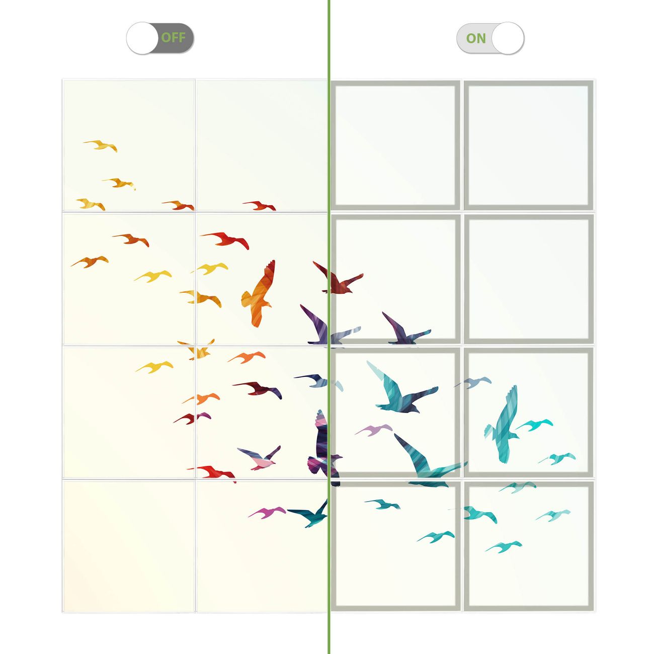 Entdecken Sie unsere vielseitigen Lichtdecken, hier in der Größe 248 x 248cm mit dem Motiv Motiv Fliegende Vögel - Ihre Beleuchtungslösung für jede Umgebung Beleuchten Sie Ihren Raum nicht nur, sondern schaffen Sie Atmosphäre! Die banjado Lichtdecke verwandelt jeden Ort, ob zu Hause, in Praxen, Büros oder Studios in eine Wohlfühloase. Unsere einzelnen Elemente haben eine genormte Einheitsgröße von 62 x 62cm und können somit in jede gängige Rasterdecken verbaut werden. So finden Sie Ihre passende Ausführung: Gern helfen wir Ihnen, die passende Ausführung zu wählen. Hierfür muss die aktuelle Gegebenheit Ihrer Decke oder Wand beachtet werden. Haben Sie bereits eine Rasterdecke (auch Odenwalddecke genannt)? Hier bestellen Sie lediglich das Motiv + Beleuchtungspanel, denn beides wird in die bereits vorhandene Decke eingelegt. Haben Sie eine glatte Decke mit Lichtauslass oder möchten die Lichtdecke an der Wand befestigen? Hier bestellen Sie bitte Motiv + Beleuchtungspanel + Deckenbefestigung, eine Aufbauanleitung liegt immer bei. Die Lichtdecke kann sowohl an der Decke als auch an der Wand montiert werden, perfekt für kreative Lichtakzente oder alternative Beleuchtungslösungen. Haben Sie bereits eine Lichtdecke und möchten nur das Motiv wechseln? Hier bestellen Sie bitte nur Motiv, der Wechsel ist denkbar einfach. Der Aufbau Ihrer banjado Lichtdecke gestaltet sich unkompliziert, dank einer verständlichen Anleitung, die Ihnen Schritt für Schritt durch den Montageprozess hilft. Für die endgültige Installation und den sicheren Anschluss empfehlen wir die Hinzuziehung eines Fachmanns, um die optimale Funktion und Sicherheit Ihrer Beleuchtung zu gewährleisten. Falls Sie einen Fachmann für die Installation benötigen, geben Sie uns gern Bescheid, wir vermitteln Ihnen gern einen geeigneten Ansprechpartner aus Ihrer Nähe. Steuerung: Steigern Sie Ihr Beleuchtungserlebnis mit der nahtlosen Integration in Ihr Smart Home. Durch die Kompatibilität mit der SmartLife App, Alexa und Google Assistant wird Ihr Smartphone zur zentralen Steuerungseinheit. Ihr Handy fungiert hierbei sozusagen als Fernbedienung. Legen Sie individuelle Lichtszenen in der App fest, die bei Aktivierung über den Wand-Ein-/Ausschalter immer wieder abgerufen werden können ohne Handy. Mit der Szenenfunktion in der Smart App können Sie die Beleuchtung personalisieren und steuern, sodass sie auf Ihre individuellen Bedürfnisse, Tagesrhythmus und Stimmung zugeschnitten ist. Beispielsweise können Sie sich in der Morgendämmerung durch ein sanftes Licht wecken lassen oder das Licht der Praxis werktags um 7 Uhr automatisch einschalten lassen. Dieses kann dann natürlich auch zu einer bestimmten Zeit automatisch ausgeschaltet werden. Motivwahl: Diese einzigartige Lichtdecke zeichnet sich durch ihre Fähigkeit aus, die Lichtfarbe je nach gewähltem Motiv anzupassen - ein Baum wirft ein sanftes grünes Licht, während eine Wolkendecke Ihren Raum in ein beruhigendes blaues Leuchten hüllt. Berücksichtigen Sie dies bitte bei Ihrer Motivauswahl. Sie können das Motiv jederzeit ohne großen Aufwand austauschen, ob nach Jahreszeit oder anderem Anlass, unsere Auswahl lässt kaum Wünsche offen. Wir fertigen Ihnen gern eine personalisierte Lichtdecke mit einem eigenen Motiv oder Logo oder Foto, schreiben Sie uns jederzeit an. Technische Daten: Das Motiv ist auf einer 4mm starken Acrylglas Scheibe aufgebracht, das Gesamtgewicht Ihrer Ausführung beträgt 36,2kg. Die Farbtemperatur lässt sich frei einstellen von 3000 bis 6000 Kelvin, damit können Sie stufenlos zwischen warmweiß, neutralweiß und kaltweiß wählen. Die Gesamtleistung bei Ihrer gewählten Ausführung beträgt 640W. Der Lichtstrom beträgt 3600 Lumen, die Nennspannung 230 V. Die Lichtdecke ist mit Schutzart IP20 für den Innenbereich konzipiert und sollte nicht im Nassbereich verwendet werden.