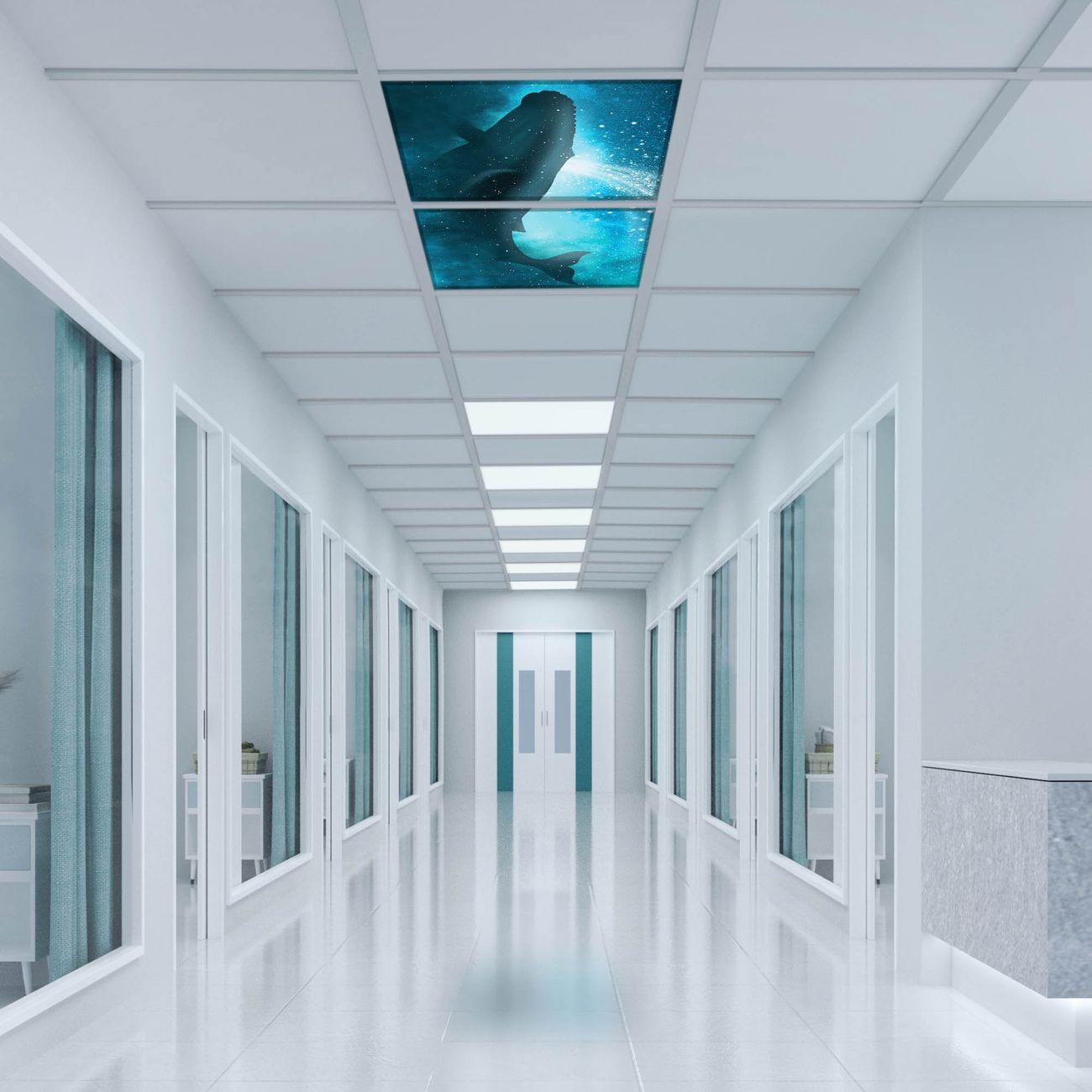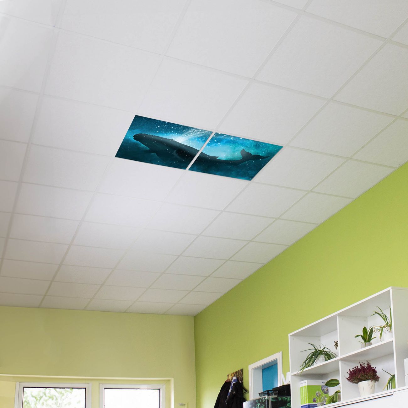Entdecken Sie unsere vielseitigen Lichtdecken, hier in der Größe 124 x 62cm mit dem Motiv Motiv fliegender Wal - Ihre Beleuchtungslösung für jede Umgebung Beleuchten Sie Ihren Raum nicht nur, sondern schaffen Sie Atmosphäre! Die banjado Lichtdecke verwandelt jeden Ort, ob zu Hause, in Praxen, Büros oder Studios in eine Wohlfühloase. Unsere einzelnen Elemente haben eine genormte Einheitsgröße von 62 x 62cm und können somit in jede gängige Rasterdecken verbaut werden. So finden Sie Ihre passende Ausführung: Gern helfen wir Ihnen, die passende Ausführung zu wählen. Hierfür muss die aktuelle Gegebenheit Ihrer Decke oder Wand beachtet werden. Haben Sie bereits eine Rasterdecke (auch Odenwalddecke genannt)? Hier bestellen Sie lediglich das Motiv + Beleuchtungspanel, denn beides wird in die bereits vorhandene Decke eingelegt. Haben Sie eine glatte Decke mit Lichtauslass oder möchten die Lichtdecke an der Wand befestigen? Hier bestellen Sie bitte Motiv + Beleuchtungspanel + Deckenbefestigung, eine Aufbauanleitung liegt immer bei. Die Lichtdecke kann sowohl an der Decke als auch an der Wand montiert werden, perfekt für kreative Lichtakzente oder alternative Beleuchtungslösungen. Haben Sie bereits eine Lichtdecke und möchten nur das Motiv wechseln? Hier bestellen Sie bitte nur Motiv, der Wechsel ist denkbar einfach. Der Aufbau Ihrer banjado Lichtdecke gestaltet sich unkompliziert, dank einer verständlichen Anleitung, die Ihnen Schritt für Schritt durch den Montageprozess hilft. Für die endgültige Installation und den sicheren Anschluss empfehlen wir die Hinzuziehung eines Fachmanns, um die optimale Funktion und Sicherheit Ihrer Beleuchtung zu gewährleisten. Falls Sie einen Fachmann für die Installation benötigen, geben Sie uns gern Bescheid, wir vermitteln Ihnen gern einen geeigneten Ansprechpartner aus Ihrer Nähe. Steuerung: Steigern Sie Ihr Beleuchtungserlebnis mit der nahtlosen Integration in Ihr Smart Home. Durch die Kompatibilität mit der SmartLife App, Alexa und Google Assistant wird Ihr Smartphone zur zentralen Steuerungseinheit. Ihr Handy fungiert hierbei sozusagen als Fernbedienung. Legen Sie individuelle Lichtszenen in der App fest, die bei Aktivierung über den Wand-Ein-/Ausschalter immer wieder abgerufen werden können ohne Handy. Mit der Szenenfunktion in der Smart App können Sie die Beleuchtung personalisieren und steuern, sodass sie auf Ihre individuellen Bedürfnisse, Tagesrhythmus und Stimmung zugeschnitten ist. Beispielsweise können Sie sich in der Morgendämmerung durch ein sanftes Licht wecken lassen oder das Licht der Praxis werktags um 7 Uhr automatisch einschalten lassen. Dieses kann dann natürlich auch zu einer bestimmten Zeit automatisch ausgeschaltet werden. Motivwahl: Diese einzigartige Lichtdecke zeichnet sich durch ihre Fähigkeit aus, die Lichtfarbe je nach gewähltem Motiv anzupassen - ein Baum wirft ein sanftes grünes Licht, während eine Wolkendecke Ihren Raum in ein beruhigendes blaues Leuchten hüllt. Berücksichtigen Sie dies bitte bei Ihrer Motivauswahl. Sie können das Motiv jederzeit ohne großen Aufwand austauschen, ob nach Jahreszeit oder anderem Anlass, unsere Auswahl lässt kaum Wünsche offen. Wir fertigen Ihnen gern eine personalisierte Lichtdecke mit einem eigenen Motiv oder Logo oder Foto, schreiben Sie uns jederzeit an. Technische Daten: Das Motiv ist auf einer 4mm starken Acrylglas Scheibe aufgebracht, das Gesamtgewicht Ihrer Ausführung beträgt 8,9kg. Die Farbtemperatur lässt sich frei einstellen von 3000 bis 6000 Kelvin, damit können Sie stufenlos zwischen warmweiß, neutralweiß und kaltweiß wählen. Die Gesamtleistung bei Ihrer gewählten Ausführung beträgt 80W. Der Lichtstrom beträgt 3600 Lumen, die Nennspannung 230 V. Die Lichtdecke ist mit Schutzart IP20 für den Innenbereich konzipiert und sollte nicht im Nassbereich verwendet werden.