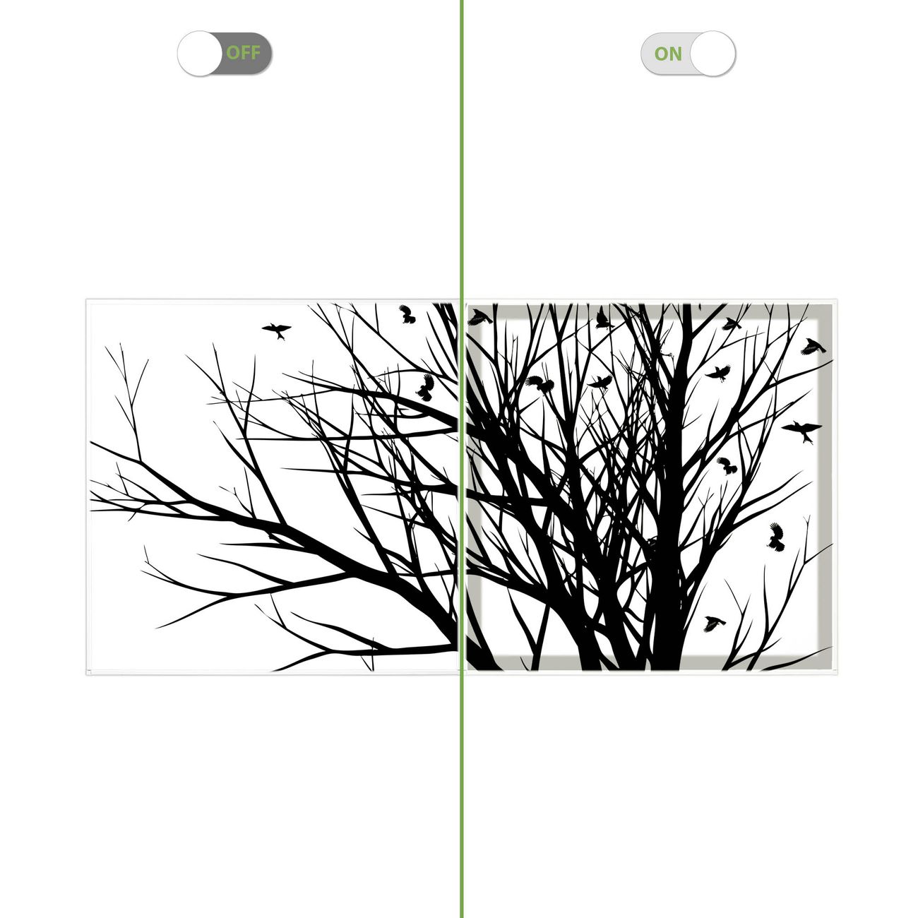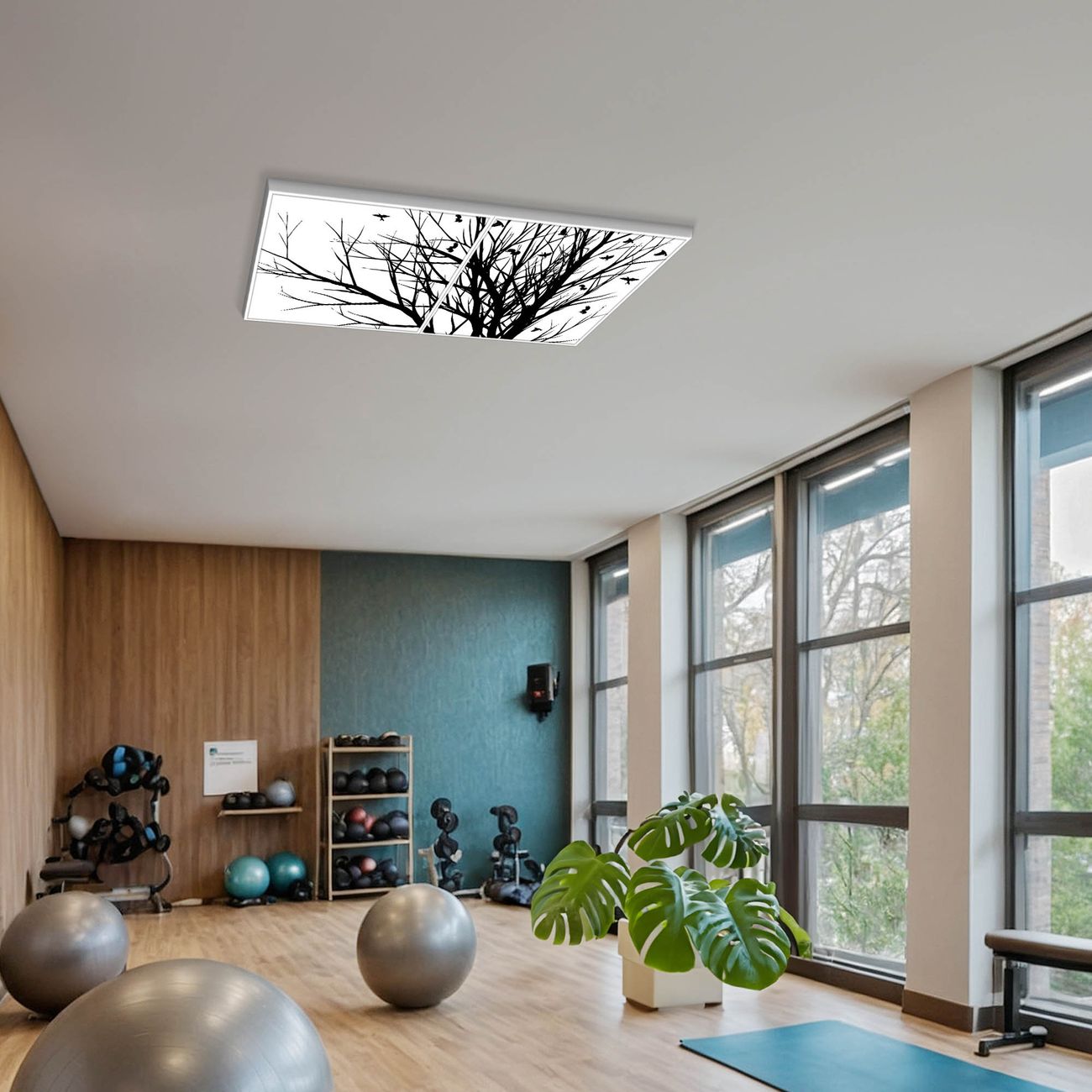 Entdecken Sie unsere vielseitigen Lichtdecken, hier in der Größe 124 x 62cm mit dem Motiv Motiv Fortfliegen - Ihre Beleuchtungslösung für jede Umgebung Beleuchten Sie Ihren Raum nicht nur, sondern schaffen Sie Atmosphäre! Die banjado Lichtdecke verwandelt jeden Ort, ob zu Hause, in Praxen, Büros oder Studios in eine Wohlfühloase. Unsere einzelnen Elemente haben eine genormte Einheitsgröße von 62 x 62cm und können somit in jede gängige Rasterdecken verbaut werden. So finden Sie Ihre passende Ausführung: Gern helfen wir Ihnen, die passende Ausführung zu wählen. Hierfür muss die aktuelle Gegebenheit Ihrer Decke oder Wand beachtet werden. Haben Sie bereits eine Rasterdecke (auch Odenwalddecke genannt)? Hier bestellen Sie lediglich das Motiv + Beleuchtungspanel, denn beides wird in die bereits vorhandene Decke eingelegt. Haben Sie eine glatte Decke mit Lichtauslass oder möchten die Lichtdecke an der Wand befestigen? Hier bestellen Sie bitte Motiv + Beleuchtungspanel + Deckenbefestigung, eine Aufbauanleitung liegt immer bei. Die Lichtdecke kann sowohl an der Decke als auch an der Wand montiert werden, perfekt für kreative Lichtakzente oder alternative Beleuchtungslösungen. Haben Sie bereits eine Lichtdecke und möchten nur das Motiv wechseln? Hier bestellen Sie bitte nur Motiv, der Wechsel ist denkbar einfach. Der Aufbau Ihrer banjado Lichtdecke gestaltet sich unkompliziert, dank einer verständlichen Anleitung, die Ihnen Schritt für Schritt durch den Montageprozess hilft. Für die endgültige Installation und den sicheren Anschluss empfehlen wir die Hinzuziehung eines Fachmanns, um die optimale Funktion und Sicherheit Ihrer Beleuchtung zu gewährleisten. Falls Sie einen Fachmann für die Installation benötigen, geben Sie uns gern Bescheid, wir vermitteln Ihnen gern einen geeigneten Ansprechpartner aus Ihrer Nähe. Steuerung: Steigern Sie Ihr Beleuchtungserlebnis mit der nahtlosen Integration in Ihr Smart Home. Durch die Kompatibilität mit der SmartLife App, Alexa und Google Assistant wird Ihr Smartphone zur zentralen Steuerungseinheit. Ihr Handy fungiert hierbei sozusagen als Fernbedienung. Legen Sie individuelle Lichtszenen in der App fest, die bei Aktivierung über den Wand-Ein-/Ausschalter immer wieder abgerufen werden können ohne Handy. Mit der Szenenfunktion in der Smart App können Sie die Beleuchtung personalisieren und steuern, sodass sie auf Ihre individuellen Bedürfnisse, Tagesrhythmus und Stimmung zugeschnitten ist. Beispielsweise können Sie sich in der Morgendämmerung durch ein sanftes Licht wecken lassen oder das Licht der Praxis werktags um 7 Uhr automatisch einschalten lassen. Dieses kann dann natürlich auch zu einer bestimmten Zeit automatisch ausgeschaltet werden. Motivwahl: Diese einzigartige Lichtdecke zeichnet sich durch ihre Fähigkeit aus, die Lichtfarbe je nach gewähltem Motiv anzupassen - ein Baum wirft ein sanftes grünes Licht, während eine Wolkendecke Ihren Raum in ein beruhigendes blaues Leuchten hüllt. Berücksichtigen Sie dies bitte bei Ihrer Motivauswahl. Sie können das Motiv jederzeit ohne großen Aufwand austauschen, ob nach Jahreszeit oder anderem Anlass, unsere Auswahl lässt kaum Wünsche offen. Wir fertigen Ihnen gern eine personalisierte Lichtdecke mit einem eigenen Motiv oder Logo oder Foto, schreiben Sie uns jederzeit an. Technische Daten: Das Motiv ist auf einer 4mm starken Acrylglas Scheibe aufgebracht, das Gesamtgewicht Ihrer Ausführung beträgt 9,9kg. Die Farbtemperatur lässt sich frei einstellen von 3000 bis 6000 Kelvin, damit können Sie stufenlos zwischen warmweiß, neutralweiß und kaltweiß wählen. Die Gesamtleistung bei Ihrer gewählten Ausführung beträgt 80W. Der Lichtstrom beträgt 3600 Lumen, die Nennspannung 230 V. Die Lichtdecke ist mit Schutzart IP20 für den Innenbereich konzipiert und sollte nicht im Nassbereich verwendet werden.