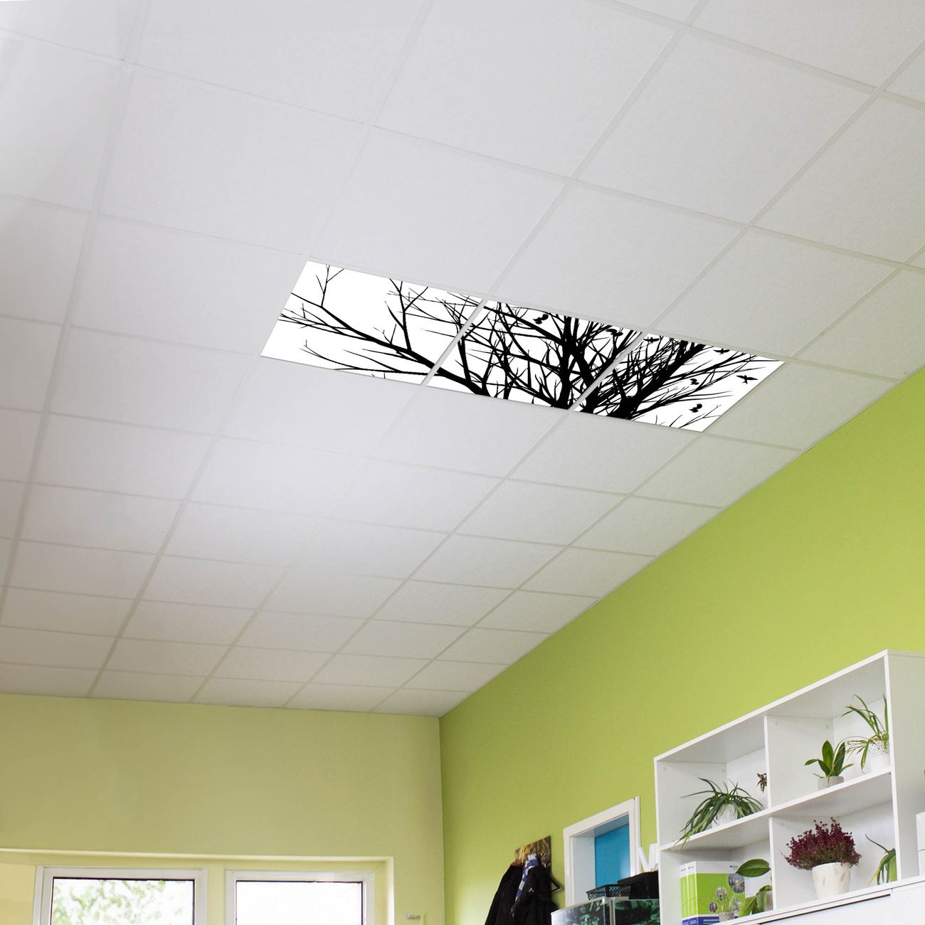 Entdecken Sie unsere vielseitigen Lichtdecken, hier in der Größe 186 x 62cm mit dem Motiv Motiv Fortfliegen - Ihre Beleuchtungslösung für jede Umgebung Beleuchten Sie Ihren Raum nicht nur, sondern schaffen Sie Atmosphäre! Die banjado Lichtdecke verwandelt jeden Ort, ob zu Hause, in Praxen, Büros oder Studios in eine Wohlfühloase. Unsere einzelnen Elemente haben eine genormte Einheitsgröße von 62 x 62cm und können somit in jede gängige Rasterdecken verbaut werden. So finden Sie Ihre passende Ausführung: Gern helfen wir Ihnen, die passende Ausführung zu wählen. Hierfür muss die aktuelle Gegebenheit Ihrer Decke oder Wand beachtet werden. Haben Sie bereits eine Rasterdecke (auch Odenwalddecke genannt)? Hier bestellen Sie lediglich das Motiv + Beleuchtungspanel, denn beides wird in die bereits vorhandene Decke eingelegt. Haben Sie eine glatte Decke mit Lichtauslass oder möchten die Lichtdecke an der Wand befestigen? Hier bestellen Sie bitte Motiv + Beleuchtungspanel + Deckenbefestigung, eine Aufbauanleitung liegt immer bei. Die Lichtdecke kann sowohl an der Decke als auch an der Wand montiert werden, perfekt für kreative Lichtakzente oder alternative Beleuchtungslösungen. Haben Sie bereits eine Lichtdecke und möchten nur das Motiv wechseln? Hier bestellen Sie bitte nur Motiv, der Wechsel ist denkbar einfach. Der Aufbau Ihrer banjado Lichtdecke gestaltet sich unkompliziert, dank einer verständlichen Anleitung, die Ihnen Schritt für Schritt durch den Montageprozess hilft. Für die endgültige Installation und den sicheren Anschluss empfehlen wir die Hinzuziehung eines Fachmanns, um die optimale Funktion und Sicherheit Ihrer Beleuchtung zu gewährleisten. Falls Sie einen Fachmann für die Installation benötigen, geben Sie uns gern Bescheid, wir vermitteln Ihnen gern einen geeigneten Ansprechpartner aus Ihrer Nähe. Steuerung: Steigern Sie Ihr Beleuchtungserlebnis mit der nahtlosen Integration in Ihr Smart Home. Durch die Kompatibilität mit der SmartLife App, Alexa und Google Assistant wird Ihr Smartphone zur zentralen Steuerungseinheit. Ihr Handy fungiert hierbei sozusagen als Fernbedienung. Legen Sie individuelle Lichtszenen in der App fest, die bei Aktivierung über den Wand-Ein-/Ausschalter immer wieder abgerufen werden können ohne Handy. Mit der Szenenfunktion in der Smart App können Sie die Beleuchtung personalisieren und steuern, sodass sie auf Ihre individuellen Bedürfnisse, Tagesrhythmus und Stimmung zugeschnitten ist. Beispielsweise können Sie sich in der Morgendämmerung durch ein sanftes Licht wecken lassen oder das Licht der Praxis werktags um 7 Uhr automatisch einschalten lassen. Dieses kann dann natürlich auch zu einer bestimmten Zeit automatisch ausgeschaltet werden. Motivwahl: Diese einzigartige Lichtdecke zeichnet sich durch ihre Fähigkeit aus, die Lichtfarbe je nach gewähltem Motiv anzupassen - ein Baum wirft ein sanftes grünes Licht, während eine Wolkendecke Ihren Raum in ein beruhigendes blaues Leuchten hüllt. Berücksichtigen Sie dies bitte bei Ihrer Motivauswahl. Sie können das Motiv jederzeit ohne großen Aufwand austauschen, ob nach Jahreszeit oder anderem Anlass, unsere Auswahl lässt kaum Wünsche offen. Wir fertigen Ihnen gern eine personalisierte Lichtdecke mit einem eigenen Motiv oder Logo oder Foto, schreiben Sie uns jederzeit an. Technische Daten: Das Motiv ist auf einer 4mm starken Acrylglas Scheibe aufgebracht, das Gesamtgewicht Ihrer Ausführung beträgt 6,8kg. Die Farbtemperatur lässt sich frei einstellen von 3000 bis 6000 Kelvin, damit können Sie stufenlos zwischen warmweiß, neutralweiß und kaltweiß wählen. Die Gesamtleistung bei Ihrer gewählten Ausführung beträgt 120W. Der Lichtstrom beträgt 3600 Lumen, die Nennspannung 230 V. Die Lichtdecke ist mit Schutzart IP20 für den Innenbereich konzipiert und sollte nicht im Nassbereich verwendet werden.
