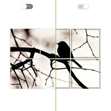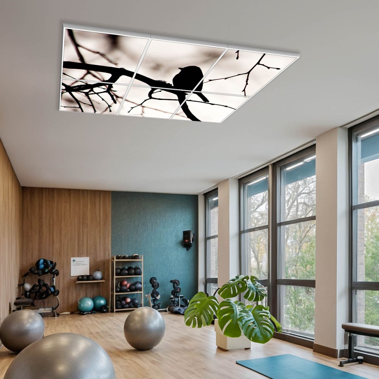 Entdecken Sie unsere vielseitigen Lichtdecken, hier in der Größe 186 x 124cm mit dem Motiv Motiv Früher Vogel - Ihre Beleuchtungslösung für jede Umgebung Beleuchten Sie Ihren Raum nicht nur, sondern schaffen Sie Atmosphäre! Die banjado Lichtdecke verwandelt jeden Ort, ob zu Hause, in Praxen, Büros oder Studios in eine Wohlfühloase. Unsere einzelnen Elemente haben eine genormte Einheitsgröße von 62 x 62cm und können somit in jede gängige Rasterdecken verbaut werden. So finden Sie Ihre passende Ausführung: Gern helfen wir Ihnen, die passende Ausführung zu wählen. Hierfür muss die aktuelle Gegebenheit Ihrer Decke oder Wand beachtet werden. Haben Sie bereits eine Rasterdecke (auch Odenwalddecke genannt)? Hier bestellen Sie lediglich das Motiv + Beleuchtungspanel, denn beides wird in die bereits vorhandene Decke eingelegt. Haben Sie eine glatte Decke mit Lichtauslass oder möchten die Lichtdecke an der Wand befestigen? Hier bestellen Sie bitte Motiv + Beleuchtungspanel + Deckenbefestigung, eine Aufbauanleitung liegt immer bei. Die Lichtdecke kann sowohl an der Decke als auch an der Wand montiert werden, perfekt für kreative Lichtakzente oder alternative Beleuchtungslösungen. Haben Sie bereits eine Lichtdecke und möchten nur das Motiv wechseln? Hier bestellen Sie bitte nur Motiv, der Wechsel ist denkbar einfach. Der Aufbau Ihrer banjado Lichtdecke gestaltet sich unkompliziert, dank einer verständlichen Anleitung, die Ihnen Schritt für Schritt durch den Montageprozess hilft. Für die endgültige Installation und den sicheren Anschluss empfehlen wir die Hinzuziehung eines Fachmanns, um die optimale Funktion und Sicherheit Ihrer Beleuchtung zu gewährleisten. Falls Sie einen Fachmann für die Installation benötigen, geben Sie uns gern Bescheid, wir vermitteln Ihnen gern einen geeigneten Ansprechpartner aus Ihrer Nähe. Steuerung: Steigern Sie Ihr Beleuchtungserlebnis mit der nahtlosen Integration in Ihr Smart Home. Durch die Kompatibilität mit der SmartLife App, Alexa und Google Assistant wird Ihr Smartphone zur zentralen Steuerungseinheit. Ihr Handy fungiert hierbei sozusagen als Fernbedienung. Legen Sie individuelle Lichtszenen in der App fest, die bei Aktivierung über den Wand-Ein-/Ausschalter immer wieder abgerufen werden können ohne Handy. Mit der Szenenfunktion in der Smart App können Sie die Beleuchtung personalisieren und steuern, sodass sie auf Ihre individuellen Bedürfnisse, Tagesrhythmus und Stimmung zugeschnitten ist. Beispielsweise können Sie sich in der Morgendämmerung durch ein sanftes Licht wecken lassen oder das Licht der Praxis werktags um 7 Uhr automatisch einschalten lassen. Dieses kann dann natürlich auch zu einer bestimmten Zeit automatisch ausgeschaltet werden. Motivwahl: Diese einzigartige Lichtdecke zeichnet sich durch ihre Fähigkeit aus, die Lichtfarbe je nach gewähltem Motiv anzupassen - ein Baum wirft ein sanftes grünes Licht, während eine Wolkendecke Ihren Raum in ein beruhigendes blaues Leuchten hüllt. Berücksichtigen Sie dies bitte bei Ihrer Motivauswahl. Sie können das Motiv jederzeit ohne großen Aufwand austauschen, ob nach Jahreszeit oder anderem Anlass, unsere Auswahl lässt kaum Wünsche offen. Wir fertigen Ihnen gern eine personalisierte Lichtdecke mit einem eigenen Motiv oder Logo oder Foto, schreiben Sie uns jederzeit an. Technische Daten: Das Motiv ist auf einer 4mm starken Acrylglas Scheibe aufgebracht, das Gesamtgewicht Ihrer Ausführung beträgt 29,6kg. Die Farbtemperatur lässt sich frei einstellen von 3000 bis 6000 Kelvin, damit können Sie stufenlos zwischen warmweiß, neutralweiß und kaltweiß wählen. Die Gesamtleistung bei Ihrer gewählten Ausführung beträgt 240W. Der Lichtstrom beträgt 3600 Lumen, die Nennspannung 230 V. Die Lichtdecke ist mit Schutzart IP20 für den Innenbereich konzipiert und sollte nicht im Nassbereich verwendet werden.