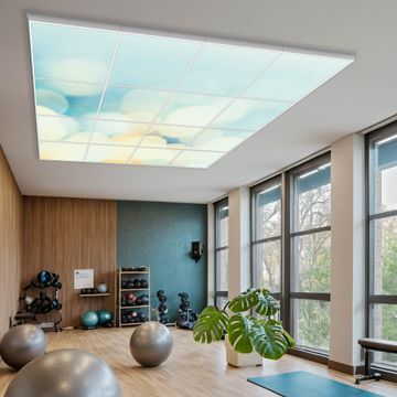 Entdecken Sie unsere vielseitigen Lichtdecken, hier in der Größe 248 x 248cm mit dem Motiv Motiv Funkelnde Lichter - Ihre Beleuchtungslösung für jede Umgebung Beleuchten Sie Ihren Raum nicht nur, sondern schaffen Sie Atmosphäre! Die banjado Lichtdecke verwandelt jeden Ort, ob zu Hause, in Praxen, Büros oder Studios in eine Wohlfühloase. Unsere einzelnen Elemente haben eine genormte Einheitsgröße von 62 x 62cm und können somit in jede gängige Rasterdecken verbaut werden. So finden Sie Ihre passende Ausführung: Gern helfen wir Ihnen, die passende Ausführung zu wählen. Hierfür muss die aktuelle Gegebenheit Ihrer Decke oder Wand beachtet werden. Haben Sie bereits eine Rasterdecke (auch Odenwalddecke genannt)? Hier bestellen Sie lediglich das Motiv + Beleuchtungspanel, denn beides wird in die bereits vorhandene Decke eingelegt. Haben Sie eine glatte Decke mit Lichtauslass oder möchten die Lichtdecke an der Wand befestigen? Hier bestellen Sie bitte Motiv + Beleuchtungspanel + Deckenbefestigung, eine Aufbauanleitung liegt immer bei. Die Lichtdecke kann sowohl an der Decke als auch an der Wand montiert werden, perfekt für kreative Lichtakzente oder alternative Beleuchtungslösungen. Haben Sie bereits eine Lichtdecke und möchten nur das Motiv wechseln? Hier bestellen Sie bitte nur Motiv, der Wechsel ist denkbar einfach. Der Aufbau Ihrer banjado Lichtdecke gestaltet sich unkompliziert, dank einer verständlichen Anleitung, die Ihnen Schritt für Schritt durch den Montageprozess hilft. Für die endgültige Installation und den sicheren Anschluss empfehlen wir die Hinzuziehung eines Fachmanns, um die optimale Funktion und Sicherheit Ihrer Beleuchtung zu gewährleisten. Falls Sie einen Fachmann für die Installation benötigen, geben Sie uns gern Bescheid, wir vermitteln Ihnen gern einen geeigneten Ansprechpartner aus Ihrer Nähe. Steuerung: Steigern Sie Ihr Beleuchtungserlebnis mit der nahtlosen Integration in Ihr Smart Home. Durch die Kompatibilität mit der SmartLife App, Alexa und Google Assistant wird Ihr Smartphone zur zentralen Steuerungseinheit. Ihr Handy fungiert hierbei sozusagen als Fernbedienung. Legen Sie individuelle Lichtszenen in der App fest, die bei Aktivierung über den Wand-Ein-/Ausschalter immer wieder abgerufen werden können ohne Handy. Mit der Szenenfunktion in der Smart App können Sie die Beleuchtung personalisieren und steuern, sodass sie auf Ihre individuellen Bedürfnisse, Tagesrhythmus und Stimmung zugeschnitten ist. Beispielsweise können Sie sich in der Morgendämmerung durch ein sanftes Licht wecken lassen oder das Licht der Praxis werktags um 7 Uhr automatisch einschalten lassen. Dieses kann dann natürlich auch zu einer bestimmten Zeit automatisch ausgeschaltet werden. Motivwahl: Diese einzigartige Lichtdecke zeichnet sich durch ihre Fähigkeit aus, die Lichtfarbe je nach gewähltem Motiv anzupassen - ein Baum wirft ein sanftes grünes Licht, während eine Wolkendecke Ihren Raum in ein beruhigendes blaues Leuchten hüllt. Berücksichtigen Sie dies bitte bei Ihrer Motivauswahl. Sie können das Motiv jederzeit ohne großen Aufwand austauschen, ob nach Jahreszeit oder anderem Anlass, unsere Auswahl lässt kaum Wünsche offen. Wir fertigen Ihnen gern eine personalisierte Lichtdecke mit einem eigenen Motiv oder Logo oder Foto, schreiben Sie uns jederzeit an. Technische Daten: Das Motiv ist auf einer 4mm starken Acrylglas Scheibe aufgebracht, das Gesamtgewicht Ihrer Ausführung beträgt 78,9kg. Die Farbtemperatur lässt sich frei einstellen von 3000 bis 6000 Kelvin, damit können Sie stufenlos zwischen warmweiß, neutralweiß und kaltweiß wählen. Die Gesamtleistung bei Ihrer gewählten Ausführung beträgt 640W. Der Lichtstrom beträgt 3600 Lumen, die Nennspannung 230 V. Die Lichtdecke ist mit Schutzart IP20 für den Innenbereich konzipiert und sollte nicht im Nassbereich verwendet werden.