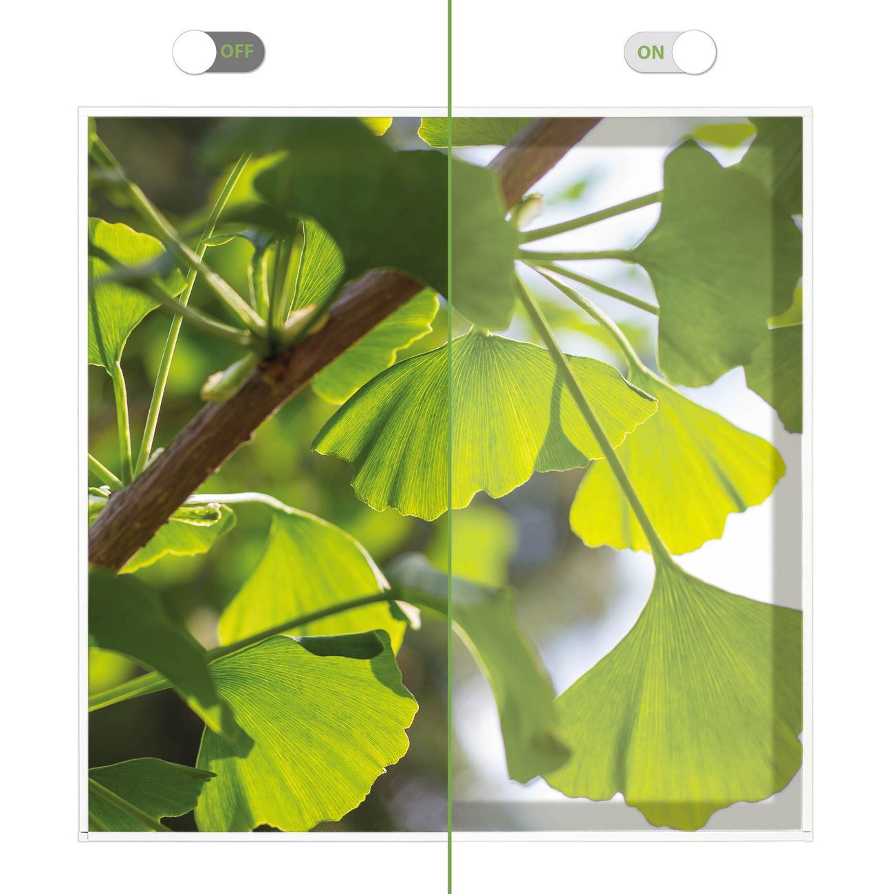Entdecken Sie unsere vielseitigen Lichtdecken, hier in der Größe 62 x 62cm mit dem Motiv Motiv Gingko - Ihre Beleuchtungslösung für jede Umgebung Beleuchten Sie Ihren Raum nicht nur, sondern schaffen Sie Atmosphäre! Die banjado Lichtdecke verwandelt jeden Ort, ob zu Hause, in Praxen, Büros oder Studios in eine Wohlfühloase. Unsere einzelnen Elemente haben eine genormte Einheitsgröße von 62 x 62cm und können somit in jede gängige Rasterdecken verbaut werden. So finden Sie Ihre passende Ausführung: Gern helfen wir Ihnen, die passende Ausführung zu wählen. Hierfür muss die aktuelle Gegebenheit Ihrer Decke oder Wand beachtet werden. Haben Sie bereits eine Rasterdecke (auch Odenwalddecke genannt)? Hier bestellen Sie lediglich das Motiv + Beleuchtungspanel, denn beides wird in die bereits vorhandene Decke eingelegt. Haben Sie eine glatte Decke mit Lichtauslass oder möchten die Lichtdecke an der Wand befestigen? Hier bestellen Sie bitte Motiv + Beleuchtungspanel + Deckenbefestigung, eine Aufbauanleitung liegt immer bei. Die Lichtdecke kann sowohl an der Decke als auch an der Wand montiert werden, perfekt für kreative Lichtakzente oder alternative Beleuchtungslösungen. Haben Sie bereits eine Lichtdecke und möchten nur das Motiv wechseln? Hier bestellen Sie bitte nur Motiv, der Wechsel ist denkbar einfach. Der Aufbau Ihrer banjado Lichtdecke gestaltet sich unkompliziert, dank einer verständlichen Anleitung, die Ihnen Schritt für Schritt durch den Montageprozess hilft. Für die endgültige Installation und den sicheren Anschluss empfehlen wir die Hinzuziehung eines Fachmanns, um die optimale Funktion und Sicherheit Ihrer Beleuchtung zu gewährleisten. Falls Sie einen Fachmann für die Installation benötigen, geben Sie uns gern Bescheid, wir vermitteln Ihnen gern einen geeigneten Ansprechpartner aus Ihrer Nähe. Steuerung: Steigern Sie Ihr Beleuchtungserlebnis mit der nahtlosen Integration in Ihr Smart Home. Durch die Kompatibilität mit der SmartLife App, Alexa und Google Assistant wird Ihr Smartphone zur zentralen Steuerungseinheit. Ihr Handy fungiert hierbei sozusagen als Fernbedienung. Legen Sie individuelle Lichtszenen in der App fest, die bei Aktivierung über den Wand-Ein-/Ausschalter immer wieder abgerufen werden können ohne Handy. Mit der Szenenfunktion in der Smart App können Sie die Beleuchtung personalisieren und steuern, sodass sie auf Ihre individuellen Bedürfnisse, Tagesrhythmus und Stimmung zugeschnitten ist. Beispielsweise können Sie sich in der Morgendämmerung durch ein sanftes Licht wecken lassen oder das Licht der Praxis werktags um 7 Uhr automatisch einschalten lassen. Dieses kann dann natürlich auch zu einer bestimmten Zeit automatisch ausgeschaltet werden. Motivwahl: Diese einzigartige Lichtdecke zeichnet sich durch ihre Fähigkeit aus, die Lichtfarbe je nach gewähltem Motiv anzupassen - ein Baum wirft ein sanftes grünes Licht, während eine Wolkendecke Ihren Raum in ein beruhigendes blaues Leuchten hüllt. Berücksichtigen Sie dies bitte bei Ihrer Motivauswahl. Sie können das Motiv jederzeit ohne großen Aufwand austauschen, ob nach Jahreszeit oder anderem Anlass, unsere Auswahl lässt kaum Wünsche offen. Wir fertigen Ihnen gern eine personalisierte Lichtdecke mit einem eigenen Motiv oder Logo oder Foto, schreiben Sie uns jederzeit an. Technische Daten: Das Motiv ist auf einer 4mm starken Acrylglas Scheibe aufgebracht, das Gesamtgewicht Ihrer Ausführung beträgt 4,4kg. Die Farbtemperatur lässt sich frei einstellen von 3000 bis 6000 Kelvin, damit können Sie stufenlos zwischen warmweiß, neutralweiß und kaltweiß wählen. Die Gesamtleistung bei Ihrer gewählten Ausführung beträgt 40W. Der Lichtstrom beträgt 3600 Lumen, die Nennspannung 230 V. Die Lichtdecke ist mit Schutzart IP20 für den Innenbereich konzipiert und sollte nicht im Nassbereich verwendet werden.