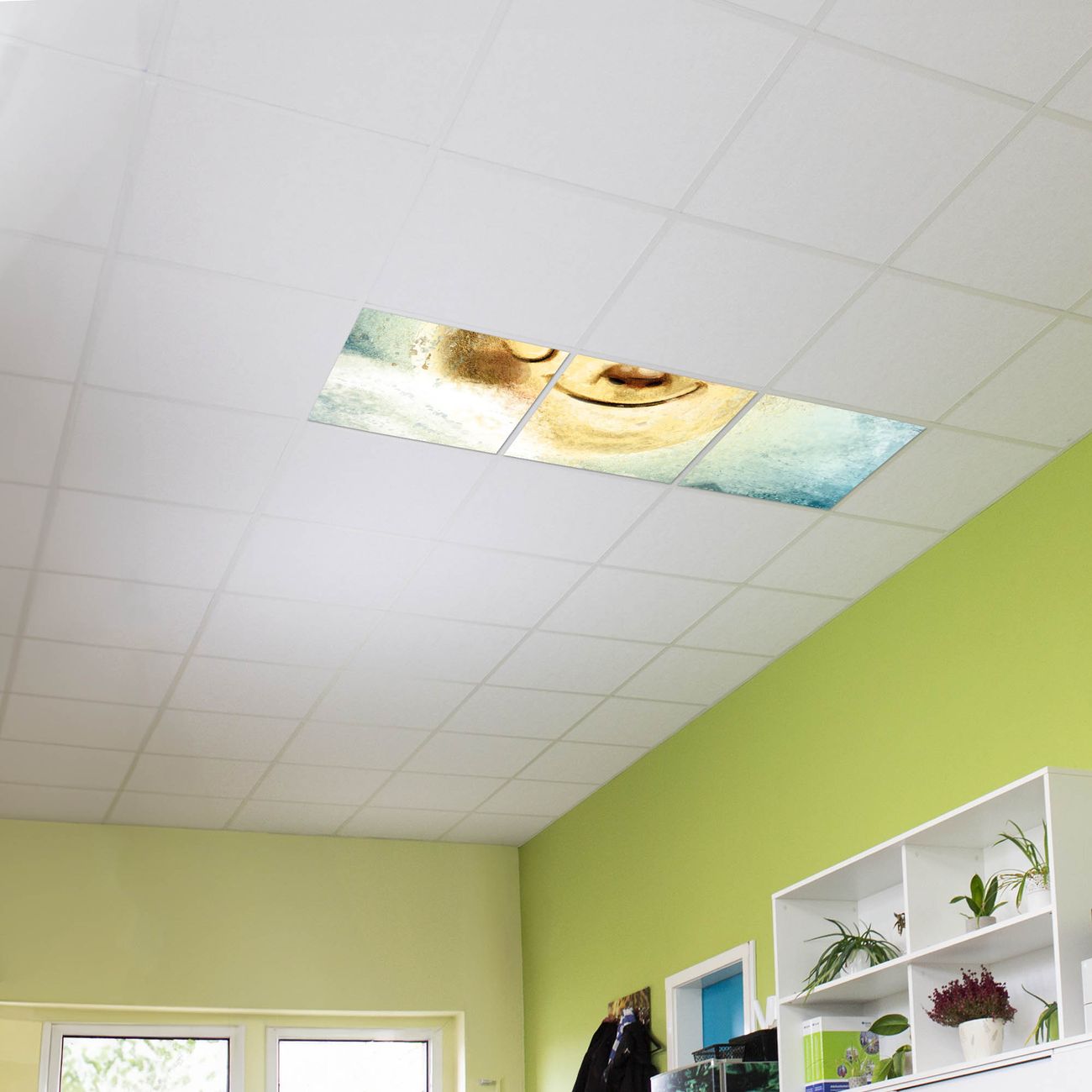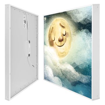 Entdecken Sie unsere vielseitigen Lichtdecken, hier in der Größe 186 x 62cm mit dem Motiv Motiv Glücksmond - Ihre Beleuchtungslösung für jede Umgebung Beleuchten Sie Ihren Raum nicht nur, sondern schaffen Sie Atmosphäre! Die banjado Lichtdecke verwandelt jeden Ort, ob zu Hause, in Praxen, Büros oder Studios in eine Wohlfühloase. Unsere einzelnen Elemente haben eine genormte Einheitsgröße von 62 x 62cm und können somit in jede gängige Rasterdecken verbaut werden. So finden Sie Ihre passende Ausführung: Gern helfen wir Ihnen, die passende Ausführung zu wählen. Hierfür muss die aktuelle Gegebenheit Ihrer Decke oder Wand beachtet werden. Haben Sie bereits eine Rasterdecke (auch Odenwalddecke genannt)? Hier bestellen Sie lediglich das Motiv + Beleuchtungspanel, denn beides wird in die bereits vorhandene Decke eingelegt. Haben Sie eine glatte Decke mit Lichtauslass oder möchten die Lichtdecke an der Wand befestigen? Hier bestellen Sie bitte Motiv + Beleuchtungspanel + Deckenbefestigung, eine Aufbauanleitung liegt immer bei. Die Lichtdecke kann sowohl an der Decke als auch an der Wand montiert werden, perfekt für kreative Lichtakzente oder alternative Beleuchtungslösungen. Haben Sie bereits eine Lichtdecke und möchten nur das Motiv wechseln? Hier bestellen Sie bitte nur Motiv, der Wechsel ist denkbar einfach. Der Aufbau Ihrer banjado Lichtdecke gestaltet sich unkompliziert, dank einer verständlichen Anleitung, die Ihnen Schritt für Schritt durch den Montageprozess hilft. Für die endgültige Installation und den sicheren Anschluss empfehlen wir die Hinzuziehung eines Fachmanns, um die optimale Funktion und Sicherheit Ihrer Beleuchtung zu gewährleisten. Falls Sie einen Fachmann für die Installation benötigen, geben Sie uns gern Bescheid, wir vermitteln Ihnen gern einen geeigneten Ansprechpartner aus Ihrer Nähe. Steuerung: Steigern Sie Ihr Beleuchtungserlebnis mit der nahtlosen Integration in Ihr Smart Home. Durch die Kompatibilität mit der SmartLife App, Alexa und Google Assistant wird Ihr Smartphone zur zentralen Steuerungseinheit. Ihr Handy fungiert hierbei sozusagen als Fernbedienung. Legen Sie individuelle Lichtszenen in der App fest, die bei Aktivierung über den Wand-Ein-/Ausschalter immer wieder abgerufen werden können ohne Handy. Mit der Szenenfunktion in der Smart App können Sie die Beleuchtung personalisieren und steuern, sodass sie auf Ihre individuellen Bedürfnisse, Tagesrhythmus und Stimmung zugeschnitten ist. Beispielsweise können Sie sich in der Morgendämmerung durch ein sanftes Licht wecken lassen oder das Licht der Praxis werktags um 7 Uhr automatisch einschalten lassen. Dieses kann dann natürlich auch zu einer bestimmten Zeit automatisch ausgeschaltet werden. Motivwahl: Diese einzigartige Lichtdecke zeichnet sich durch ihre Fähigkeit aus, die Lichtfarbe je nach gewähltem Motiv anzupassen - ein Baum wirft ein sanftes grünes Licht, während eine Wolkendecke Ihren Raum in ein beruhigendes blaues Leuchten hüllt. Berücksichtigen Sie dies bitte bei Ihrer Motivauswahl. Sie können das Motiv jederzeit ohne großen Aufwand austauschen, ob nach Jahreszeit oder anderem Anlass, unsere Auswahl lässt kaum Wünsche offen. Wir fertigen Ihnen gern eine personalisierte Lichtdecke mit einem eigenen Motiv oder Logo oder Foto, schreiben Sie uns jederzeit an. Technische Daten: Das Motiv ist auf einer 4mm starken Acrylglas Scheibe aufgebracht, das Gesamtgewicht Ihrer Ausführung beträgt 6,8kg. Die Farbtemperatur lässt sich frei einstellen von 3000 bis 6000 Kelvin, damit können Sie stufenlos zwischen warmweiß, neutralweiß und kaltweiß wählen. Die Gesamtleistung bei Ihrer gewählten Ausführung beträgt 120W. Der Lichtstrom beträgt 3600 Lumen, die Nennspannung 230 V. Die Lichtdecke ist mit Schutzart IP20 für den Innenbereich konzipiert und sollte nicht im Nassbereich verwendet werden.