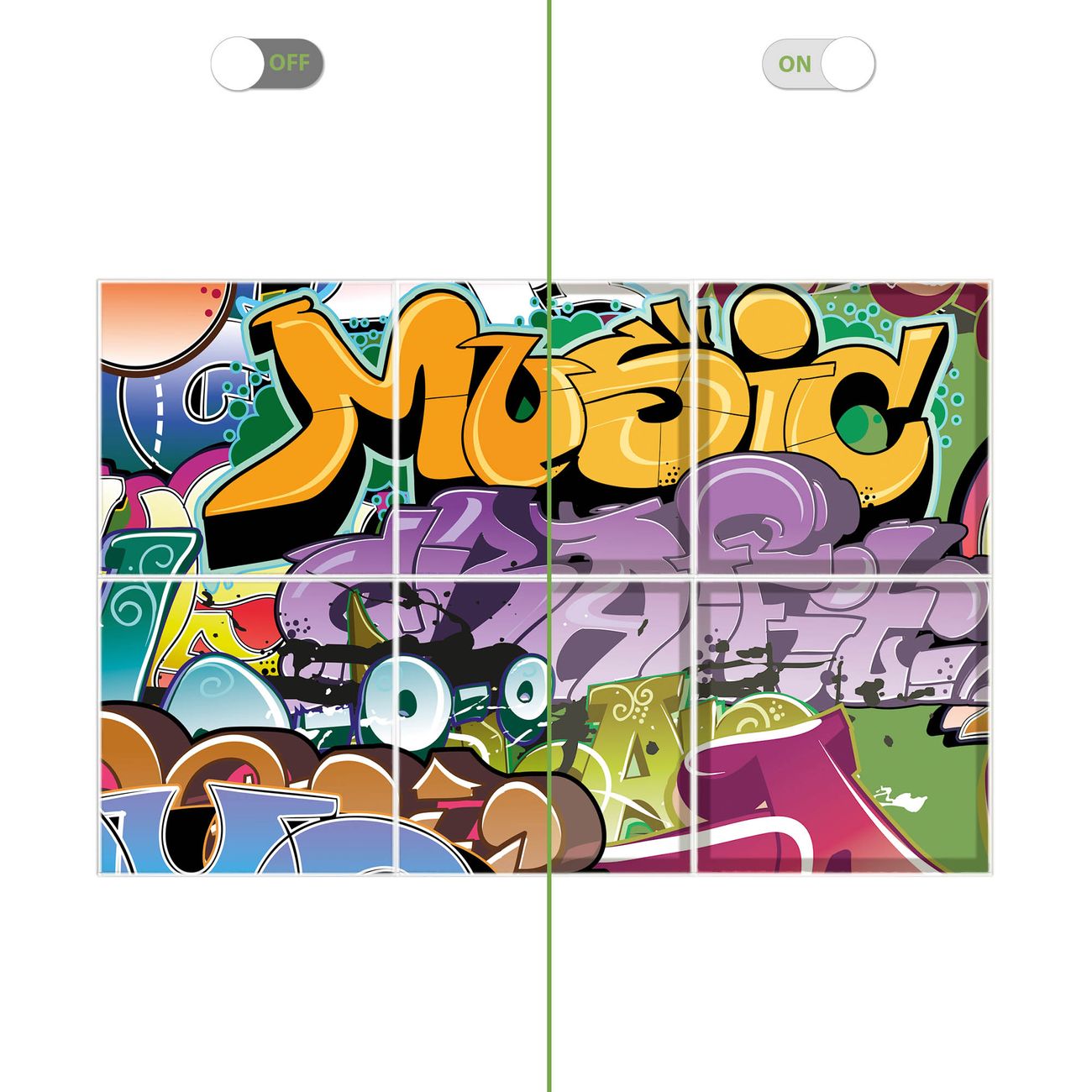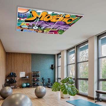 Entdecken Sie unsere vielseitigen Lichtdecken, hier in der Größe 186 x 124cm mit dem Motiv Motiv Graffiti - Ihre Beleuchtungslösung für jede Umgebung Beleuchten Sie Ihren Raum nicht nur, sondern schaffen Sie Atmosphäre! Die banjado Lichtdecke verwandelt jeden Ort, ob zu Hause, in Praxen, Büros oder Studios in eine Wohlfühloase. Unsere einzelnen Elemente haben eine genormte Einheitsgröße von 62 x 62cm und können somit in jede gängige Rasterdecken verbaut werden. So finden Sie Ihre passende Ausführung: Gern helfen wir Ihnen, die passende Ausführung zu wählen. Hierfür muss die aktuelle Gegebenheit Ihrer Decke oder Wand beachtet werden. Haben Sie bereits eine Rasterdecke (auch Odenwalddecke genannt)? Hier bestellen Sie lediglich das Motiv + Beleuchtungspanel, denn beides wird in die bereits vorhandene Decke eingelegt. Haben Sie eine glatte Decke mit Lichtauslass oder möchten die Lichtdecke an der Wand befestigen? Hier bestellen Sie bitte Motiv + Beleuchtungspanel + Deckenbefestigung, eine Aufbauanleitung liegt immer bei. Die Lichtdecke kann sowohl an der Decke als auch an der Wand montiert werden, perfekt für kreative Lichtakzente oder alternative Beleuchtungslösungen. Haben Sie bereits eine Lichtdecke und möchten nur das Motiv wechseln? Hier bestellen Sie bitte nur Motiv, der Wechsel ist denkbar einfach. Der Aufbau Ihrer banjado Lichtdecke gestaltet sich unkompliziert, dank einer verständlichen Anleitung, die Ihnen Schritt für Schritt durch den Montageprozess hilft. Für die endgültige Installation und den sicheren Anschluss empfehlen wir die Hinzuziehung eines Fachmanns, um die optimale Funktion und Sicherheit Ihrer Beleuchtung zu gewährleisten. Falls Sie einen Fachmann für die Installation benötigen, geben Sie uns gern Bescheid, wir vermitteln Ihnen gern einen geeigneten Ansprechpartner aus Ihrer Nähe. Steuerung: Steigern Sie Ihr Beleuchtungserlebnis mit der nahtlosen Integration in Ihr Smart Home. Durch die Kompatibilität mit der SmartLife App, Alexa und Google Assistant wird Ihr Smartphone zur zentralen Steuerungseinheit. Ihr Handy fungiert hierbei sozusagen als Fernbedienung. Legen Sie individuelle Lichtszenen in der App fest, die bei Aktivierung über den Wand-Ein-/Ausschalter immer wieder abgerufen werden können ohne Handy. Mit der Szenenfunktion in der Smart App können Sie die Beleuchtung personalisieren und steuern, sodass sie auf Ihre individuellen Bedürfnisse, Tagesrhythmus und Stimmung zugeschnitten ist. Beispielsweise können Sie sich in der Morgendämmerung durch ein sanftes Licht wecken lassen oder das Licht der Praxis werktags um 7 Uhr automatisch einschalten lassen. Dieses kann dann natürlich auch zu einer bestimmten Zeit automatisch ausgeschaltet werden. Motivwahl: Diese einzigartige Lichtdecke zeichnet sich durch ihre Fähigkeit aus, die Lichtfarbe je nach gewähltem Motiv anzupassen - ein Baum wirft ein sanftes grünes Licht, während eine Wolkendecke Ihren Raum in ein beruhigendes blaues Leuchten hüllt. Berücksichtigen Sie dies bitte bei Ihrer Motivauswahl. Sie können das Motiv jederzeit ohne großen Aufwand austauschen, ob nach Jahreszeit oder anderem Anlass, unsere Auswahl lässt kaum Wünsche offen. Wir fertigen Ihnen gern eine personalisierte Lichtdecke mit einem eigenen Motiv oder Logo oder Foto, schreiben Sie uns jederzeit an. Technische Daten: Das Motiv ist auf einer 4mm starken Acrylglas Scheibe aufgebracht, das Gesamtgewicht Ihrer Ausführung beträgt 29,6kg. Die Farbtemperatur lässt sich frei einstellen von 3000 bis 6000 Kelvin, damit können Sie stufenlos zwischen warmweiß, neutralweiß und kaltweiß wählen. Die Gesamtleistung bei Ihrer gewählten Ausführung beträgt 240W. Der Lichtstrom beträgt 3600 Lumen, die Nennspannung 230 V. Die Lichtdecke ist mit Schutzart IP20 für den Innenbereich konzipiert und sollte nicht im Nassbereich verwendet werden.