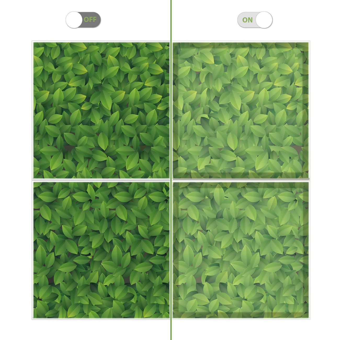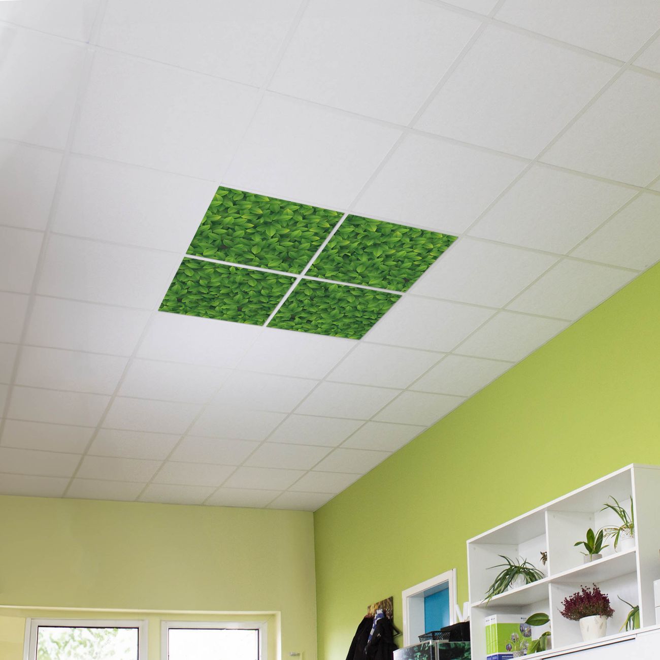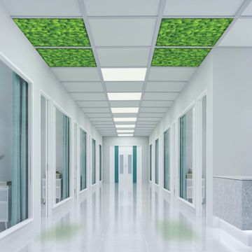Entdecken Sie unsere vielseitigen Lichtdecken, hier in der Größe 124 x 124cm mit dem Motiv Motiv Grüne Blätter - Ihre Beleuchtungslösung für jede Umgebung Beleuchten Sie Ihren Raum nicht nur, sondern schaffen Sie Atmosphäre! Die banjado Lichtdecke verwandelt jeden Ort, ob zu Hause, in Praxen, Büros oder Studios in eine Wohlfühloase. Unsere einzelnen Elemente haben eine genormte Einheitsgröße von 62 x 62cm und können somit in jede gängige Rasterdecken verbaut werden. So finden Sie Ihre passende Ausführung: Gern helfen wir Ihnen, die passende Ausführung zu wählen. Hierfür muss die aktuelle Gegebenheit Ihrer Decke oder Wand beachtet werden. Haben Sie bereits eine Rasterdecke (auch Odenwalddecke genannt)? Hier bestellen Sie lediglich das Motiv + Beleuchtungspanel, denn beides wird in die bereits vorhandene Decke eingelegt. Haben Sie eine glatte Decke mit Lichtauslass oder möchten die Lichtdecke an der Wand befestigen? Hier bestellen Sie bitte Motiv + Beleuchtungspanel + Deckenbefestigung, eine Aufbauanleitung liegt immer bei. Die Lichtdecke kann sowohl an der Decke als auch an der Wand montiert werden, perfekt für kreative Lichtakzente oder alternative Beleuchtungslösungen. Haben Sie bereits eine Lichtdecke und möchten nur das Motiv wechseln? Hier bestellen Sie bitte nur Motiv, der Wechsel ist denkbar einfach. Der Aufbau Ihrer banjado Lichtdecke gestaltet sich unkompliziert, dank einer verständlichen Anleitung, die Ihnen Schritt für Schritt durch den Montageprozess hilft. Für die endgültige Installation und den sicheren Anschluss empfehlen wir die Hinzuziehung eines Fachmanns, um die optimale Funktion und Sicherheit Ihrer Beleuchtung zu gewährleisten. Falls Sie einen Fachmann für die Installation benötigen, geben Sie uns gern Bescheid, wir vermitteln Ihnen gern einen geeigneten Ansprechpartner aus Ihrer Nähe. Steuerung: Steigern Sie Ihr Beleuchtungserlebnis mit der nahtlosen Integration in Ihr Smart Home. Durch die Kompatibilität mit der SmartLife App, Alexa und Google Assistant wird Ihr Smartphone zur zentralen Steuerungseinheit. Ihr Handy fungiert hierbei sozusagen als Fernbedienung. Legen Sie individuelle Lichtszenen in der App fest, die bei Aktivierung über den Wand-Ein-/Ausschalter immer wieder abgerufen werden können ohne Handy. Mit der Szenenfunktion in der Smart App können Sie die Beleuchtung personalisieren und steuern, sodass sie auf Ihre individuellen Bedürfnisse, Tagesrhythmus und Stimmung zugeschnitten ist. Beispielsweise können Sie sich in der Morgendämmerung durch ein sanftes Licht wecken lassen oder das Licht der Praxis werktags um 7 Uhr automatisch einschalten lassen. Dieses kann dann natürlich auch zu einer bestimmten Zeit automatisch ausgeschaltet werden. Motivwahl: Diese einzigartige Lichtdecke zeichnet sich durch ihre Fähigkeit aus, die Lichtfarbe je nach gewähltem Motiv anzupassen - ein Baum wirft ein sanftes grünes Licht, während eine Wolkendecke Ihren Raum in ein beruhigendes blaues Leuchten hüllt. Berücksichtigen Sie dies bitte bei Ihrer Motivauswahl. Sie können das Motiv jederzeit ohne großen Aufwand austauschen, ob nach Jahreszeit oder anderem Anlass, unsere Auswahl lässt kaum Wünsche offen. Wir fertigen Ihnen gern eine personalisierte Lichtdecke mit einem eigenen Motiv oder Logo oder Foto, schreiben Sie uns jederzeit an. Technische Daten: Das Motiv ist auf einer 4mm starken Acrylglas Scheibe aufgebracht, das Gesamtgewicht Ihrer Ausführung beträgt 9,0kg. Die Farbtemperatur lässt sich frei einstellen von 3000 bis 6000 Kelvin, damit können Sie stufenlos zwischen warmweiß, neutralweiß und kaltweiß wählen. Die Gesamtleistung bei Ihrer gewählten Ausführung beträgt 160W. Der Lichtstrom beträgt 3600 Lumen, die Nennspannung 230 V. Die Lichtdecke ist mit Schutzart IP20 für den Innenbereich konzipiert und sollte nicht im Nassbereich verwendet werden.