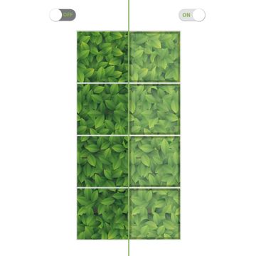 Motiv Grüne Blätter Nr. 10910 Größe: 125x250x4,5cm BxHxT Gewicht: ca. 38,80 kg Material: Acylglas, Metall, hochwertig bedruckte Premiumfolie Druck: farbbrilliant, hochauflösend Stärke Glas: 4mm Acylglas Einzelelement: 62,5x62,5cm groß (mit Rahmen) Dimmbar: JA LED Paneel: 40W, 230V, 3600lm, 4000K neutralweiß Steuerung: SmartApp / Alexa / Google Assistent oder ähnliche