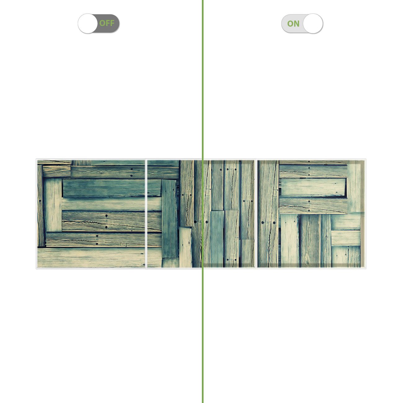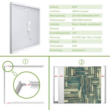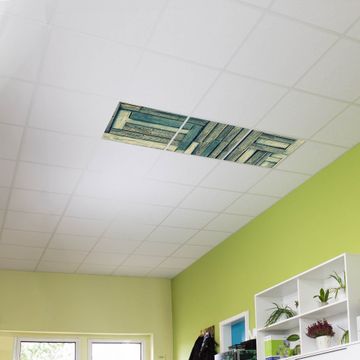 Entdecken Sie unsere vielseitigen Lichtdecken, hier in der Größe 186 x 62cm mit dem Motiv Motiv Grüne Planken - Ihre Beleuchtungslösung für jede Umgebung Beleuchten Sie Ihren Raum nicht nur, sondern schaffen Sie Atmosphäre! Die banjado Lichtdecke verwandelt jeden Ort, ob zu Hause, in Praxen, Büros oder Studios in eine Wohlfühloase. Unsere einzelnen Elemente haben eine genormte Einheitsgröße von 62 x 62cm und können somit in jede gängige Rasterdecken verbaut werden. So finden Sie Ihre passende Ausführung: Gern helfen wir Ihnen, die passende Ausführung zu wählen. Hierfür muss die aktuelle Gegebenheit Ihrer Decke oder Wand beachtet werden. Haben Sie bereits eine Rasterdecke (auch Odenwalddecke genannt)? Hier bestellen Sie lediglich das Motiv + Beleuchtungspanel, denn beides wird in die bereits vorhandene Decke eingelegt. Haben Sie eine glatte Decke mit Lichtauslass oder möchten die Lichtdecke an der Wand befestigen? Hier bestellen Sie bitte Motiv + Beleuchtungspanel + Deckenbefestigung, eine Aufbauanleitung liegt immer bei. Die Lichtdecke kann sowohl an der Decke als auch an der Wand montiert werden, perfekt für kreative Lichtakzente oder alternative Beleuchtungslösungen. Haben Sie bereits eine Lichtdecke und möchten nur das Motiv wechseln? Hier bestellen Sie bitte nur Motiv, der Wechsel ist denkbar einfach. Der Aufbau Ihrer banjado Lichtdecke gestaltet sich unkompliziert, dank einer verständlichen Anleitung, die Ihnen Schritt für Schritt durch den Montageprozess hilft. Für die endgültige Installation und den sicheren Anschluss empfehlen wir die Hinzuziehung eines Fachmanns, um die optimale Funktion und Sicherheit Ihrer Beleuchtung zu gewährleisten. Falls Sie einen Fachmann für die Installation benötigen, geben Sie uns gern Bescheid, wir vermitteln Ihnen gern einen geeigneten Ansprechpartner aus Ihrer Nähe. Steuerung: Steigern Sie Ihr Beleuchtungserlebnis mit der nahtlosen Integration in Ihr Smart Home. Durch die Kompatibilität mit der SmartLife App, Alexa und Google Assistant wird Ihr Smartphone zur zentralen Steuerungseinheit. Ihr Handy fungiert hierbei sozusagen als Fernbedienung. Legen Sie individuelle Lichtszenen in der App fest, die bei Aktivierung über den Wand-Ein-/Ausschalter immer wieder abgerufen werden können ohne Handy. Mit der Szenenfunktion in der Smart App können Sie die Beleuchtung personalisieren und steuern, sodass sie auf Ihre individuellen Bedürfnisse, Tagesrhythmus und Stimmung zugeschnitten ist. Beispielsweise können Sie sich in der Morgendämmerung durch ein sanftes Licht wecken lassen oder das Licht der Praxis werktags um 7 Uhr automatisch einschalten lassen. Dieses kann dann natürlich auch zu einer bestimmten Zeit automatisch ausgeschaltet werden. Motivwahl: Diese einzigartige Lichtdecke zeichnet sich durch ihre Fähigkeit aus, die Lichtfarbe je nach gewähltem Motiv anzupassen - ein Baum wirft ein sanftes grünes Licht, während eine Wolkendecke Ihren Raum in ein beruhigendes blaues Leuchten hüllt. Berücksichtigen Sie dies bitte bei Ihrer Motivauswahl. Sie können das Motiv jederzeit ohne großen Aufwand austauschen, ob nach Jahreszeit oder anderem Anlass, unsere Auswahl lässt kaum Wünsche offen. Wir fertigen Ihnen gern eine personalisierte Lichtdecke mit einem eigenen Motiv oder Logo oder Foto, schreiben Sie uns jederzeit an. Technische Daten: Das Motiv ist auf einer 4mm starken Acrylglas Scheibe aufgebracht, das Gesamtgewicht Ihrer Ausführung beträgt 6,8kg. Die Farbtemperatur lässt sich frei einstellen von 3000 bis 6000 Kelvin, damit können Sie stufenlos zwischen warmweiß, neutralweiß und kaltweiß wählen. Die Gesamtleistung bei Ihrer gewählten Ausführung beträgt 120W. Der Lichtstrom beträgt 3600 Lumen, die Nennspannung 230 V. Die Lichtdecke ist mit Schutzart IP20 für den Innenbereich konzipiert und sollte nicht im Nassbereich verwendet werden.
