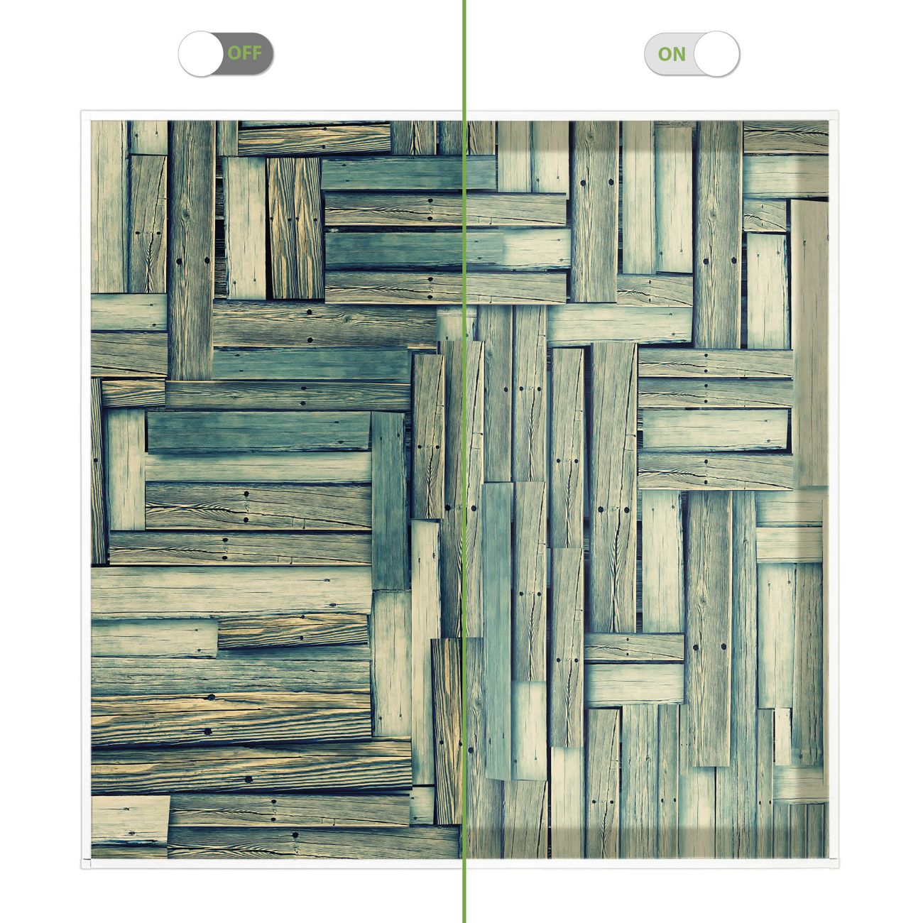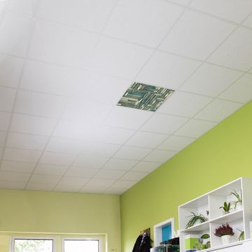 Entdecken Sie unsere vielseitigen Lichtdecken, hier in der Größe 62 x 62cm mit dem Motiv Motiv Grüne Planken - Ihre Beleuchtungslösung für jede Umgebung Beleuchten Sie Ihren Raum nicht nur, sondern schaffen Sie Atmosphäre! Die banjado Lichtdecke verwandelt jeden Ort, ob zu Hause, in Praxen, Büros oder Studios in eine Wohlfühloase. Unsere einzelnen Elemente haben eine genormte Einheitsgröße von 62 x 62cm und können somit in jede gängige Rasterdecken verbaut werden. So finden Sie Ihre passende Ausführung: Gern helfen wir Ihnen, die passende Ausführung zu wählen. Hierfür muss die aktuelle Gegebenheit Ihrer Decke oder Wand beachtet werden. Haben Sie bereits eine Rasterdecke (auch Odenwalddecke genannt)? Hier bestellen Sie lediglich das Motiv + Beleuchtungspanel, denn beides wird in die bereits vorhandene Decke eingelegt. Haben Sie eine glatte Decke mit Lichtauslass oder möchten die Lichtdecke an der Wand befestigen? Hier bestellen Sie bitte Motiv + Beleuchtungspanel + Deckenbefestigung, eine Aufbauanleitung liegt immer bei. Die Lichtdecke kann sowohl an der Decke als auch an der Wand montiert werden, perfekt für kreative Lichtakzente oder alternative Beleuchtungslösungen. Haben Sie bereits eine Lichtdecke und möchten nur das Motiv wechseln? Hier bestellen Sie bitte nur Motiv, der Wechsel ist denkbar einfach. Der Aufbau Ihrer banjado Lichtdecke gestaltet sich unkompliziert, dank einer verständlichen Anleitung, die Ihnen Schritt für Schritt durch den Montageprozess hilft. Für die endgültige Installation und den sicheren Anschluss empfehlen wir die Hinzuziehung eines Fachmanns, um die optimale Funktion und Sicherheit Ihrer Beleuchtung zu gewährleisten. Falls Sie einen Fachmann für die Installation benötigen, geben Sie uns gern Bescheid, wir vermitteln Ihnen gern einen geeigneten Ansprechpartner aus Ihrer Nähe. Steuerung: Steigern Sie Ihr Beleuchtungserlebnis mit der nahtlosen Integration in Ihr Smart Home. Durch die Kompatibilität mit der SmartLife App, Alexa und Google Assistant wird Ihr Smartphone zur zentralen Steuerungseinheit. Ihr Handy fungiert hierbei sozusagen als Fernbedienung. Legen Sie individuelle Lichtszenen in der App fest, die bei Aktivierung über den Wand-Ein-/Ausschalter immer wieder abgerufen werden können ohne Handy. Mit der Szenenfunktion in der Smart App können Sie die Beleuchtung personalisieren und steuern, sodass sie auf Ihre individuellen Bedürfnisse, Tagesrhythmus und Stimmung zugeschnitten ist. Beispielsweise können Sie sich in der Morgendämmerung durch ein sanftes Licht wecken lassen oder das Licht der Praxis werktags um 7 Uhr automatisch einschalten lassen. Dieses kann dann natürlich auch zu einer bestimmten Zeit automatisch ausgeschaltet werden. Motivwahl: Diese einzigartige Lichtdecke zeichnet sich durch ihre Fähigkeit aus, die Lichtfarbe je nach gewähltem Motiv anzupassen - ein Baum wirft ein sanftes grünes Licht, während eine Wolkendecke Ihren Raum in ein beruhigendes blaues Leuchten hüllt. Berücksichtigen Sie dies bitte bei Ihrer Motivauswahl. Sie können das Motiv jederzeit ohne großen Aufwand austauschen, ob nach Jahreszeit oder anderem Anlass, unsere Auswahl lässt kaum Wünsche offen. Wir fertigen Ihnen gern eine personalisierte Lichtdecke mit einem eigenen Motiv oder Logo oder Foto, schreiben Sie uns jederzeit an. Technische Daten: Das Motiv ist auf einer 4mm starken Acrylglas Scheibe aufgebracht, das Gesamtgewicht Ihrer Ausführung beträgt 4,4kg. Die Farbtemperatur lässt sich frei einstellen von 3000 bis 6000 Kelvin, damit können Sie stufenlos zwischen warmweiß, neutralweiß und kaltweiß wählen. Die Gesamtleistung bei Ihrer gewählten Ausführung beträgt 40W. Der Lichtstrom beträgt 3600 Lumen, die Nennspannung 230 V. Die Lichtdecke ist mit Schutzart IP20 für den Innenbereich konzipiert und sollte nicht im Nassbereich verwendet werden.