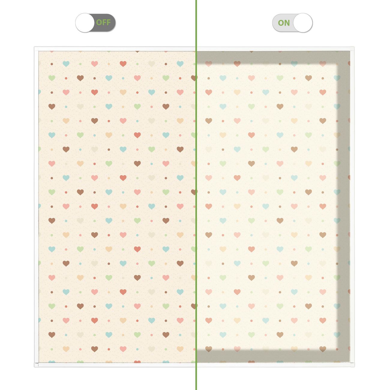 Entdecken Sie unsere vielseitigen Lichtdecken, hier in der Größe 62 x 62cm mit dem Motiv Motiv Herzen bunt - Ihre Beleuchtungslösung für jede Umgebung Beleuchten Sie Ihren Raum nicht nur, sondern schaffen Sie Atmosphäre! Die banjado Lichtdecke verwandelt jeden Ort, ob zu Hause, in Praxen, Büros oder Studios in eine Wohlfühloase. Unsere einzelnen Elemente haben eine genormte Einheitsgröße von 62 x 62cm und können somit in jede gängige Rasterdecken verbaut werden. So finden Sie Ihre passende Ausführung: Gern helfen wir Ihnen, die passende Ausführung zu wählen. Hierfür muss die aktuelle Gegebenheit Ihrer Decke oder Wand beachtet werden. Haben Sie bereits eine Rasterdecke (auch Odenwalddecke genannt)? Hier bestellen Sie lediglich das Motiv + Beleuchtungspanel, denn beides wird in die bereits vorhandene Decke eingelegt. Haben Sie eine glatte Decke mit Lichtauslass oder möchten die Lichtdecke an der Wand befestigen? Hier bestellen Sie bitte Motiv + Beleuchtungspanel + Deckenbefestigung, eine Aufbauanleitung liegt immer bei. Die Lichtdecke kann sowohl an der Decke als auch an der Wand montiert werden, perfekt für kreative Lichtakzente oder alternative Beleuchtungslösungen. Haben Sie bereits eine Lichtdecke und möchten nur das Motiv wechseln? Hier bestellen Sie bitte nur Motiv, der Wechsel ist denkbar einfach. Der Aufbau Ihrer banjado Lichtdecke gestaltet sich unkompliziert, dank einer verständlichen Anleitung, die Ihnen Schritt für Schritt durch den Montageprozess hilft. Für die endgültige Installation und den sicheren Anschluss empfehlen wir die Hinzuziehung eines Fachmanns, um die optimale Funktion und Sicherheit Ihrer Beleuchtung zu gewährleisten. Falls Sie einen Fachmann für die Installation benötigen, geben Sie uns gern Bescheid, wir vermitteln Ihnen gern einen geeigneten Ansprechpartner aus Ihrer Nähe. Steuerung: Steigern Sie Ihr Beleuchtungserlebnis mit der nahtlosen Integration in Ihr Smart Home. Durch die Kompatibilität mit der SmartLife App, Alexa und Google Assistant wird Ihr Smartphone zur zentralen Steuerungseinheit. Ihr Handy fungiert hierbei sozusagen als Fernbedienung. Legen Sie individuelle Lichtszenen in der App fest, die bei Aktivierung über den Wand-Ein-/Ausschalter immer wieder abgerufen werden können ohne Handy. Mit der Szenenfunktion in der Smart App können Sie die Beleuchtung personalisieren und steuern, sodass sie auf Ihre individuellen Bedürfnisse, Tagesrhythmus und Stimmung zugeschnitten ist. Beispielsweise können Sie sich in der Morgendämmerung durch ein sanftes Licht wecken lassen oder das Licht der Praxis werktags um 7 Uhr automatisch einschalten lassen. Dieses kann dann natürlich auch zu einer bestimmten Zeit automatisch ausgeschaltet werden. Motivwahl: Diese einzigartige Lichtdecke zeichnet sich durch ihre Fähigkeit aus, die Lichtfarbe je nach gewähltem Motiv anzupassen - ein Baum wirft ein sanftes grünes Licht, während eine Wolkendecke Ihren Raum in ein beruhigendes blaues Leuchten hüllt. Berücksichtigen Sie dies bitte bei Ihrer Motivauswahl. Sie können das Motiv jederzeit ohne großen Aufwand austauschen, ob nach Jahreszeit oder anderem Anlass, unsere Auswahl lässt kaum Wünsche offen. Wir fertigen Ihnen gern eine personalisierte Lichtdecke mit einem eigenen Motiv oder Logo oder Foto, schreiben Sie uns jederzeit an. Technische Daten: Das Motiv ist auf einer 4mm starken Acrylglas Scheibe aufgebracht, das Gesamtgewicht Ihrer Ausführung beträgt 4,4kg. Die Farbtemperatur lässt sich frei einstellen von 3000 bis 6000 Kelvin, damit können Sie stufenlos zwischen warmweiß, neutralweiß und kaltweiß wählen. Die Gesamtleistung bei Ihrer gewählten Ausführung beträgt 40W. Der Lichtstrom beträgt 3600 Lumen, die Nennspannung 230 V. Die Lichtdecke ist mit Schutzart IP20 für den Innenbereich konzipiert und sollte nicht im Nassbereich verwendet werden.