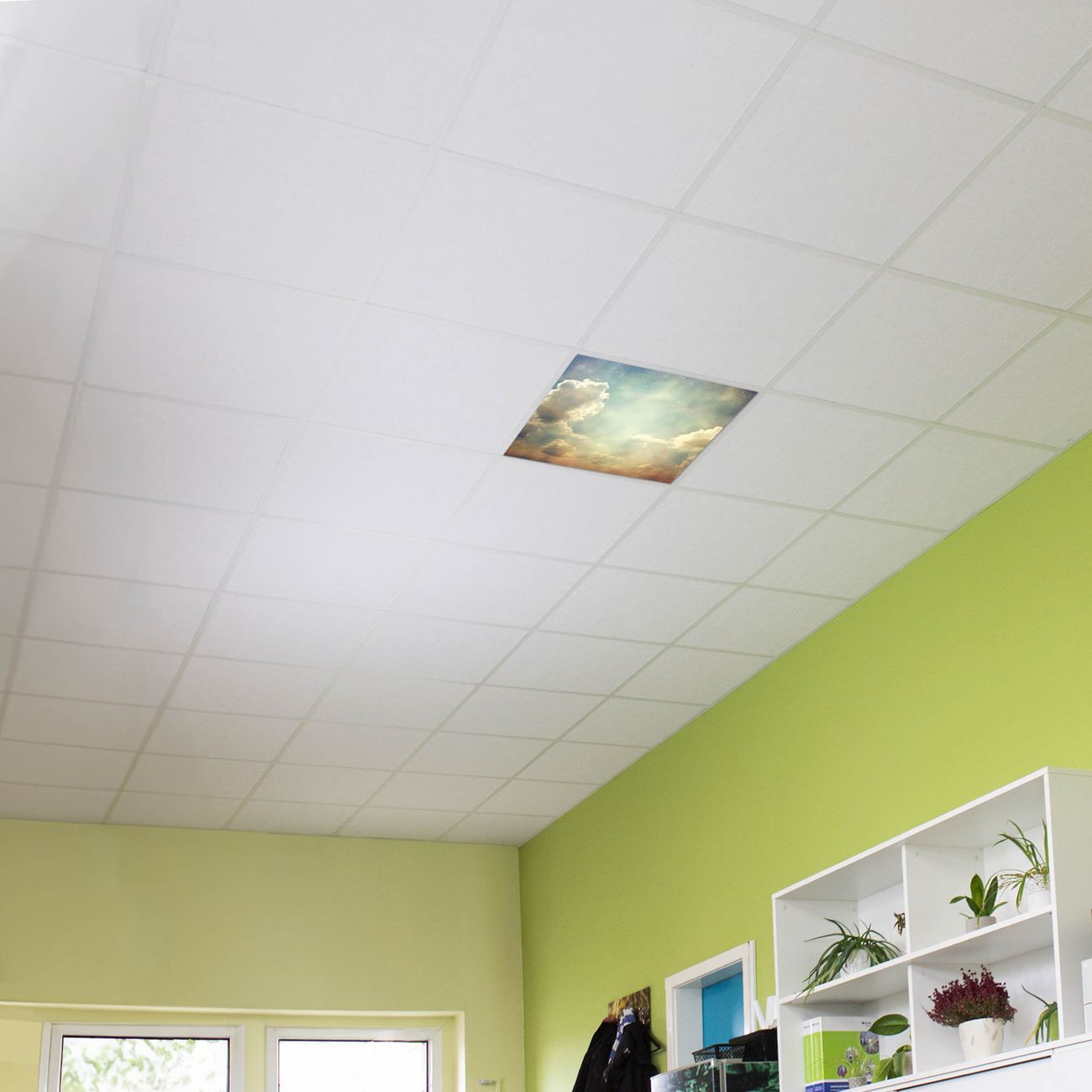 Entdecken Sie unsere vielseitigen Lichtdecken, hier in der Größe 62 x 62cm mit dem Motiv Motiv Himmel Vintage - Ihre Beleuchtungslösung für jede Umgebung Beleuchten Sie Ihren Raum nicht nur, sondern schaffen Sie Atmosphäre! Die banjado Lichtdecke verwandelt jeden Ort, ob zu Hause, in Praxen, Büros oder Studios in eine Wohlfühloase. Unsere einzelnen Elemente haben eine genormte Einheitsgröße von 62 x 62cm und können somit in jede gängige Rasterdecken verbaut werden. So finden Sie Ihre passende Ausführung: Gern helfen wir Ihnen, die passende Ausführung zu wählen. Hierfür muss die aktuelle Gegebenheit Ihrer Decke oder Wand beachtet werden. Haben Sie bereits eine Rasterdecke (auch Odenwalddecke genannt)? Hier bestellen Sie lediglich das Motiv + Beleuchtungspanel, denn beides wird in die bereits vorhandene Decke eingelegt. Haben Sie eine glatte Decke mit Lichtauslass oder möchten die Lichtdecke an der Wand befestigen? Hier bestellen Sie bitte Motiv + Beleuchtungspanel + Deckenbefestigung, eine Aufbauanleitung liegt immer bei. Die Lichtdecke kann sowohl an der Decke als auch an der Wand montiert werden, perfekt für kreative Lichtakzente oder alternative Beleuchtungslösungen. Haben Sie bereits eine Lichtdecke und möchten nur das Motiv wechseln? Hier bestellen Sie bitte nur Motiv, der Wechsel ist denkbar einfach. Der Aufbau Ihrer banjado Lichtdecke gestaltet sich unkompliziert, dank einer verständlichen Anleitung, die Ihnen Schritt für Schritt durch den Montageprozess hilft. Für die endgültige Installation und den sicheren Anschluss empfehlen wir die Hinzuziehung eines Fachmanns, um die optimale Funktion und Sicherheit Ihrer Beleuchtung zu gewährleisten. Falls Sie einen Fachmann für die Installation benötigen, geben Sie uns gern Bescheid, wir vermitteln Ihnen gern einen geeigneten Ansprechpartner aus Ihrer Nähe. Steuerung: Steigern Sie Ihr Beleuchtungserlebnis mit der nahtlosen Integration in Ihr Smart Home. Durch die Kompatibilität mit der SmartLife App, Alexa und Google Assistant wird Ihr Smartphone zur zentralen Steuerungseinheit. Ihr Handy fungiert hierbei sozusagen als Fernbedienung. Legen Sie individuelle Lichtszenen in der App fest, die bei Aktivierung über den Wand-Ein-/Ausschalter immer wieder abgerufen werden können ohne Handy. Mit der Szenenfunktion in der Smart App können Sie die Beleuchtung personalisieren und steuern, sodass sie auf Ihre individuellen Bedürfnisse, Tagesrhythmus und Stimmung zugeschnitten ist. Beispielsweise können Sie sich in der Morgendämmerung durch ein sanftes Licht wecken lassen oder das Licht der Praxis werktags um 7 Uhr automatisch einschalten lassen. Dieses kann dann natürlich auch zu einer bestimmten Zeit automatisch ausgeschaltet werden. Motivwahl: Diese einzigartige Lichtdecke zeichnet sich durch ihre Fähigkeit aus, die Lichtfarbe je nach gewähltem Motiv anzupassen - ein Baum wirft ein sanftes grünes Licht, während eine Wolkendecke Ihren Raum in ein beruhigendes blaues Leuchten hüllt. Berücksichtigen Sie dies bitte bei Ihrer Motivauswahl. Sie können das Motiv jederzeit ohne großen Aufwand austauschen, ob nach Jahreszeit oder anderem Anlass, unsere Auswahl lässt kaum Wünsche offen. Wir fertigen Ihnen gern eine personalisierte Lichtdecke mit einem eigenen Motiv oder Logo oder Foto, schreiben Sie uns jederzeit an. Technische Daten: Das Motiv ist auf einer 4mm starken Acrylglas Scheibe aufgebracht, das Gesamtgewicht Ihrer Ausführung beträgt 2,3kg. Die Farbtemperatur lässt sich frei einstellen von 3000 bis 6000 Kelvin, damit können Sie stufenlos zwischen warmweiß, neutralweiß und kaltweiß wählen. Die Gesamtleistung bei Ihrer gewählten Ausführung beträgt 40W. Der Lichtstrom beträgt 3600 Lumen, die Nennspannung 230 V. Die Lichtdecke ist mit Schutzart IP20 für den Innenbereich konzipiert und sollte nicht im Nassbereich verwendet werden.