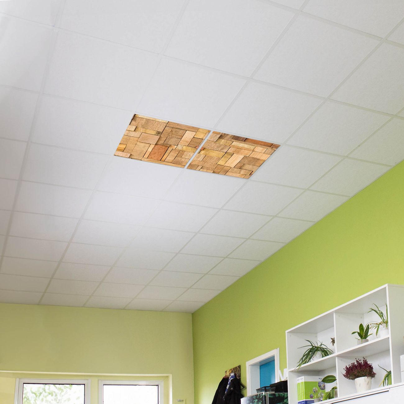 Entdecken Sie unsere vielseitigen Lichtdecken, hier in der Größe 124 x 62cm mit dem Motiv Motiv Hölzernes Flickwerk - Ihre Beleuchtungslösung für jede Umgebung Beleuchten Sie Ihren Raum nicht nur, sondern schaffen Sie Atmosphäre! Die banjado Lichtdecke verwandelt jeden Ort, ob zu Hause, in Praxen, Büros oder Studios in eine Wohlfühloase. Unsere einzelnen Elemente haben eine genormte Einheitsgröße von 62 x 62cm und können somit in jede gängige Rasterdecken verbaut werden. So finden Sie Ihre passende Ausführung: Gern helfen wir Ihnen, die passende Ausführung zu wählen. Hierfür muss die aktuelle Gegebenheit Ihrer Decke oder Wand beachtet werden. Haben Sie bereits eine Rasterdecke (auch Odenwalddecke genannt)? Hier bestellen Sie lediglich das Motiv + Beleuchtungspanel, denn beides wird in die bereits vorhandene Decke eingelegt. Haben Sie eine glatte Decke mit Lichtauslass oder möchten die Lichtdecke an der Wand befestigen? Hier bestellen Sie bitte Motiv + Beleuchtungspanel + Deckenbefestigung, eine Aufbauanleitung liegt immer bei. Die Lichtdecke kann sowohl an der Decke als auch an der Wand montiert werden, perfekt für kreative Lichtakzente oder alternative Beleuchtungslösungen. Haben Sie bereits eine Lichtdecke und möchten nur das Motiv wechseln? Hier bestellen Sie bitte nur Motiv, der Wechsel ist denkbar einfach. Der Aufbau Ihrer banjado Lichtdecke gestaltet sich unkompliziert, dank einer verständlichen Anleitung, die Ihnen Schritt für Schritt durch den Montageprozess hilft. Für die endgültige Installation und den sicheren Anschluss empfehlen wir die Hinzuziehung eines Fachmanns, um die optimale Funktion und Sicherheit Ihrer Beleuchtung zu gewährleisten. Falls Sie einen Fachmann für die Installation benötigen, geben Sie uns gern Bescheid, wir vermitteln Ihnen gern einen geeigneten Ansprechpartner aus Ihrer Nähe. Steuerung: Steigern Sie Ihr Beleuchtungserlebnis mit der nahtlosen Integration in Ihr Smart Home. Durch die Kompatibilität mit der SmartLife App, Alexa und Google Assistant wird Ihr Smartphone zur zentralen Steuerungseinheit. Ihr Handy fungiert hierbei sozusagen als Fernbedienung. Legen Sie individuelle Lichtszenen in der App fest, die bei Aktivierung über den Wand-Ein-/Ausschalter immer wieder abgerufen werden können ohne Handy. Mit der Szenenfunktion in der Smart App können Sie die Beleuchtung personalisieren und steuern, sodass sie auf Ihre individuellen Bedürfnisse, Tagesrhythmus und Stimmung zugeschnitten ist. Beispielsweise können Sie sich in der Morgendämmerung durch ein sanftes Licht wecken lassen oder das Licht der Praxis werktags um 7 Uhr automatisch einschalten lassen. Dieses kann dann natürlich auch zu einer bestimmten Zeit automatisch ausgeschaltet werden. Motivwahl: Diese einzigartige Lichtdecke zeichnet sich durch ihre Fähigkeit aus, die Lichtfarbe je nach gewähltem Motiv anzupassen - ein Baum wirft ein sanftes grünes Licht, während eine Wolkendecke Ihren Raum in ein beruhigendes blaues Leuchten hüllt. Berücksichtigen Sie dies bitte bei Ihrer Motivauswahl. Sie können das Motiv jederzeit ohne großen Aufwand austauschen, ob nach Jahreszeit oder anderem Anlass, unsere Auswahl lässt kaum Wünsche offen. Wir fertigen Ihnen gern eine personalisierte Lichtdecke mit einem eigenen Motiv oder Logo oder Foto, schreiben Sie uns jederzeit an. Technische Daten: Das Motiv ist auf einer 4mm starken Acrylglas Scheibe aufgebracht, das Gesamtgewicht Ihrer Ausführung beträgt 4,5kg. Die Farbtemperatur lässt sich frei einstellen von 3000 bis 6000 Kelvin, damit können Sie stufenlos zwischen warmweiß, neutralweiß und kaltweiß wählen. Die Gesamtleistung bei Ihrer gewählten Ausführung beträgt 80W. Der Lichtstrom beträgt 3600 Lumen, die Nennspannung 230 V. Die Lichtdecke ist mit Schutzart IP20 für den Innenbereich konzipiert und sollte nicht im Nassbereich verwendet werden.
