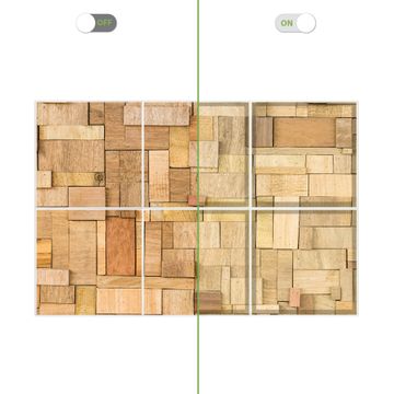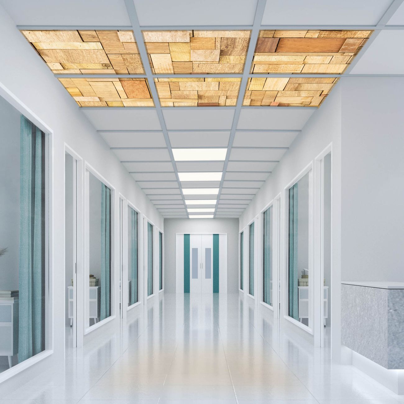 Entdecken Sie unsere vielseitigen Lichtdecken, hier in der Größe 186 x 124cm mit dem Motiv Motiv Hölzernes Flickwerk - Ihre Beleuchtungslösung für jede Umgebung Beleuchten Sie Ihren Raum nicht nur, sondern schaffen Sie Atmosphäre! Die banjado Lichtdecke verwandelt jeden Ort, ob zu Hause, in Praxen, Büros oder Studios in eine Wohlfühloase. Unsere einzelnen Elemente haben eine genormte Einheitsgröße von 62 x 62cm und können somit in jede gängige Rasterdecken verbaut werden. So finden Sie Ihre passende Ausführung: Gern helfen wir Ihnen, die passende Ausführung zu wählen. Hierfür muss die aktuelle Gegebenheit Ihrer Decke oder Wand beachtet werden. Haben Sie bereits eine Rasterdecke (auch Odenwalddecke genannt)? Hier bestellen Sie lediglich das Motiv + Beleuchtungspanel, denn beides wird in die bereits vorhandene Decke eingelegt. Haben Sie eine glatte Decke mit Lichtauslass oder möchten die Lichtdecke an der Wand befestigen? Hier bestellen Sie bitte Motiv + Beleuchtungspanel + Deckenbefestigung, eine Aufbauanleitung liegt immer bei. Die Lichtdecke kann sowohl an der Decke als auch an der Wand montiert werden, perfekt für kreative Lichtakzente oder alternative Beleuchtungslösungen. Haben Sie bereits eine Lichtdecke und möchten nur das Motiv wechseln? Hier bestellen Sie bitte nur Motiv, der Wechsel ist denkbar einfach. Der Aufbau Ihrer banjado Lichtdecke gestaltet sich unkompliziert, dank einer verständlichen Anleitung, die Ihnen Schritt für Schritt durch den Montageprozess hilft. Für die endgültige Installation und den sicheren Anschluss empfehlen wir die Hinzuziehung eines Fachmanns, um die optimale Funktion und Sicherheit Ihrer Beleuchtung zu gewährleisten. Falls Sie einen Fachmann für die Installation benötigen, geben Sie uns gern Bescheid, wir vermitteln Ihnen gern einen geeigneten Ansprechpartner aus Ihrer Nähe. Steuerung: Steigern Sie Ihr Beleuchtungserlebnis mit der nahtlosen Integration in Ihr Smart Home. Durch die Kompatibilität mit der SmartLife App, Alexa und Google Assistant wird Ihr Smartphone zur zentralen Steuerungseinheit. Ihr Handy fungiert hierbei sozusagen als Fernbedienung. Legen Sie individuelle Lichtszenen in der App fest, die bei Aktivierung über den Wand-Ein-/Ausschalter immer wieder abgerufen werden können ohne Handy. Mit der Szenenfunktion in der Smart App können Sie die Beleuchtung personalisieren und steuern, sodass sie auf Ihre individuellen Bedürfnisse, Tagesrhythmus und Stimmung zugeschnitten ist. Beispielsweise können Sie sich in der Morgendämmerung durch ein sanftes Licht wecken lassen oder das Licht der Praxis werktags um 7 Uhr automatisch einschalten lassen. Dieses kann dann natürlich auch zu einer bestimmten Zeit automatisch ausgeschaltet werden. Motivwahl: Diese einzigartige Lichtdecke zeichnet sich durch ihre Fähigkeit aus, die Lichtfarbe je nach gewähltem Motiv anzupassen - ein Baum wirft ein sanftes grünes Licht, während eine Wolkendecke Ihren Raum in ein beruhigendes blaues Leuchten hüllt. Berücksichtigen Sie dies bitte bei Ihrer Motivauswahl. Sie können das Motiv jederzeit ohne großen Aufwand austauschen, ob nach Jahreszeit oder anderem Anlass, unsere Auswahl lässt kaum Wünsche offen. Wir fertigen Ihnen gern eine personalisierte Lichtdecke mit einem eigenen Motiv oder Logo oder Foto, schreiben Sie uns jederzeit an. Technische Daten: Das Motiv ist auf einer 4mm starken Acrylglas Scheibe aufgebracht, das Gesamtgewicht Ihrer Ausführung beträgt 26,6kg. Die Farbtemperatur lässt sich frei einstellen von 3000 bis 6000 Kelvin, damit können Sie stufenlos zwischen warmweiß, neutralweiß und kaltweiß wählen. Die Gesamtleistung bei Ihrer gewählten Ausführung beträgt 240W. Der Lichtstrom beträgt 3600 Lumen, die Nennspannung 230 V. Die Lichtdecke ist mit Schutzart IP20 für den Innenbereich konzipiert und sollte nicht im Nassbereich verwendet werden.
