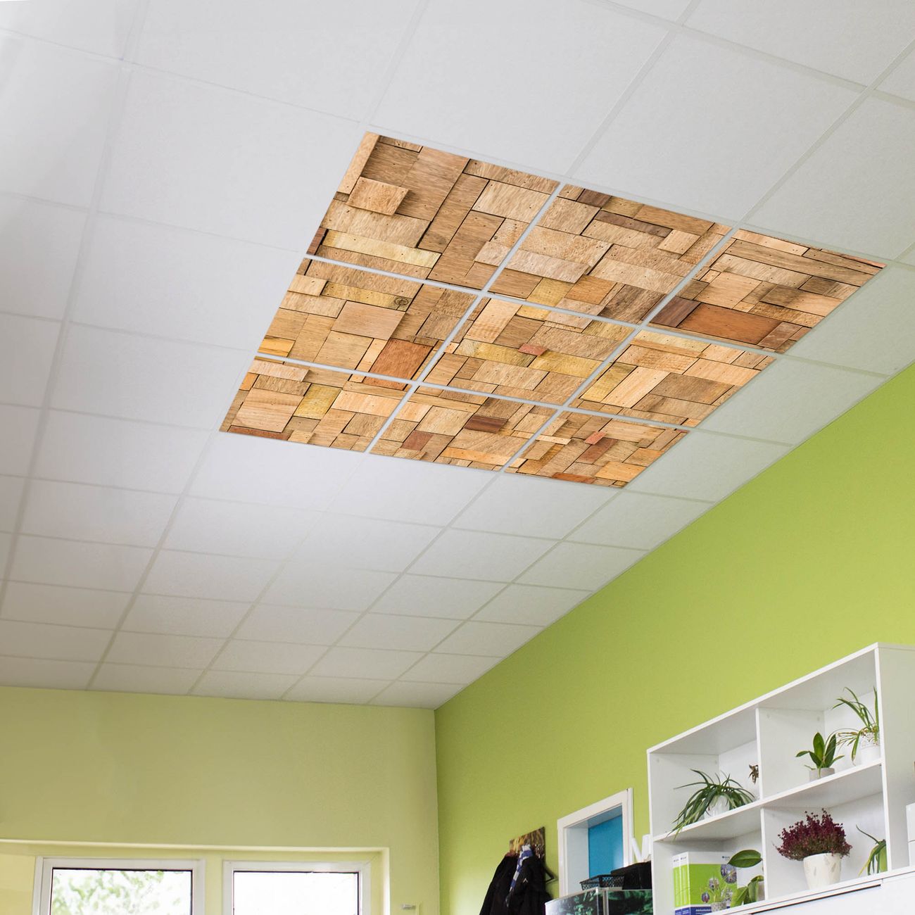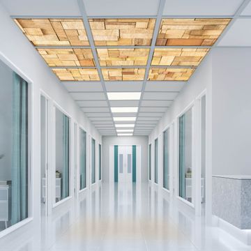 Entdecken Sie unsere vielseitigen Lichtdecken, hier in der Größe 186 x 186cm mit dem Motiv Motiv Hölzernes Flickwerk - Ihre Beleuchtungslösung für jede Umgebung Beleuchten Sie Ihren Raum nicht nur, sondern schaffen Sie Atmosphäre! Die banjado Lichtdecke verwandelt jeden Ort, ob zu Hause, in Praxen, Büros oder Studios in eine Wohlfühloase. Unsere einzelnen Elemente haben eine genormte Einheitsgröße von 62 x 62cm und können somit in jede gängige Rasterdecken verbaut werden. So finden Sie Ihre passende Ausführung: Gern helfen wir Ihnen, die passende Ausführung zu wählen. Hierfür muss die aktuelle Gegebenheit Ihrer Decke oder Wand beachtet werden. Haben Sie bereits eine Rasterdecke (auch Odenwalddecke genannt)? Hier bestellen Sie lediglich das Motiv + Beleuchtungspanel, denn beides wird in die bereits vorhandene Decke eingelegt. Haben Sie eine glatte Decke mit Lichtauslass oder möchten die Lichtdecke an der Wand befestigen? Hier bestellen Sie bitte Motiv + Beleuchtungspanel + Deckenbefestigung, eine Aufbauanleitung liegt immer bei. Die Lichtdecke kann sowohl an der Decke als auch an der Wand montiert werden, perfekt für kreative Lichtakzente oder alternative Beleuchtungslösungen. Haben Sie bereits eine Lichtdecke und möchten nur das Motiv wechseln? Hier bestellen Sie bitte nur Motiv, der Wechsel ist denkbar einfach. Der Aufbau Ihrer banjado Lichtdecke gestaltet sich unkompliziert, dank einer verständlichen Anleitung, die Ihnen Schritt für Schritt durch den Montageprozess hilft. Für die endgültige Installation und den sicheren Anschluss empfehlen wir die Hinzuziehung eines Fachmanns, um die optimale Funktion und Sicherheit Ihrer Beleuchtung zu gewährleisten. Falls Sie einen Fachmann für die Installation benötigen, geben Sie uns gern Bescheid, wir vermitteln Ihnen gern einen geeigneten Ansprechpartner aus Ihrer Nähe. Steuerung: Steigern Sie Ihr Beleuchtungserlebnis mit der nahtlosen Integration in Ihr Smart Home. Durch die Kompatibilität mit der SmartLife App, Alexa und Google Assistant wird Ihr Smartphone zur zentralen Steuerungseinheit. Ihr Handy fungiert hierbei sozusagen als Fernbedienung. Legen Sie individuelle Lichtszenen in der App fest, die bei Aktivierung über den Wand-Ein-/Ausschalter immer wieder abgerufen werden können ohne Handy. Mit der Szenenfunktion in der Smart App können Sie die Beleuchtung personalisieren und steuern, sodass sie auf Ihre individuellen Bedürfnisse, Tagesrhythmus und Stimmung zugeschnitten ist. Beispielsweise können Sie sich in der Morgendämmerung durch ein sanftes Licht wecken lassen oder das Licht der Praxis werktags um 7 Uhr automatisch einschalten lassen. Dieses kann dann natürlich auch zu einer bestimmten Zeit automatisch ausgeschaltet werden. Motivwahl: Diese einzigartige Lichtdecke zeichnet sich durch ihre Fähigkeit aus, die Lichtfarbe je nach gewähltem Motiv anzupassen - ein Baum wirft ein sanftes grünes Licht, während eine Wolkendecke Ihren Raum in ein beruhigendes blaues Leuchten hüllt. Berücksichtigen Sie dies bitte bei Ihrer Motivauswahl. Sie können das Motiv jederzeit ohne großen Aufwand austauschen, ob nach Jahreszeit oder anderem Anlass, unsere Auswahl lässt kaum Wünsche offen. Wir fertigen Ihnen gern eine personalisierte Lichtdecke mit einem eigenen Motiv oder Logo oder Foto, schreiben Sie uns jederzeit an. Technische Daten: Das Motiv ist auf einer 4mm starken Acrylglas Scheibe aufgebracht, das Gesamtgewicht Ihrer Ausführung beträgt 20,4kg. Die Farbtemperatur lässt sich frei einstellen von 3000 bis 6000 Kelvin, damit können Sie stufenlos zwischen warmweiß, neutralweiß und kaltweiß wählen. Die Gesamtleistung bei Ihrer gewählten Ausführung beträgt 360W. Der Lichtstrom beträgt 3600 Lumen, die Nennspannung 230 V. Die Lichtdecke ist mit Schutzart IP20 für den Innenbereich konzipiert und sollte nicht im Nassbereich verwendet werden.