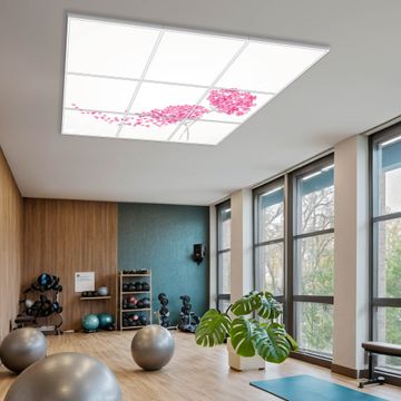 Entdecken Sie unsere vielseitigen Lichtdecken, hier in der Größe 186 x 186cm mit dem Motiv Motiv Holunder Pink - Ihre Beleuchtungslösung für jede Umgebung Beleuchten Sie Ihren Raum nicht nur, sondern schaffen Sie Atmosphäre! Die banjado Lichtdecke verwandelt jeden Ort, ob zu Hause, in Praxen, Büros oder Studios in eine Wohlfühloase. Unsere einzelnen Elemente haben eine genormte Einheitsgröße von 62 x 62cm und können somit in jede gängige Rasterdecken verbaut werden. So finden Sie Ihre passende Ausführung: Gern helfen wir Ihnen, die passende Ausführung zu wählen. Hierfür muss die aktuelle Gegebenheit Ihrer Decke oder Wand beachtet werden. Haben Sie bereits eine Rasterdecke (auch Odenwalddecke genannt)? Hier bestellen Sie lediglich das Motiv + Beleuchtungspanel, denn beides wird in die bereits vorhandene Decke eingelegt. Haben Sie eine glatte Decke mit Lichtauslass oder möchten die Lichtdecke an der Wand befestigen? Hier bestellen Sie bitte Motiv + Beleuchtungspanel + Deckenbefestigung, eine Aufbauanleitung liegt immer bei. Die Lichtdecke kann sowohl an der Decke als auch an der Wand montiert werden, perfekt für kreative Lichtakzente oder alternative Beleuchtungslösungen. Haben Sie bereits eine Lichtdecke und möchten nur das Motiv wechseln? Hier bestellen Sie bitte nur Motiv, der Wechsel ist denkbar einfach. Der Aufbau Ihrer banjado Lichtdecke gestaltet sich unkompliziert, dank einer verständlichen Anleitung, die Ihnen Schritt für Schritt durch den Montageprozess hilft. Für die endgültige Installation und den sicheren Anschluss empfehlen wir die Hinzuziehung eines Fachmanns, um die optimale Funktion und Sicherheit Ihrer Beleuchtung zu gewährleisten. Falls Sie einen Fachmann für die Installation benötigen, geben Sie uns gern Bescheid, wir vermitteln Ihnen gern einen geeigneten Ansprechpartner aus Ihrer Nähe. Steuerung: Steigern Sie Ihr Beleuchtungserlebnis mit der nahtlosen Integration in Ihr Smart Home. Durch die Kompatibilität mit der SmartLife App, Alexa und Google Assistant wird Ihr Smartphone zur zentralen Steuerungseinheit. Ihr Handy fungiert hierbei sozusagen als Fernbedienung. Legen Sie individuelle Lichtszenen in der App fest, die bei Aktivierung über den Wand-Ein-/Ausschalter immer wieder abgerufen werden können ohne Handy. Mit der Szenenfunktion in der Smart App können Sie die Beleuchtung personalisieren und steuern, sodass sie auf Ihre individuellen Bedürfnisse, Tagesrhythmus und Stimmung zugeschnitten ist. Beispielsweise können Sie sich in der Morgendämmerung durch ein sanftes Licht wecken lassen oder das Licht der Praxis werktags um 7 Uhr automatisch einschalten lassen. Dieses kann dann natürlich auch zu einer bestimmten Zeit automatisch ausgeschaltet werden. Motivwahl: Diese einzigartige Lichtdecke zeichnet sich durch ihre Fähigkeit aus, die Lichtfarbe je nach gewähltem Motiv anzupassen - ein Baum wirft ein sanftes grünes Licht, während eine Wolkendecke Ihren Raum in ein beruhigendes blaues Leuchten hüllt. Berücksichtigen Sie dies bitte bei Ihrer Motivauswahl. Sie können das Motiv jederzeit ohne großen Aufwand austauschen, ob nach Jahreszeit oder anderem Anlass, unsere Auswahl lässt kaum Wünsche offen. Wir fertigen Ihnen gern eine personalisierte Lichtdecke mit einem eigenen Motiv oder Logo oder Foto, schreiben Sie uns jederzeit an. Technische Daten: Das Motiv ist auf einer 4mm starken Acrylglas Scheibe aufgebracht, das Gesamtgewicht Ihrer Ausführung beträgt 44,4kg. Die Farbtemperatur lässt sich frei einstellen von 3000 bis 6000 Kelvin, damit können Sie stufenlos zwischen warmweiß, neutralweiß und kaltweiß wählen. Die Gesamtleistung bei Ihrer gewählten Ausführung beträgt 360W. Der Lichtstrom beträgt 3600 Lumen, die Nennspannung 230 V. Die Lichtdecke ist mit Schutzart IP20 für den Innenbereich konzipiert und sollte nicht im Nassbereich verwendet werden.