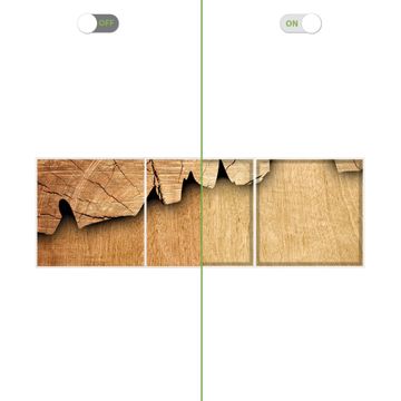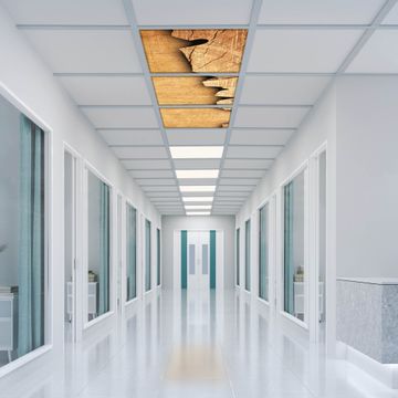 Entdecken Sie unsere vielseitigen Lichtdecken, hier in der Größe 186 x 62cm mit dem Motiv Motiv Holz - Ihre Beleuchtungslösung für jede Umgebung Beleuchten Sie Ihren Raum nicht nur, sondern schaffen Sie Atmosphäre! Die banjado Lichtdecke verwandelt jeden Ort, ob zu Hause, in Praxen, Büros oder Studios in eine Wohlfühloase. Unsere einzelnen Elemente haben eine genormte Einheitsgröße von 62 x 62cm und können somit in jede gängige Rasterdecken verbaut werden. So finden Sie Ihre passende Ausführung: Gern helfen wir Ihnen, die passende Ausführung zu wählen. Hierfür muss die aktuelle Gegebenheit Ihrer Decke oder Wand beachtet werden. Haben Sie bereits eine Rasterdecke (auch Odenwalddecke genannt)? Hier bestellen Sie lediglich das Motiv + Beleuchtungspanel, denn beides wird in die bereits vorhandene Decke eingelegt. Haben Sie eine glatte Decke mit Lichtauslass oder möchten die Lichtdecke an der Wand befestigen? Hier bestellen Sie bitte Motiv + Beleuchtungspanel + Deckenbefestigung, eine Aufbauanleitung liegt immer bei. Die Lichtdecke kann sowohl an der Decke als auch an der Wand montiert werden, perfekt für kreative Lichtakzente oder alternative Beleuchtungslösungen. Haben Sie bereits eine Lichtdecke und möchten nur das Motiv wechseln? Hier bestellen Sie bitte nur Motiv, der Wechsel ist denkbar einfach. Der Aufbau Ihrer banjado Lichtdecke gestaltet sich unkompliziert, dank einer verständlichen Anleitung, die Ihnen Schritt für Schritt durch den Montageprozess hilft. Für die endgültige Installation und den sicheren Anschluss empfehlen wir die Hinzuziehung eines Fachmanns, um die optimale Funktion und Sicherheit Ihrer Beleuchtung zu gewährleisten. Falls Sie einen Fachmann für die Installation benötigen, geben Sie uns gern Bescheid, wir vermitteln Ihnen gern einen geeigneten Ansprechpartner aus Ihrer Nähe. Steuerung: Steigern Sie Ihr Beleuchtungserlebnis mit der nahtlosen Integration in Ihr Smart Home. Durch die Kompatibilität mit der SmartLife App, Alexa und Google Assistant wird Ihr Smartphone zur zentralen Steuerungseinheit. Ihr Handy fungiert hierbei sozusagen als Fernbedienung. Legen Sie individuelle Lichtszenen in der App fest, die bei Aktivierung über den Wand-Ein-/Ausschalter immer wieder abgerufen werden können ohne Handy. Mit der Szenenfunktion in der Smart App können Sie die Beleuchtung personalisieren und steuern, sodass sie auf Ihre individuellen Bedürfnisse, Tagesrhythmus und Stimmung zugeschnitten ist. Beispielsweise können Sie sich in der Morgendämmerung durch ein sanftes Licht wecken lassen oder das Licht der Praxis werktags um 7 Uhr automatisch einschalten lassen. Dieses kann dann natürlich auch zu einer bestimmten Zeit automatisch ausgeschaltet werden. Motivwahl: Diese einzigartige Lichtdecke zeichnet sich durch ihre Fähigkeit aus, die Lichtfarbe je nach gewähltem Motiv anzupassen - ein Baum wirft ein sanftes grünes Licht, während eine Wolkendecke Ihren Raum in ein beruhigendes blaues Leuchten hüllt. Berücksichtigen Sie dies bitte bei Ihrer Motivauswahl. Sie können das Motiv jederzeit ohne großen Aufwand austauschen, ob nach Jahreszeit oder anderem Anlass, unsere Auswahl lässt kaum Wünsche offen. Wir fertigen Ihnen gern eine personalisierte Lichtdecke mit einem eigenen Motiv oder Logo oder Foto, schreiben Sie uns jederzeit an. Technische Daten: Das Motiv ist auf einer 4mm starken Acrylglas Scheibe aufgebracht, das Gesamtgewicht Ihrer Ausführung beträgt 13,3kg. Die Farbtemperatur lässt sich frei einstellen von 3000 bis 6000 Kelvin, damit können Sie stufenlos zwischen warmweiß, neutralweiß und kaltweiß wählen. Die Gesamtleistung bei Ihrer gewählten Ausführung beträgt 120W. Der Lichtstrom beträgt 3600 Lumen, die Nennspannung 230 V. Die Lichtdecke ist mit Schutzart IP20 für den Innenbereich konzipiert und sollte nicht im Nassbereich verwendet werden.