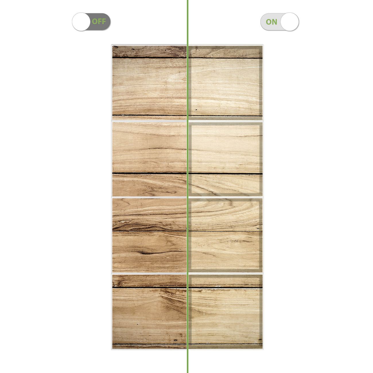 Entdecken Sie unsere vielseitigen Lichtdecken, hier in der Größe 124 x 248cm mit dem Motiv Motiv Holzplanken - Ihre Beleuchtungslösung für jede Umgebung Beleuchten Sie Ihren Raum nicht nur, sondern schaffen Sie Atmosphäre! Die banjado Lichtdecke verwandelt jeden Ort, ob zu Hause, in Praxen, Büros oder Studios in eine Wohlfühloase. Unsere einzelnen Elemente haben eine genormte Einheitsgröße von 62 x 62cm und können somit in jede gängige Rasterdecken verbaut werden. So finden Sie Ihre passende Ausführung: Gern helfen wir Ihnen, die passende Ausführung zu wählen. Hierfür muss die aktuelle Gegebenheit Ihrer Decke oder Wand beachtet werden. Haben Sie bereits eine Rasterdecke (auch Odenwalddecke genannt)? Hier bestellen Sie lediglich das Motiv + Beleuchtungspanel, denn beides wird in die bereits vorhandene Decke eingelegt. Haben Sie eine glatte Decke mit Lichtauslass oder möchten die Lichtdecke an der Wand befestigen? Hier bestellen Sie bitte Motiv + Beleuchtungspanel + Deckenbefestigung, eine Aufbauanleitung liegt immer bei. Die Lichtdecke kann sowohl an der Decke als auch an der Wand montiert werden, perfekt für kreative Lichtakzente oder alternative Beleuchtungslösungen. Haben Sie bereits eine Lichtdecke und möchten nur das Motiv wechseln? Hier bestellen Sie bitte nur Motiv, der Wechsel ist denkbar einfach. Der Aufbau Ihrer banjado Lichtdecke gestaltet sich unkompliziert, dank einer verständlichen Anleitung, die Ihnen Schritt für Schritt durch den Montageprozess hilft. Für die endgültige Installation und den sicheren Anschluss empfehlen wir die Hinzuziehung eines Fachmanns, um die optimale Funktion und Sicherheit Ihrer Beleuchtung zu gewährleisten. Falls Sie einen Fachmann für die Installation benötigen, geben Sie uns gern Bescheid, wir vermitteln Ihnen gern einen geeigneten Ansprechpartner aus Ihrer Nähe. Steuerung: Steigern Sie Ihr Beleuchtungserlebnis mit der nahtlosen Integration in Ihr Smart Home. Durch die Kompatibilität mit der SmartLife App, Alexa und Google Assistant wird Ihr Smartphone zur zentralen Steuerungseinheit. Ihr Handy fungiert hierbei sozusagen als Fernbedienung. Legen Sie individuelle Lichtszenen in der App fest, die bei Aktivierung über den Wand-Ein-/Ausschalter immer wieder abgerufen werden können ohne Handy. Mit der Szenenfunktion in der Smart App können Sie die Beleuchtung personalisieren und steuern, sodass sie auf Ihre individuellen Bedürfnisse, Tagesrhythmus und Stimmung zugeschnitten ist. Beispielsweise können Sie sich in der Morgendämmerung durch ein sanftes Licht wecken lassen oder das Licht der Praxis werktags um 7 Uhr automatisch einschalten lassen. Dieses kann dann natürlich auch zu einer bestimmten Zeit automatisch ausgeschaltet werden. Motivwahl: Diese einzigartige Lichtdecke zeichnet sich durch ihre Fähigkeit aus, die Lichtfarbe je nach gewähltem Motiv anzupassen - ein Baum wirft ein sanftes grünes Licht, während eine Wolkendecke Ihren Raum in ein beruhigendes blaues Leuchten hüllt. Berücksichtigen Sie dies bitte bei Ihrer Motivauswahl. Sie können das Motiv jederzeit ohne großen Aufwand austauschen, ob nach Jahreszeit oder anderem Anlass, unsere Auswahl lässt kaum Wünsche offen. Wir fertigen Ihnen gern eine personalisierte Lichtdecke mit einem eigenen Motiv oder Logo oder Foto, schreiben Sie uns jederzeit an. Technische Daten: Das Motiv ist auf einer 4mm starken Acrylglas Scheibe aufgebracht, das Gesamtgewicht Ihrer Ausführung beträgt 39,4kg. Die Farbtemperatur lässt sich frei einstellen von 3000 bis 6000 Kelvin, damit können Sie stufenlos zwischen warmweiß, neutralweiß und kaltweiß wählen. Die Gesamtleistung bei Ihrer gewählten Ausführung beträgt 320W. Der Lichtstrom beträgt 3600 Lumen, die Nennspannung 230 V. Die Lichtdecke ist mit Schutzart IP20 für den Innenbereich konzipiert und sollte nicht im Nassbereich verwendet werden.
