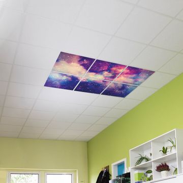 Entdecken Sie unsere vielseitigen Lichtdecken, hier in der Größe 186 x 124cm mit dem Motiv Motiv Im Weltall 1 - Ihre Beleuchtungslösung für jede Umgebung Beleuchten Sie Ihren Raum nicht nur, sondern schaffen Sie Atmosphäre! Die banjado Lichtdecke verwandelt jeden Ort, ob zu Hause, in Praxen, Büros oder Studios in eine Wohlfühloase. Unsere einzelnen Elemente haben eine genormte Einheitsgröße von 62 x 62cm und können somit in jede gängige Rasterdecken verbaut werden. So finden Sie Ihre passende Ausführung: Gern helfen wir Ihnen, die passende Ausführung zu wählen. Hierfür muss die aktuelle Gegebenheit Ihrer Decke oder Wand beachtet werden. Haben Sie bereits eine Rasterdecke (auch Odenwalddecke genannt)? Hier bestellen Sie lediglich das Motiv + Beleuchtungspanel, denn beides wird in die bereits vorhandene Decke eingelegt. Haben Sie eine glatte Decke mit Lichtauslass oder möchten die Lichtdecke an der Wand befestigen? Hier bestellen Sie bitte Motiv + Beleuchtungspanel + Deckenbefestigung, eine Aufbauanleitung liegt immer bei. Die Lichtdecke kann sowohl an der Decke als auch an der Wand montiert werden, perfekt für kreative Lichtakzente oder alternative Beleuchtungslösungen. Haben Sie bereits eine Lichtdecke und möchten nur das Motiv wechseln? Hier bestellen Sie bitte nur Motiv, der Wechsel ist denkbar einfach. Der Aufbau Ihrer banjado Lichtdecke gestaltet sich unkompliziert, dank einer verständlichen Anleitung, die Ihnen Schritt für Schritt durch den Montageprozess hilft. Für die endgültige Installation und den sicheren Anschluss empfehlen wir die Hinzuziehung eines Fachmanns, um die optimale Funktion und Sicherheit Ihrer Beleuchtung zu gewährleisten. Falls Sie einen Fachmann für die Installation benötigen, geben Sie uns gern Bescheid, wir vermitteln Ihnen gern einen geeigneten Ansprechpartner aus Ihrer Nähe. Steuerung: Steigern Sie Ihr Beleuchtungserlebnis mit der nahtlosen Integration in Ihr Smart Home. Durch die Kompatibilität mit der SmartLife App, Alexa und Google Assistant wird Ihr Smartphone zur zentralen Steuerungseinheit. Ihr Handy fungiert hierbei sozusagen als Fernbedienung. Legen Sie individuelle Lichtszenen in der App fest, die bei Aktivierung über den Wand-Ein-/Ausschalter immer wieder abgerufen werden können ohne Handy. Mit der Szenenfunktion in der Smart App können Sie die Beleuchtung personalisieren und steuern, sodass sie auf Ihre individuellen Bedürfnisse, Tagesrhythmus und Stimmung zugeschnitten ist. Beispielsweise können Sie sich in der Morgendämmerung durch ein sanftes Licht wecken lassen oder das Licht der Praxis werktags um 7 Uhr automatisch einschalten lassen. Dieses kann dann natürlich auch zu einer bestimmten Zeit automatisch ausgeschaltet werden. Motivwahl: Diese einzigartige Lichtdecke zeichnet sich durch ihre Fähigkeit aus, die Lichtfarbe je nach gewähltem Motiv anzupassen - ein Baum wirft ein sanftes grünes Licht, während eine Wolkendecke Ihren Raum in ein beruhigendes blaues Leuchten hüllt. Berücksichtigen Sie dies bitte bei Ihrer Motivauswahl. Sie können das Motiv jederzeit ohne großen Aufwand austauschen, ob nach Jahreszeit oder anderem Anlass, unsere Auswahl lässt kaum Wünsche offen. Wir fertigen Ihnen gern eine personalisierte Lichtdecke mit einem eigenen Motiv oder Logo oder Foto, schreiben Sie uns jederzeit an. Technische Daten: Das Motiv ist auf einer 4mm starken Acrylglas Scheibe aufgebracht, das Gesamtgewicht Ihrer Ausführung beträgt 26,6kg. Die Farbtemperatur lässt sich frei einstellen von 3000 bis 6000 Kelvin, damit können Sie stufenlos zwischen warmweiß, neutralweiß und kaltweiß wählen. Die Gesamtleistung bei Ihrer gewählten Ausführung beträgt 240W. Der Lichtstrom beträgt 3600 Lumen, die Nennspannung 230 V. Die Lichtdecke ist mit Schutzart IP20 für den Innenbereich konzipiert und sollte nicht im Nassbereich verwendet werden.
