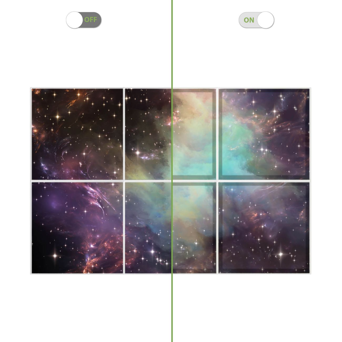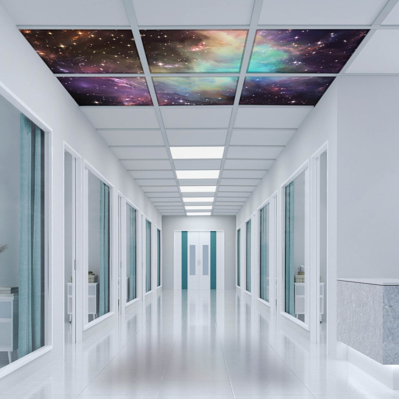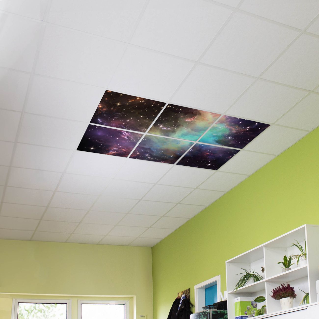 Entdecken Sie unsere vielseitigen Lichtdecken, hier in der Größe 186 x 124cm mit dem Motiv Motiv Im Weltall 2 - Ihre Beleuchtungslösung für jede Umgebung Beleuchten Sie Ihren Raum nicht nur, sondern schaffen Sie Atmosphäre! Die banjado Lichtdecke verwandelt jeden Ort, ob zu Hause, in Praxen, Büros oder Studios in eine Wohlfühloase. Unsere einzelnen Elemente haben eine genormte Einheitsgröße von 62 x 62cm und können somit in jede gängige Rasterdecken verbaut werden. So finden Sie Ihre passende Ausführung: Gern helfen wir Ihnen, die passende Ausführung zu wählen. Hierfür muss die aktuelle Gegebenheit Ihrer Decke oder Wand beachtet werden. Haben Sie bereits eine Rasterdecke (auch Odenwalddecke genannt)? Hier bestellen Sie lediglich das Motiv + Beleuchtungspanel, denn beides wird in die bereits vorhandene Decke eingelegt. Haben Sie eine glatte Decke mit Lichtauslass oder möchten die Lichtdecke an der Wand befestigen? Hier bestellen Sie bitte Motiv + Beleuchtungspanel + Deckenbefestigung, eine Aufbauanleitung liegt immer bei. Die Lichtdecke kann sowohl an der Decke als auch an der Wand montiert werden, perfekt für kreative Lichtakzente oder alternative Beleuchtungslösungen. Haben Sie bereits eine Lichtdecke und möchten nur das Motiv wechseln? Hier bestellen Sie bitte nur Motiv, der Wechsel ist denkbar einfach. Der Aufbau Ihrer banjado Lichtdecke gestaltet sich unkompliziert, dank einer verständlichen Anleitung, die Ihnen Schritt für Schritt durch den Montageprozess hilft. Für die endgültige Installation und den sicheren Anschluss empfehlen wir die Hinzuziehung eines Fachmanns, um die optimale Funktion und Sicherheit Ihrer Beleuchtung zu gewährleisten. Falls Sie einen Fachmann für die Installation benötigen, geben Sie uns gern Bescheid, wir vermitteln Ihnen gern einen geeigneten Ansprechpartner aus Ihrer Nähe. Steuerung: Steigern Sie Ihr Beleuchtungserlebnis mit der nahtlosen Integration in Ihr Smart Home. Durch die Kompatibilität mit der SmartLife App, Alexa und Google Assistant wird Ihr Smartphone zur zentralen Steuerungseinheit. Ihr Handy fungiert hierbei sozusagen als Fernbedienung. Legen Sie individuelle Lichtszenen in der App fest, die bei Aktivierung über den Wand-Ein-/Ausschalter immer wieder abgerufen werden können ohne Handy. Mit der Szenenfunktion in der Smart App können Sie die Beleuchtung personalisieren und steuern, sodass sie auf Ihre individuellen Bedürfnisse, Tagesrhythmus und Stimmung zugeschnitten ist. Beispielsweise können Sie sich in der Morgendämmerung durch ein sanftes Licht wecken lassen oder das Licht der Praxis werktags um 7 Uhr automatisch einschalten lassen. Dieses kann dann natürlich auch zu einer bestimmten Zeit automatisch ausgeschaltet werden. Motivwahl: Diese einzigartige Lichtdecke zeichnet sich durch ihre Fähigkeit aus, die Lichtfarbe je nach gewähltem Motiv anzupassen - ein Baum wirft ein sanftes grünes Licht, während eine Wolkendecke Ihren Raum in ein beruhigendes blaues Leuchten hüllt. Berücksichtigen Sie dies bitte bei Ihrer Motivauswahl. Sie können das Motiv jederzeit ohne großen Aufwand austauschen, ob nach Jahreszeit oder anderem Anlass, unsere Auswahl lässt kaum Wünsche offen. Wir fertigen Ihnen gern eine personalisierte Lichtdecke mit einem eigenen Motiv oder Logo oder Foto, schreiben Sie uns jederzeit an. Technische Daten: Das Motiv ist auf einer 4mm starken Acrylglas Scheibe aufgebracht, das Gesamtgewicht Ihrer Ausführung beträgt 13,6kg. Die Farbtemperatur lässt sich frei einstellen von 3000 bis 6000 Kelvin, damit können Sie stufenlos zwischen warmweiß, neutralweiß und kaltweiß wählen. Die Gesamtleistung bei Ihrer gewählten Ausführung beträgt 240W. Der Lichtstrom beträgt 3600 Lumen, die Nennspannung 230 V. Die Lichtdecke ist mit Schutzart IP20 für den Innenbereich konzipiert und sollte nicht im Nassbereich verwendet werden.