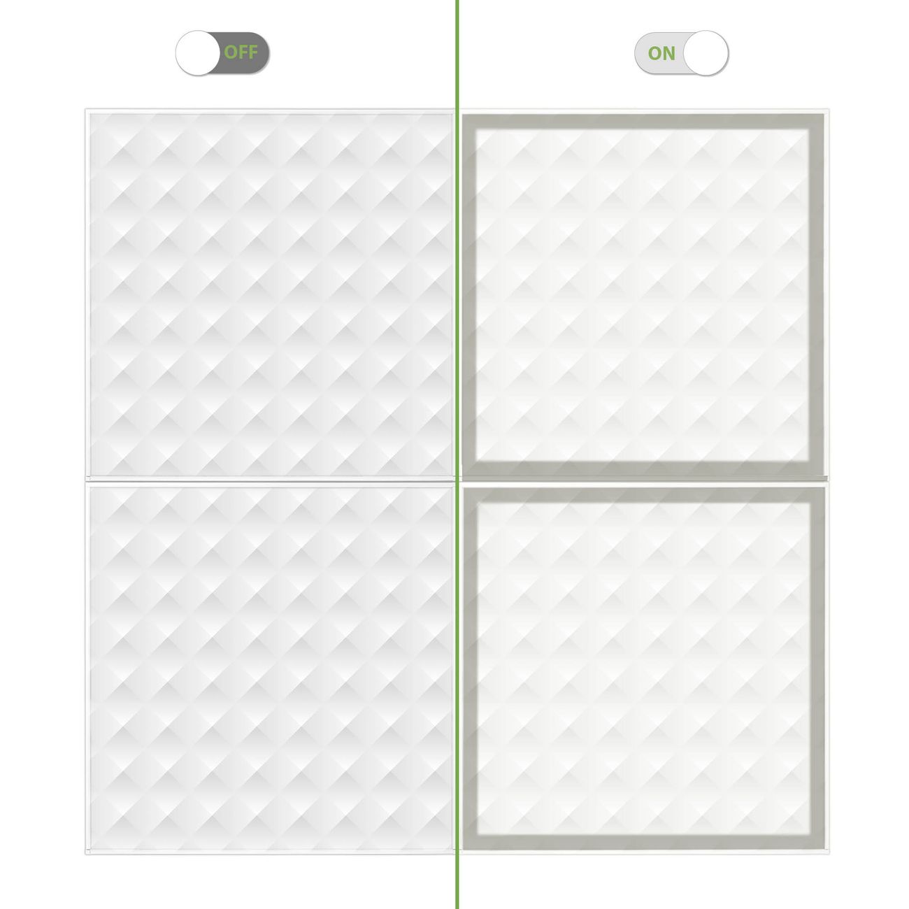 Entdecken Sie unsere vielseitigen Lichtdecken, hier in der Größe 124 x 124cm mit dem Motiv Motiv In Out - Ihre Beleuchtungslösung für jede Umgebung Beleuchten Sie Ihren Raum nicht nur, sondern schaffen Sie Atmosphäre! Die banjado Lichtdecke verwandelt jeden Ort, ob zu Hause, in Praxen, Büros oder Studios in eine Wohlfühloase. Unsere einzelnen Elemente haben eine genormte Einheitsgröße von 62 x 62cm und können somit in jede gängige Rasterdecken verbaut werden. So finden Sie Ihre passende Ausführung: Gern helfen wir Ihnen, die passende Ausführung zu wählen. Hierfür muss die aktuelle Gegebenheit Ihrer Decke oder Wand beachtet werden. Haben Sie bereits eine Rasterdecke (auch Odenwalddecke genannt)? Hier bestellen Sie lediglich das Motiv + Beleuchtungspanel, denn beides wird in die bereits vorhandene Decke eingelegt. Haben Sie eine glatte Decke mit Lichtauslass oder möchten die Lichtdecke an der Wand befestigen? Hier bestellen Sie bitte Motiv + Beleuchtungspanel + Deckenbefestigung, eine Aufbauanleitung liegt immer bei. Die Lichtdecke kann sowohl an der Decke als auch an der Wand montiert werden, perfekt für kreative Lichtakzente oder alternative Beleuchtungslösungen. Haben Sie bereits eine Lichtdecke und möchten nur das Motiv wechseln? Hier bestellen Sie bitte nur Motiv, der Wechsel ist denkbar einfach. Der Aufbau Ihrer banjado Lichtdecke gestaltet sich unkompliziert, dank einer verständlichen Anleitung, die Ihnen Schritt für Schritt durch den Montageprozess hilft. Für die endgültige Installation und den sicheren Anschluss empfehlen wir die Hinzuziehung eines Fachmanns, um die optimale Funktion und Sicherheit Ihrer Beleuchtung zu gewährleisten. Falls Sie einen Fachmann für die Installation benötigen, geben Sie uns gern Bescheid, wir vermitteln Ihnen gern einen geeigneten Ansprechpartner aus Ihrer Nähe. Steuerung: Steigern Sie Ihr Beleuchtungserlebnis mit der nahtlosen Integration in Ihr Smart Home. Durch die Kompatibilität mit der SmartLife App, Alexa und Google Assistant wird Ihr Smartphone zur zentralen Steuerungseinheit. Ihr Handy fungiert hierbei sozusagen als Fernbedienung. Legen Sie individuelle Lichtszenen in der App fest, die bei Aktivierung über den Wand-Ein-/Ausschalter immer wieder abgerufen werden können ohne Handy. Mit der Szenenfunktion in der Smart App können Sie die Beleuchtung personalisieren und steuern, sodass sie auf Ihre individuellen Bedürfnisse, Tagesrhythmus und Stimmung zugeschnitten ist. Beispielsweise können Sie sich in der Morgendämmerung durch ein sanftes Licht wecken lassen oder das Licht der Praxis werktags um 7 Uhr automatisch einschalten lassen. Dieses kann dann natürlich auch zu einer bestimmten Zeit automatisch ausgeschaltet werden. Motivwahl: Diese einzigartige Lichtdecke zeichnet sich durch ihre Fähigkeit aus, die Lichtfarbe je nach gewähltem Motiv anzupassen - ein Baum wirft ein sanftes grünes Licht, während eine Wolkendecke Ihren Raum in ein beruhigendes blaues Leuchten hüllt. Berücksichtigen Sie dies bitte bei Ihrer Motivauswahl. Sie können das Motiv jederzeit ohne großen Aufwand austauschen, ob nach Jahreszeit oder anderem Anlass, unsere Auswahl lässt kaum Wünsche offen. Wir fertigen Ihnen gern eine personalisierte Lichtdecke mit einem eigenen Motiv oder Logo oder Foto, schreiben Sie uns jederzeit an. Technische Daten: Das Motiv ist auf einer 4mm starken Acrylglas Scheibe aufgebracht, das Gesamtgewicht Ihrer Ausführung beträgt 17,7kg. Die Farbtemperatur lässt sich frei einstellen von 3000 bis 6000 Kelvin, damit können Sie stufenlos zwischen warmweiß, neutralweiß und kaltweiß wählen. Die Gesamtleistung bei Ihrer gewählten Ausführung beträgt 160W. Der Lichtstrom beträgt 3600 Lumen, die Nennspannung 230 V. Die Lichtdecke ist mit Schutzart IP20 für den Innenbereich konzipiert und sollte nicht im Nassbereich verwendet werden.