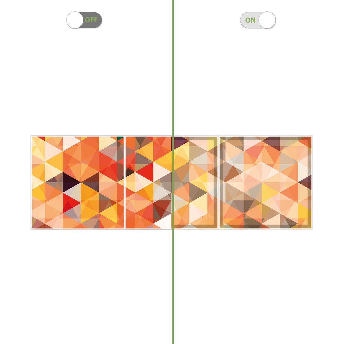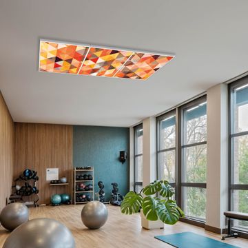 Entdecken Sie unsere vielseitigen Lichtdecken, hier in der Größe 186 x 62cm mit dem Motiv Motiv Kaleidoskop - Ihre Beleuchtungslösung für jede Umgebung Beleuchten Sie Ihren Raum nicht nur, sondern schaffen Sie Atmosphäre! Die banjado Lichtdecke verwandelt jeden Ort, ob zu Hause, in Praxen, Büros oder Studios in eine Wohlfühloase. Unsere einzelnen Elemente haben eine genormte Einheitsgröße von 62 x 62cm und können somit in jede gängige Rasterdecken verbaut werden. So finden Sie Ihre passende Ausführung: Gern helfen wir Ihnen, die passende Ausführung zu wählen. Hierfür muss die aktuelle Gegebenheit Ihrer Decke oder Wand beachtet werden. Haben Sie bereits eine Rasterdecke (auch Odenwalddecke genannt)? Hier bestellen Sie lediglich das Motiv + Beleuchtungspanel, denn beides wird in die bereits vorhandene Decke eingelegt. Haben Sie eine glatte Decke mit Lichtauslass oder möchten die Lichtdecke an der Wand befestigen? Hier bestellen Sie bitte Motiv + Beleuchtungspanel + Deckenbefestigung, eine Aufbauanleitung liegt immer bei. Die Lichtdecke kann sowohl an der Decke als auch an der Wand montiert werden, perfekt für kreative Lichtakzente oder alternative Beleuchtungslösungen. Haben Sie bereits eine Lichtdecke und möchten nur das Motiv wechseln? Hier bestellen Sie bitte nur Motiv, der Wechsel ist denkbar einfach. Der Aufbau Ihrer banjado Lichtdecke gestaltet sich unkompliziert, dank einer verständlichen Anleitung, die Ihnen Schritt für Schritt durch den Montageprozess hilft. Für die endgültige Installation und den sicheren Anschluss empfehlen wir die Hinzuziehung eines Fachmanns, um die optimale Funktion und Sicherheit Ihrer Beleuchtung zu gewährleisten. Falls Sie einen Fachmann für die Installation benötigen, geben Sie uns gern Bescheid, wir vermitteln Ihnen gern einen geeigneten Ansprechpartner aus Ihrer Nähe. Steuerung: Steigern Sie Ihr Beleuchtungserlebnis mit der nahtlosen Integration in Ihr Smart Home. Durch die Kompatibilität mit der SmartLife App, Alexa und Google Assistant wird Ihr Smartphone zur zentralen Steuerungseinheit. Ihr Handy fungiert hierbei sozusagen als Fernbedienung. Legen Sie individuelle Lichtszenen in der App fest, die bei Aktivierung über den Wand-Ein-/Ausschalter immer wieder abgerufen werden können ohne Handy. Mit der Szenenfunktion in der Smart App können Sie die Beleuchtung personalisieren und steuern, sodass sie auf Ihre individuellen Bedürfnisse, Tagesrhythmus und Stimmung zugeschnitten ist. Beispielsweise können Sie sich in der Morgendämmerung durch ein sanftes Licht wecken lassen oder das Licht der Praxis werktags um 7 Uhr automatisch einschalten lassen. Dieses kann dann natürlich auch zu einer bestimmten Zeit automatisch ausgeschaltet werden. Motivwahl: Diese einzigartige Lichtdecke zeichnet sich durch ihre Fähigkeit aus, die Lichtfarbe je nach gewähltem Motiv anzupassen - ein Baum wirft ein sanftes grünes Licht, während eine Wolkendecke Ihren Raum in ein beruhigendes blaues Leuchten hüllt. Berücksichtigen Sie dies bitte bei Ihrer Motivauswahl. Sie können das Motiv jederzeit ohne großen Aufwand austauschen, ob nach Jahreszeit oder anderem Anlass, unsere Auswahl lässt kaum Wünsche offen. Wir fertigen Ihnen gern eine personalisierte Lichtdecke mit einem eigenen Motiv oder Logo oder Foto, schreiben Sie uns jederzeit an. Technische Daten: Das Motiv ist auf einer 4mm starken Acrylglas Scheibe aufgebracht, das Gesamtgewicht Ihrer Ausführung beträgt 14,8kg. Die Farbtemperatur lässt sich frei einstellen von 3000 bis 6000 Kelvin, damit können Sie stufenlos zwischen warmweiß, neutralweiß und kaltweiß wählen. Die Gesamtleistung bei Ihrer gewählten Ausführung beträgt 120W. Der Lichtstrom beträgt 3600 Lumen, die Nennspannung 230 V. Die Lichtdecke ist mit Schutzart IP20 für den Innenbereich konzipiert und sollte nicht im Nassbereich verwendet werden.