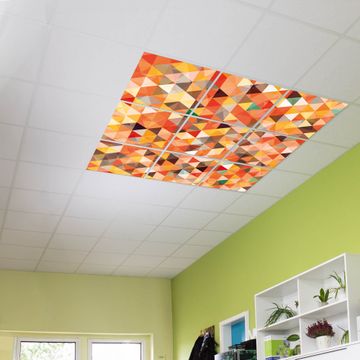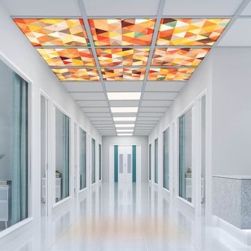 Entdecken Sie unsere vielseitigen Lichtdecken, hier in der Größe 186 x 186cm mit dem Motiv Motiv Kaleidoskop - Ihre Beleuchtungslösung für jede Umgebung Beleuchten Sie Ihren Raum nicht nur, sondern schaffen Sie Atmosphäre! Die banjado Lichtdecke verwandelt jeden Ort, ob zu Hause, in Praxen, Büros oder Studios in eine Wohlfühloase. Unsere einzelnen Elemente haben eine genormte Einheitsgröße von 62 x 62cm und können somit in jede gängige Rasterdecken verbaut werden. So finden Sie Ihre passende Ausführung: Gern helfen wir Ihnen, die passende Ausführung zu wählen. Hierfür muss die aktuelle Gegebenheit Ihrer Decke oder Wand beachtet werden. Haben Sie bereits eine Rasterdecke (auch Odenwalddecke genannt)? Hier bestellen Sie lediglich das Motiv + Beleuchtungspanel, denn beides wird in die bereits vorhandene Decke eingelegt. Haben Sie eine glatte Decke mit Lichtauslass oder möchten die Lichtdecke an der Wand befestigen? Hier bestellen Sie bitte Motiv + Beleuchtungspanel + Deckenbefestigung, eine Aufbauanleitung liegt immer bei. Die Lichtdecke kann sowohl an der Decke als auch an der Wand montiert werden, perfekt für kreative Lichtakzente oder alternative Beleuchtungslösungen. Haben Sie bereits eine Lichtdecke und möchten nur das Motiv wechseln? Hier bestellen Sie bitte nur Motiv, der Wechsel ist denkbar einfach. Der Aufbau Ihrer banjado Lichtdecke gestaltet sich unkompliziert, dank einer verständlichen Anleitung, die Ihnen Schritt für Schritt durch den Montageprozess hilft. Für die endgültige Installation und den sicheren Anschluss empfehlen wir die Hinzuziehung eines Fachmanns, um die optimale Funktion und Sicherheit Ihrer Beleuchtung zu gewährleisten. Falls Sie einen Fachmann für die Installation benötigen, geben Sie uns gern Bescheid, wir vermitteln Ihnen gern einen geeigneten Ansprechpartner aus Ihrer Nähe. Steuerung: Steigern Sie Ihr Beleuchtungserlebnis mit der nahtlosen Integration in Ihr Smart Home. Durch die Kompatibilität mit der SmartLife App, Alexa und Google Assistant wird Ihr Smartphone zur zentralen Steuerungseinheit. Ihr Handy fungiert hierbei sozusagen als Fernbedienung. Legen Sie individuelle Lichtszenen in der App fest, die bei Aktivierung über den Wand-Ein-/Ausschalter immer wieder abgerufen werden können ohne Handy. Mit der Szenenfunktion in der Smart App können Sie die Beleuchtung personalisieren und steuern, sodass sie auf Ihre individuellen Bedürfnisse, Tagesrhythmus und Stimmung zugeschnitten ist. Beispielsweise können Sie sich in der Morgendämmerung durch ein sanftes Licht wecken lassen oder das Licht der Praxis werktags um 7 Uhr automatisch einschalten lassen. Dieses kann dann natürlich auch zu einer bestimmten Zeit automatisch ausgeschaltet werden. Motivwahl: Diese einzigartige Lichtdecke zeichnet sich durch ihre Fähigkeit aus, die Lichtfarbe je nach gewähltem Motiv anzupassen - ein Baum wirft ein sanftes grünes Licht, während eine Wolkendecke Ihren Raum in ein beruhigendes blaues Leuchten hüllt. Berücksichtigen Sie dies bitte bei Ihrer Motivauswahl. Sie können das Motiv jederzeit ohne großen Aufwand austauschen, ob nach Jahreszeit oder anderem Anlass, unsere Auswahl lässt kaum Wünsche offen. Wir fertigen Ihnen gern eine personalisierte Lichtdecke mit einem eigenen Motiv oder Logo oder Foto, schreiben Sie uns jederzeit an. Technische Daten: Das Motiv ist auf einer 4mm starken Acrylglas Scheibe aufgebracht, das Gesamtgewicht Ihrer Ausführung beträgt 20,4kg. Die Farbtemperatur lässt sich frei einstellen von 3000 bis 6000 Kelvin, damit können Sie stufenlos zwischen warmweiß, neutralweiß und kaltweiß wählen. Die Gesamtleistung bei Ihrer gewählten Ausführung beträgt 360W. Der Lichtstrom beträgt 3600 Lumen, die Nennspannung 230 V. Die Lichtdecke ist mit Schutzart IP20 für den Innenbereich konzipiert und sollte nicht im Nassbereich verwendet werden.