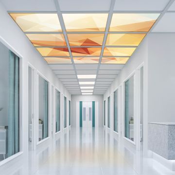 Entdecken Sie unsere vielseitigen Lichtdecken, hier in der Größe 186 x 248cm mit dem Motiv Motiv Kristall - Ihre Beleuchtungslösung für jede Umgebung Beleuchten Sie Ihren Raum nicht nur, sondern schaffen Sie Atmosphäre! Die banjado Lichtdecke verwandelt jeden Ort, ob zu Hause, in Praxen, Büros oder Studios in eine Wohlfühloase. Unsere einzelnen Elemente haben eine genormte Einheitsgröße von 62 x 62cm und können somit in jede gängige Rasterdecken verbaut werden. So finden Sie Ihre passende Ausführung: Gern helfen wir Ihnen, die passende Ausführung zu wählen. Hierfür muss die aktuelle Gegebenheit Ihrer Decke oder Wand beachtet werden. Haben Sie bereits eine Rasterdecke (auch Odenwalddecke genannt)? Hier bestellen Sie lediglich das Motiv + Beleuchtungspanel, denn beides wird in die bereits vorhandene Decke eingelegt. Haben Sie eine glatte Decke mit Lichtauslass oder möchten die Lichtdecke an der Wand befestigen? Hier bestellen Sie bitte Motiv + Beleuchtungspanel + Deckenbefestigung, eine Aufbauanleitung liegt immer bei. Die Lichtdecke kann sowohl an der Decke als auch an der Wand montiert werden, perfekt für kreative Lichtakzente oder alternative Beleuchtungslösungen. Haben Sie bereits eine Lichtdecke und möchten nur das Motiv wechseln? Hier bestellen Sie bitte nur Motiv, der Wechsel ist denkbar einfach. Der Aufbau Ihrer banjado Lichtdecke gestaltet sich unkompliziert, dank einer verständlichen Anleitung, die Ihnen Schritt für Schritt durch den Montageprozess hilft. Für die endgültige Installation und den sicheren Anschluss empfehlen wir die Hinzuziehung eines Fachmanns, um die optimale Funktion und Sicherheit Ihrer Beleuchtung zu gewährleisten. Falls Sie einen Fachmann für die Installation benötigen, geben Sie uns gern Bescheid, wir vermitteln Ihnen gern einen geeigneten Ansprechpartner aus Ihrer Nähe. Steuerung: Steigern Sie Ihr Beleuchtungserlebnis mit der nahtlosen Integration in Ihr Smart Home. Durch die Kompatibilität mit der SmartLife App, Alexa und Google Assistant wird Ihr Smartphone zur zentralen Steuerungseinheit. Ihr Handy fungiert hierbei sozusagen als Fernbedienung. Legen Sie individuelle Lichtszenen in der App fest, die bei Aktivierung über den Wand-Ein-/Ausschalter immer wieder abgerufen werden können ohne Handy. Mit der Szenenfunktion in der Smart App können Sie die Beleuchtung personalisieren und steuern, sodass sie auf Ihre individuellen Bedürfnisse, Tagesrhythmus und Stimmung zugeschnitten ist. Beispielsweise können Sie sich in der Morgendämmerung durch ein sanftes Licht wecken lassen oder das Licht der Praxis werktags um 7 Uhr automatisch einschalten lassen. Dieses kann dann natürlich auch zu einer bestimmten Zeit automatisch ausgeschaltet werden. Motivwahl: Diese einzigartige Lichtdecke zeichnet sich durch ihre Fähigkeit aus, die Lichtfarbe je nach gewähltem Motiv anzupassen - ein Baum wirft ein sanftes grünes Licht, während eine Wolkendecke Ihren Raum in ein beruhigendes blaues Leuchten hüllt. Berücksichtigen Sie dies bitte bei Ihrer Motivauswahl. Sie können das Motiv jederzeit ohne großen Aufwand austauschen, ob nach Jahreszeit oder anderem Anlass, unsere Auswahl lässt kaum Wünsche offen. Wir fertigen Ihnen gern eine personalisierte Lichtdecke mit einem eigenen Motiv oder Logo oder Foto, schreiben Sie uns jederzeit an. Technische Daten: Das Motiv ist auf einer 4mm starken Acrylglas Scheibe aufgebracht, das Gesamtgewicht Ihrer Ausführung beträgt 53,1kg. Die Farbtemperatur lässt sich frei einstellen von 3000 bis 6000 Kelvin, damit können Sie stufenlos zwischen warmweiß, neutralweiß und kaltweiß wählen. Die Gesamtleistung bei Ihrer gewählten Ausführung beträgt 480W. Der Lichtstrom beträgt 3600 Lumen, die Nennspannung 230 V. Die Lichtdecke ist mit Schutzart IP20 für den Innenbereich konzipiert und sollte nicht im Nassbereich verwendet werden.