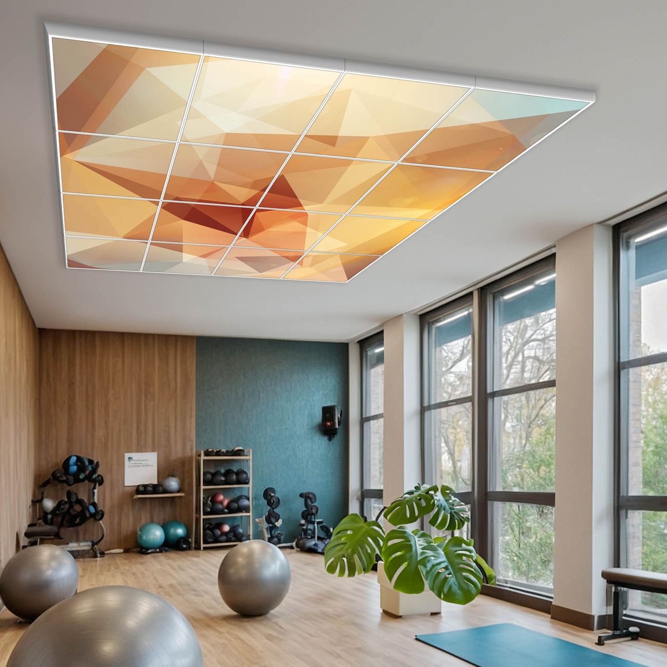 Entdecken Sie unsere vielseitigen Lichtdecken, hier in der Größe 248 x 248cm mit dem Motiv Motiv Kristall - Ihre Beleuchtungslösung für jede Umgebung Beleuchten Sie Ihren Raum nicht nur, sondern schaffen Sie Atmosphäre! Die banjado Lichtdecke verwandelt jeden Ort, ob zu Hause, in Praxen, Büros oder Studios in eine Wohlfühloase. Unsere einzelnen Elemente haben eine genormte Einheitsgröße von 62 x 62cm und können somit in jede gängige Rasterdecken verbaut werden. So finden Sie Ihre passende Ausführung: Gern helfen wir Ihnen, die passende Ausführung zu wählen. Hierfür muss die aktuelle Gegebenheit Ihrer Decke oder Wand beachtet werden. Haben Sie bereits eine Rasterdecke (auch Odenwalddecke genannt)? Hier bestellen Sie lediglich das Motiv + Beleuchtungspanel, denn beides wird in die bereits vorhandene Decke eingelegt. Haben Sie eine glatte Decke mit Lichtauslass oder möchten die Lichtdecke an der Wand befestigen? Hier bestellen Sie bitte Motiv + Beleuchtungspanel + Deckenbefestigung, eine Aufbauanleitung liegt immer bei. Die Lichtdecke kann sowohl an der Decke als auch an der Wand montiert werden, perfekt für kreative Lichtakzente oder alternative Beleuchtungslösungen. Haben Sie bereits eine Lichtdecke und möchten nur das Motiv wechseln? Hier bestellen Sie bitte nur Motiv, der Wechsel ist denkbar einfach. Der Aufbau Ihrer banjado Lichtdecke gestaltet sich unkompliziert, dank einer verständlichen Anleitung, die Ihnen Schritt für Schritt durch den Montageprozess hilft. Für die endgültige Installation und den sicheren Anschluss empfehlen wir die Hinzuziehung eines Fachmanns, um die optimale Funktion und Sicherheit Ihrer Beleuchtung zu gewährleisten. Falls Sie einen Fachmann für die Installation benötigen, geben Sie uns gern Bescheid, wir vermitteln Ihnen gern einen geeigneten Ansprechpartner aus Ihrer Nähe. Steuerung: Steigern Sie Ihr Beleuchtungserlebnis mit der nahtlosen Integration in Ihr Smart Home. Durch die Kompatibilität mit der SmartLife App, Alexa und Google Assistant wird Ihr Smartphone zur zentralen Steuerungseinheit. Ihr Handy fungiert hierbei sozusagen als Fernbedienung. Legen Sie individuelle Lichtszenen in der App fest, die bei Aktivierung über den Wand-Ein-/Ausschalter immer wieder abgerufen werden können ohne Handy. Mit der Szenenfunktion in der Smart App können Sie die Beleuchtung personalisieren und steuern, sodass sie auf Ihre individuellen Bedürfnisse, Tagesrhythmus und Stimmung zugeschnitten ist. Beispielsweise können Sie sich in der Morgendämmerung durch ein sanftes Licht wecken lassen oder das Licht der Praxis werktags um 7 Uhr automatisch einschalten lassen. Dieses kann dann natürlich auch zu einer bestimmten Zeit automatisch ausgeschaltet werden. Motivwahl: Diese einzigartige Lichtdecke zeichnet sich durch ihre Fähigkeit aus, die Lichtfarbe je nach gewähltem Motiv anzupassen - ein Baum wirft ein sanftes grünes Licht, während eine Wolkendecke Ihren Raum in ein beruhigendes blaues Leuchten hüllt. Berücksichtigen Sie dies bitte bei Ihrer Motivauswahl. Sie können das Motiv jederzeit ohne großen Aufwand austauschen, ob nach Jahreszeit oder anderem Anlass, unsere Auswahl lässt kaum Wünsche offen. Wir fertigen Ihnen gern eine personalisierte Lichtdecke mit einem eigenen Motiv oder Logo oder Foto, schreiben Sie uns jederzeit an. Technische Daten: Das Motiv ist auf einer 4mm starken Acrylglas Scheibe aufgebracht, das Gesamtgewicht Ihrer Ausführung beträgt 78,9kg. Die Farbtemperatur lässt sich frei einstellen von 3000 bis 6000 Kelvin, damit können Sie stufenlos zwischen warmweiß, neutralweiß und kaltweiß wählen. Die Gesamtleistung bei Ihrer gewählten Ausführung beträgt 640W. Der Lichtstrom beträgt 3600 Lumen, die Nennspannung 230 V. Die Lichtdecke ist mit Schutzart IP20 für den Innenbereich konzipiert und sollte nicht im Nassbereich verwendet werden.
