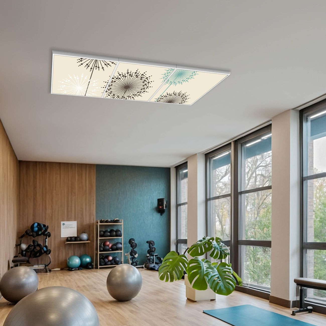 Entdecken Sie unsere vielseitigen Lichtdecken, hier in der Größe 186 x 62cm mit dem Motiv Motiv Kugelfontänen - Ihre Beleuchtungslösung für jede Umgebung Beleuchten Sie Ihren Raum nicht nur, sondern schaffen Sie Atmosphäre! Die banjado Lichtdecke verwandelt jeden Ort, ob zu Hause, in Praxen, Büros oder Studios in eine Wohlfühloase. Unsere einzelnen Elemente haben eine genormte Einheitsgröße von 62 x 62cm und können somit in jede gängige Rasterdecken verbaut werden. So finden Sie Ihre passende Ausführung: Gern helfen wir Ihnen, die passende Ausführung zu wählen. Hierfür muss die aktuelle Gegebenheit Ihrer Decke oder Wand beachtet werden. Haben Sie bereits eine Rasterdecke (auch Odenwalddecke genannt)? Hier bestellen Sie lediglich das Motiv + Beleuchtungspanel, denn beides wird in die bereits vorhandene Decke eingelegt. Haben Sie eine glatte Decke mit Lichtauslass oder möchten die Lichtdecke an der Wand befestigen? Hier bestellen Sie bitte Motiv + Beleuchtungspanel + Deckenbefestigung, eine Aufbauanleitung liegt immer bei. Die Lichtdecke kann sowohl an der Decke als auch an der Wand montiert werden, perfekt für kreative Lichtakzente oder alternative Beleuchtungslösungen. Haben Sie bereits eine Lichtdecke und möchten nur das Motiv wechseln? Hier bestellen Sie bitte nur Motiv, der Wechsel ist denkbar einfach. Der Aufbau Ihrer banjado Lichtdecke gestaltet sich unkompliziert, dank einer verständlichen Anleitung, die Ihnen Schritt für Schritt durch den Montageprozess hilft. Für die endgültige Installation und den sicheren Anschluss empfehlen wir die Hinzuziehung eines Fachmanns, um die optimale Funktion und Sicherheit Ihrer Beleuchtung zu gewährleisten. Falls Sie einen Fachmann für die Installation benötigen, geben Sie uns gern Bescheid, wir vermitteln Ihnen gern einen geeigneten Ansprechpartner aus Ihrer Nähe. Steuerung: Steigern Sie Ihr Beleuchtungserlebnis mit der nahtlosen Integration in Ihr Smart Home. Durch die Kompatibilität mit der SmartLife App, Alexa und Google Assistant wird Ihr Smartphone zur zentralen Steuerungseinheit. Ihr Handy fungiert hierbei sozusagen als Fernbedienung. Legen Sie individuelle Lichtszenen in der App fest, die bei Aktivierung über den Wand-Ein-/Ausschalter immer wieder abgerufen werden können ohne Handy. Mit der Szenenfunktion in der Smart App können Sie die Beleuchtung personalisieren und steuern, sodass sie auf Ihre individuellen Bedürfnisse, Tagesrhythmus und Stimmung zugeschnitten ist. Beispielsweise können Sie sich in der Morgendämmerung durch ein sanftes Licht wecken lassen oder das Licht der Praxis werktags um 7 Uhr automatisch einschalten lassen. Dieses kann dann natürlich auch zu einer bestimmten Zeit automatisch ausgeschaltet werden. Motivwahl: Diese einzigartige Lichtdecke zeichnet sich durch ihre Fähigkeit aus, die Lichtfarbe je nach gewähltem Motiv anzupassen - ein Baum wirft ein sanftes grünes Licht, während eine Wolkendecke Ihren Raum in ein beruhigendes blaues Leuchten hüllt. Berücksichtigen Sie dies bitte bei Ihrer Motivauswahl. Sie können das Motiv jederzeit ohne großen Aufwand austauschen, ob nach Jahreszeit oder anderem Anlass, unsere Auswahl lässt kaum Wünsche offen. Wir fertigen Ihnen gern eine personalisierte Lichtdecke mit einem eigenen Motiv oder Logo oder Foto, schreiben Sie uns jederzeit an. Technische Daten: Das Motiv ist auf einer 4mm starken Acrylglas Scheibe aufgebracht, das Gesamtgewicht Ihrer Ausführung beträgt 14,8kg. Die Farbtemperatur lässt sich frei einstellen von 3000 bis 6000 Kelvin, damit können Sie stufenlos zwischen warmweiß, neutralweiß und kaltweiß wählen. Die Gesamtleistung bei Ihrer gewählten Ausführung beträgt 120W. Der Lichtstrom beträgt 3600 Lumen, die Nennspannung 230 V. Die Lichtdecke ist mit Schutzart IP20 für den Innenbereich konzipiert und sollte nicht im Nassbereich verwendet werden.
