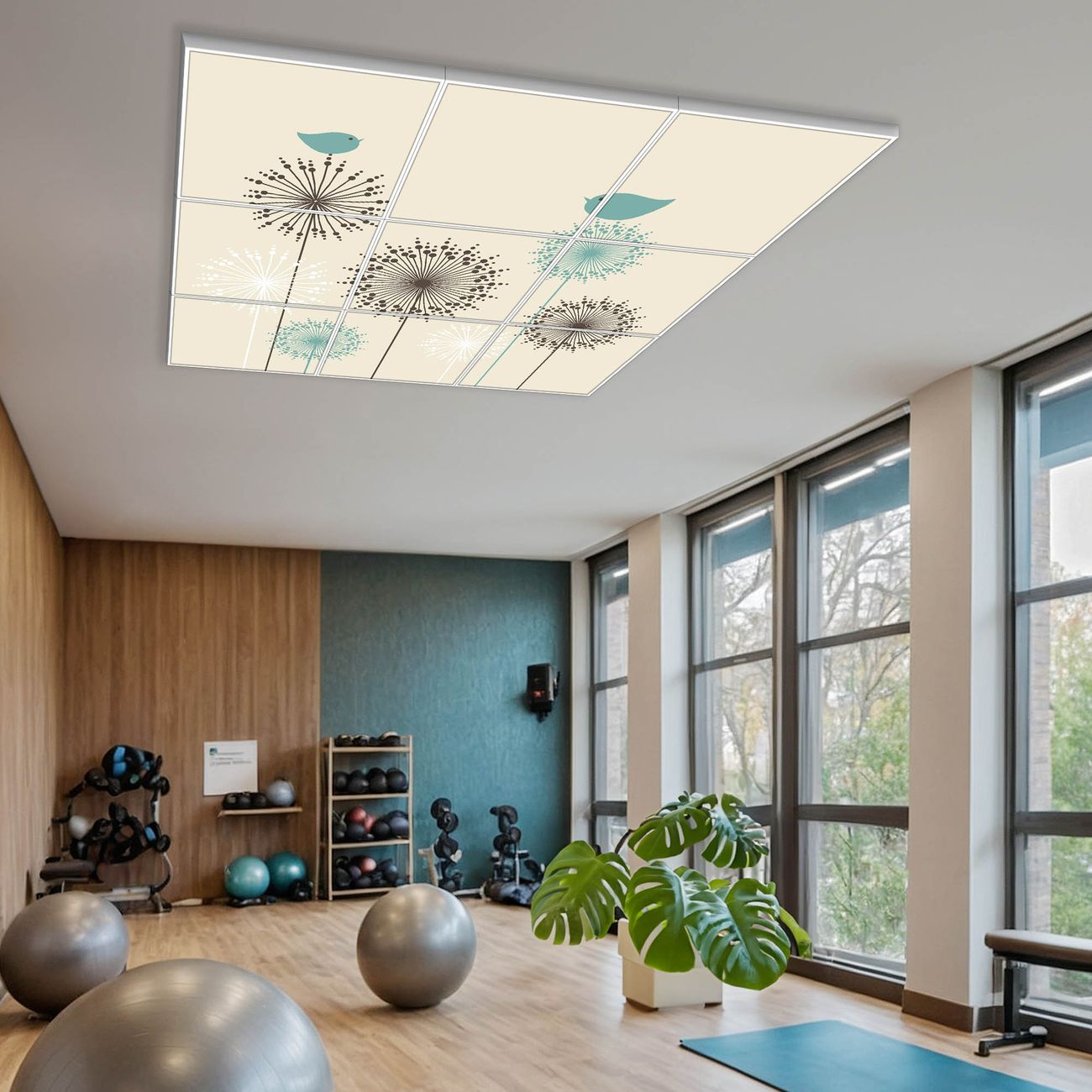 Entdecken Sie unsere vielseitigen Lichtdecken, hier in der Größe 186 x 186cm mit dem Motiv Motiv Kugelfontänen - Ihre Beleuchtungslösung für jede Umgebung Beleuchten Sie Ihren Raum nicht nur, sondern schaffen Sie Atmosphäre! Die banjado Lichtdecke verwandelt jeden Ort, ob zu Hause, in Praxen, Büros oder Studios in eine Wohlfühloase. Unsere einzelnen Elemente haben eine genormte Einheitsgröße von 62 x 62cm und können somit in jede gängige Rasterdecken verbaut werden. So finden Sie Ihre passende Ausführung: Gern helfen wir Ihnen, die passende Ausführung zu wählen. Hierfür muss die aktuelle Gegebenheit Ihrer Decke oder Wand beachtet werden. Haben Sie bereits eine Rasterdecke (auch Odenwalddecke genannt)? Hier bestellen Sie lediglich das Motiv + Beleuchtungspanel, denn beides wird in die bereits vorhandene Decke eingelegt. Haben Sie eine glatte Decke mit Lichtauslass oder möchten die Lichtdecke an der Wand befestigen? Hier bestellen Sie bitte Motiv + Beleuchtungspanel + Deckenbefestigung, eine Aufbauanleitung liegt immer bei. Die Lichtdecke kann sowohl an der Decke als auch an der Wand montiert werden, perfekt für kreative Lichtakzente oder alternative Beleuchtungslösungen. Haben Sie bereits eine Lichtdecke und möchten nur das Motiv wechseln? Hier bestellen Sie bitte nur Motiv, der Wechsel ist denkbar einfach. Der Aufbau Ihrer banjado Lichtdecke gestaltet sich unkompliziert, dank einer verständlichen Anleitung, die Ihnen Schritt für Schritt durch den Montageprozess hilft. Für die endgültige Installation und den sicheren Anschluss empfehlen wir die Hinzuziehung eines Fachmanns, um die optimale Funktion und Sicherheit Ihrer Beleuchtung zu gewährleisten. Falls Sie einen Fachmann für die Installation benötigen, geben Sie uns gern Bescheid, wir vermitteln Ihnen gern einen geeigneten Ansprechpartner aus Ihrer Nähe. Steuerung: Steigern Sie Ihr Beleuchtungserlebnis mit der nahtlosen Integration in Ihr Smart Home. Durch die Kompatibilität mit der SmartLife App, Alexa und Google Assistant wird Ihr Smartphone zur zentralen Steuerungseinheit. Ihr Handy fungiert hierbei sozusagen als Fernbedienung. Legen Sie individuelle Lichtszenen in der App fest, die bei Aktivierung über den Wand-Ein-/Ausschalter immer wieder abgerufen werden können ohne Handy. Mit der Szenenfunktion in der Smart App können Sie die Beleuchtung personalisieren und steuern, sodass sie auf Ihre individuellen Bedürfnisse, Tagesrhythmus und Stimmung zugeschnitten ist. Beispielsweise können Sie sich in der Morgendämmerung durch ein sanftes Licht wecken lassen oder das Licht der Praxis werktags um 7 Uhr automatisch einschalten lassen. Dieses kann dann natürlich auch zu einer bestimmten Zeit automatisch ausgeschaltet werden. Motivwahl: Diese einzigartige Lichtdecke zeichnet sich durch ihre Fähigkeit aus, die Lichtfarbe je nach gewähltem Motiv anzupassen - ein Baum wirft ein sanftes grünes Licht, während eine Wolkendecke Ihren Raum in ein beruhigendes blaues Leuchten hüllt. Berücksichtigen Sie dies bitte bei Ihrer Motivauswahl. Sie können das Motiv jederzeit ohne großen Aufwand austauschen, ob nach Jahreszeit oder anderem Anlass, unsere Auswahl lässt kaum Wünsche offen. Wir fertigen Ihnen gern eine personalisierte Lichtdecke mit einem eigenen Motiv oder Logo oder Foto, schreiben Sie uns jederzeit an. Technische Daten: Das Motiv ist auf einer 4mm starken Acrylglas Scheibe aufgebracht, das Gesamtgewicht Ihrer Ausführung beträgt 44,4kg. Die Farbtemperatur lässt sich frei einstellen von 3000 bis 6000 Kelvin, damit können Sie stufenlos zwischen warmweiß, neutralweiß und kaltweiß wählen. Die Gesamtleistung bei Ihrer gewählten Ausführung beträgt 360W. Der Lichtstrom beträgt 3600 Lumen, die Nennspannung 230 V. Die Lichtdecke ist mit Schutzart IP20 für den Innenbereich konzipiert und sollte nicht im Nassbereich verwendet werden.
