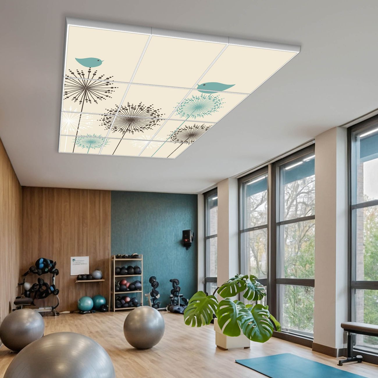 Entdecken Sie unsere vielseitigen Lichtdecken, hier in der Größe 186 x 248cm mit dem Motiv Motiv Kugelfontänen - Ihre Beleuchtungslösung für jede Umgebung Beleuchten Sie Ihren Raum nicht nur, sondern schaffen Sie Atmosphäre! Die banjado Lichtdecke verwandelt jeden Ort, ob zu Hause, in Praxen, Büros oder Studios in eine Wohlfühloase. Unsere einzelnen Elemente haben eine genormte Einheitsgröße von 62 x 62cm und können somit in jede gängige Rasterdecken verbaut werden. So finden Sie Ihre passende Ausführung: Gern helfen wir Ihnen, die passende Ausführung zu wählen. Hierfür muss die aktuelle Gegebenheit Ihrer Decke oder Wand beachtet werden. Haben Sie bereits eine Rasterdecke (auch Odenwalddecke genannt)? Hier bestellen Sie lediglich das Motiv + Beleuchtungspanel, denn beides wird in die bereits vorhandene Decke eingelegt. Haben Sie eine glatte Decke mit Lichtauslass oder möchten die Lichtdecke an der Wand befestigen? Hier bestellen Sie bitte Motiv + Beleuchtungspanel + Deckenbefestigung, eine Aufbauanleitung liegt immer bei. Die Lichtdecke kann sowohl an der Decke als auch an der Wand montiert werden, perfekt für kreative Lichtakzente oder alternative Beleuchtungslösungen. Haben Sie bereits eine Lichtdecke und möchten nur das Motiv wechseln? Hier bestellen Sie bitte nur Motiv, der Wechsel ist denkbar einfach. Der Aufbau Ihrer banjado Lichtdecke gestaltet sich unkompliziert, dank einer verständlichen Anleitung, die Ihnen Schritt für Schritt durch den Montageprozess hilft. Für die endgültige Installation und den sicheren Anschluss empfehlen wir die Hinzuziehung eines Fachmanns, um die optimale Funktion und Sicherheit Ihrer Beleuchtung zu gewährleisten. Falls Sie einen Fachmann für die Installation benötigen, geben Sie uns gern Bescheid, wir vermitteln Ihnen gern einen geeigneten Ansprechpartner aus Ihrer Nähe. Steuerung: Steigern Sie Ihr Beleuchtungserlebnis mit der nahtlosen Integration in Ihr Smart Home. Durch die Kompatibilität mit der SmartLife App, Alexa und Google Assistant wird Ihr Smartphone zur zentralen Steuerungseinheit. Ihr Handy fungiert hierbei sozusagen als Fernbedienung. Legen Sie individuelle Lichtszenen in der App fest, die bei Aktivierung über den Wand-Ein-/Ausschalter immer wieder abgerufen werden können ohne Handy. Mit der Szenenfunktion in der Smart App können Sie die Beleuchtung personalisieren und steuern, sodass sie auf Ihre individuellen Bedürfnisse, Tagesrhythmus und Stimmung zugeschnitten ist. Beispielsweise können Sie sich in der Morgendämmerung durch ein sanftes Licht wecken lassen oder das Licht der Praxis werktags um 7 Uhr automatisch einschalten lassen. Dieses kann dann natürlich auch zu einer bestimmten Zeit automatisch ausgeschaltet werden. Motivwahl: Diese einzigartige Lichtdecke zeichnet sich durch ihre Fähigkeit aus, die Lichtfarbe je nach gewähltem Motiv anzupassen - ein Baum wirft ein sanftes grünes Licht, während eine Wolkendecke Ihren Raum in ein beruhigendes blaues Leuchten hüllt. Berücksichtigen Sie dies bitte bei Ihrer Motivauswahl. Sie können das Motiv jederzeit ohne großen Aufwand austauschen, ob nach Jahreszeit oder anderem Anlass, unsere Auswahl lässt kaum Wünsche offen. Wir fertigen Ihnen gern eine personalisierte Lichtdecke mit einem eigenen Motiv oder Logo oder Foto, schreiben Sie uns jederzeit an. Technische Daten: Das Motiv ist auf einer 4mm starken Acrylglas Scheibe aufgebracht, das Gesamtgewicht Ihrer Ausführung beträgt 59,1kg. Die Farbtemperatur lässt sich frei einstellen von 3000 bis 6000 Kelvin, damit können Sie stufenlos zwischen warmweiß, neutralweiß und kaltweiß wählen. Die Gesamtleistung bei Ihrer gewählten Ausführung beträgt 480W. Der Lichtstrom beträgt 3600 Lumen, die Nennspannung 230 V. Die Lichtdecke ist mit Schutzart IP20 für den Innenbereich konzipiert und sollte nicht im Nassbereich verwendet werden.