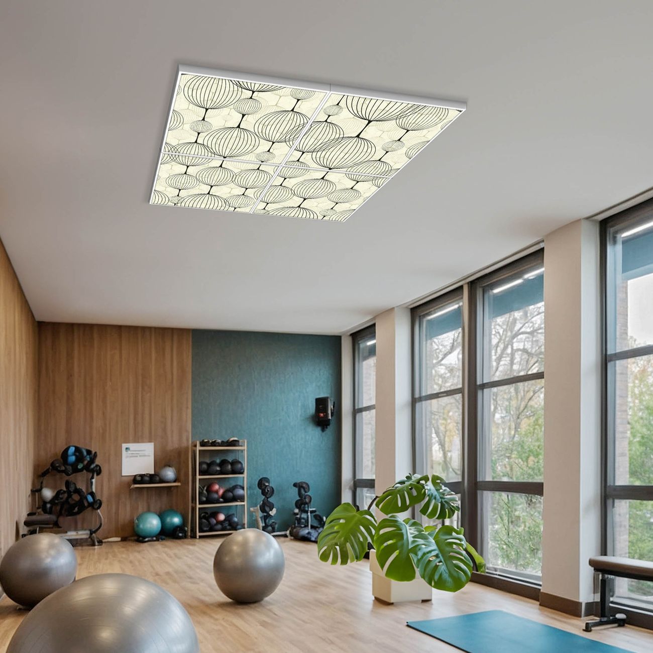 Entdecken Sie unsere vielseitigen Lichtdecken, hier in der Größe 124 x 124cm mit dem Motiv Motiv Lampions - Ihre Beleuchtungslösung für jede Umgebung Beleuchten Sie Ihren Raum nicht nur, sondern schaffen Sie Atmosphäre! Die banjado Lichtdecke verwandelt jeden Ort, ob zu Hause, in Praxen, Büros oder Studios in eine Wohlfühloase. Unsere einzelnen Elemente haben eine genormte Einheitsgröße von 62 x 62cm und können somit in jede gängige Rasterdecken verbaut werden. So finden Sie Ihre passende Ausführung: Gern helfen wir Ihnen, die passende Ausführung zu wählen. Hierfür muss die aktuelle Gegebenheit Ihrer Decke oder Wand beachtet werden. Haben Sie bereits eine Rasterdecke (auch Odenwalddecke genannt)? Hier bestellen Sie lediglich das Motiv + Beleuchtungspanel, denn beides wird in die bereits vorhandene Decke eingelegt. Haben Sie eine glatte Decke mit Lichtauslass oder möchten die Lichtdecke an der Wand befestigen? Hier bestellen Sie bitte Motiv + Beleuchtungspanel + Deckenbefestigung, eine Aufbauanleitung liegt immer bei. Die Lichtdecke kann sowohl an der Decke als auch an der Wand montiert werden, perfekt für kreative Lichtakzente oder alternative Beleuchtungslösungen. Haben Sie bereits eine Lichtdecke und möchten nur das Motiv wechseln? Hier bestellen Sie bitte nur Motiv, der Wechsel ist denkbar einfach. Der Aufbau Ihrer banjado Lichtdecke gestaltet sich unkompliziert, dank einer verständlichen Anleitung, die Ihnen Schritt für Schritt durch den Montageprozess hilft. Für die endgültige Installation und den sicheren Anschluss empfehlen wir die Hinzuziehung eines Fachmanns, um die optimale Funktion und Sicherheit Ihrer Beleuchtung zu gewährleisten. Falls Sie einen Fachmann für die Installation benötigen, geben Sie uns gern Bescheid, wir vermitteln Ihnen gern einen geeigneten Ansprechpartner aus Ihrer Nähe. Steuerung: Steigern Sie Ihr Beleuchtungserlebnis mit der nahtlosen Integration in Ihr Smart Home. Durch die Kompatibilität mit der SmartLife App, Alexa und Google Assistant wird Ihr Smartphone zur zentralen Steuerungseinheit. Ihr Handy fungiert hierbei sozusagen als Fernbedienung. Legen Sie individuelle Lichtszenen in der App fest, die bei Aktivierung über den Wand-Ein-/Ausschalter immer wieder abgerufen werden können ohne Handy. Mit der Szenenfunktion in der Smart App können Sie die Beleuchtung personalisieren und steuern, sodass sie auf Ihre individuellen Bedürfnisse, Tagesrhythmus und Stimmung zugeschnitten ist. Beispielsweise können Sie sich in der Morgendämmerung durch ein sanftes Licht wecken lassen oder das Licht der Praxis werktags um 7 Uhr automatisch einschalten lassen. Dieses kann dann natürlich auch zu einer bestimmten Zeit automatisch ausgeschaltet werden. Motivwahl: Diese einzigartige Lichtdecke zeichnet sich durch ihre Fähigkeit aus, die Lichtfarbe je nach gewähltem Motiv anzupassen - ein Baum wirft ein sanftes grünes Licht, während eine Wolkendecke Ihren Raum in ein beruhigendes blaues Leuchten hüllt. Berücksichtigen Sie dies bitte bei Ihrer Motivauswahl. Sie können das Motiv jederzeit ohne großen Aufwand austauschen, ob nach Jahreszeit oder anderem Anlass, unsere Auswahl lässt kaum Wünsche offen. Wir fertigen Ihnen gern eine personalisierte Lichtdecke mit einem eigenen Motiv oder Logo oder Foto, schreiben Sie uns jederzeit an. Technische Daten: Das Motiv ist auf einer 4mm starken Acrylglas Scheibe aufgebracht, das Gesamtgewicht Ihrer Ausführung beträgt 19,7kg. Die Farbtemperatur lässt sich frei einstellen von 3000 bis 6000 Kelvin, damit können Sie stufenlos zwischen warmweiß, neutralweiß und kaltweiß wählen. Die Gesamtleistung bei Ihrer gewählten Ausführung beträgt 160W. Der Lichtstrom beträgt 3600 Lumen, die Nennspannung 230 V. Die Lichtdecke ist mit Schutzart IP20 für den Innenbereich konzipiert und sollte nicht im Nassbereich verwendet werden.