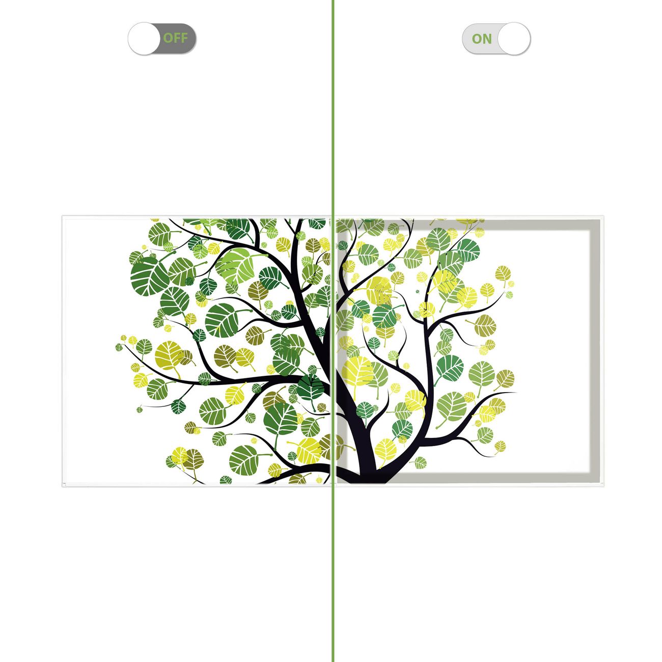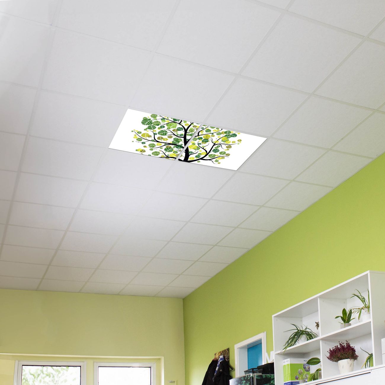 Entdecken Sie unsere vielseitigen Lichtdecken, hier in der Größe 124 x 62cm mit dem Motiv Motiv Laubzauberbaum - Ihre Beleuchtungslösung für jede Umgebung Beleuchten Sie Ihren Raum nicht nur, sondern schaffen Sie Atmosphäre! Die banjado Lichtdecke verwandelt jeden Ort, ob zu Hause, in Praxen, Büros oder Studios in eine Wohlfühloase. Unsere einzelnen Elemente haben eine genormte Einheitsgröße von 62 x 62cm und können somit in jede gängige Rasterdecken verbaut werden. So finden Sie Ihre passende Ausführung: Gern helfen wir Ihnen, die passende Ausführung zu wählen. Hierfür muss die aktuelle Gegebenheit Ihrer Decke oder Wand beachtet werden. Haben Sie bereits eine Rasterdecke (auch Odenwalddecke genannt)? Hier bestellen Sie lediglich das Motiv + Beleuchtungspanel, denn beides wird in die bereits vorhandene Decke eingelegt. Haben Sie eine glatte Decke mit Lichtauslass oder möchten die Lichtdecke an der Wand befestigen? Hier bestellen Sie bitte Motiv + Beleuchtungspanel + Deckenbefestigung, eine Aufbauanleitung liegt immer bei. Die Lichtdecke kann sowohl an der Decke als auch an der Wand montiert werden, perfekt für kreative Lichtakzente oder alternative Beleuchtungslösungen. Haben Sie bereits eine Lichtdecke und möchten nur das Motiv wechseln? Hier bestellen Sie bitte nur Motiv, der Wechsel ist denkbar einfach. Der Aufbau Ihrer banjado Lichtdecke gestaltet sich unkompliziert, dank einer verständlichen Anleitung, die Ihnen Schritt für Schritt durch den Montageprozess hilft. Für die endgültige Installation und den sicheren Anschluss empfehlen wir die Hinzuziehung eines Fachmanns, um die optimale Funktion und Sicherheit Ihrer Beleuchtung zu gewährleisten. Falls Sie einen Fachmann für die Installation benötigen, geben Sie uns gern Bescheid, wir vermitteln Ihnen gern einen geeigneten Ansprechpartner aus Ihrer Nähe. Steuerung: Steigern Sie Ihr Beleuchtungserlebnis mit der nahtlosen Integration in Ihr Smart Home. Durch die Kompatibilität mit der SmartLife App, Alexa und Google Assistant wird Ihr Smartphone zur zentralen Steuerungseinheit. Ihr Handy fungiert hierbei sozusagen als Fernbedienung. Legen Sie individuelle Lichtszenen in der App fest, die bei Aktivierung über den Wand-Ein-/Ausschalter immer wieder abgerufen werden können ohne Handy. Mit der Szenenfunktion in der Smart App können Sie die Beleuchtung personalisieren und steuern, sodass sie auf Ihre individuellen Bedürfnisse, Tagesrhythmus und Stimmung zugeschnitten ist. Beispielsweise können Sie sich in der Morgendämmerung durch ein sanftes Licht wecken lassen oder das Licht der Praxis werktags um 7 Uhr automatisch einschalten lassen. Dieses kann dann natürlich auch zu einer bestimmten Zeit automatisch ausgeschaltet werden. Motivwahl: Diese einzigartige Lichtdecke zeichnet sich durch ihre Fähigkeit aus, die Lichtfarbe je nach gewähltem Motiv anzupassen - ein Baum wirft ein sanftes grünes Licht, während eine Wolkendecke Ihren Raum in ein beruhigendes blaues Leuchten hüllt. Berücksichtigen Sie dies bitte bei Ihrer Motivauswahl. Sie können das Motiv jederzeit ohne großen Aufwand austauschen, ob nach Jahreszeit oder anderem Anlass, unsere Auswahl lässt kaum Wünsche offen. Wir fertigen Ihnen gern eine personalisierte Lichtdecke mit einem eigenen Motiv oder Logo oder Foto, schreiben Sie uns jederzeit an. Technische Daten: Das Motiv ist auf einer 4mm starken Acrylglas Scheibe aufgebracht, das Gesamtgewicht Ihrer Ausführung beträgt 4,5kg. Die Farbtemperatur lässt sich frei einstellen von 3000 bis 6000 Kelvin, damit können Sie stufenlos zwischen warmweiß, neutralweiß und kaltweiß wählen. Die Gesamtleistung bei Ihrer gewählten Ausführung beträgt 80W. Der Lichtstrom beträgt 3600 Lumen, die Nennspannung 230 V. Die Lichtdecke ist mit Schutzart IP20 für den Innenbereich konzipiert und sollte nicht im Nassbereich verwendet werden.