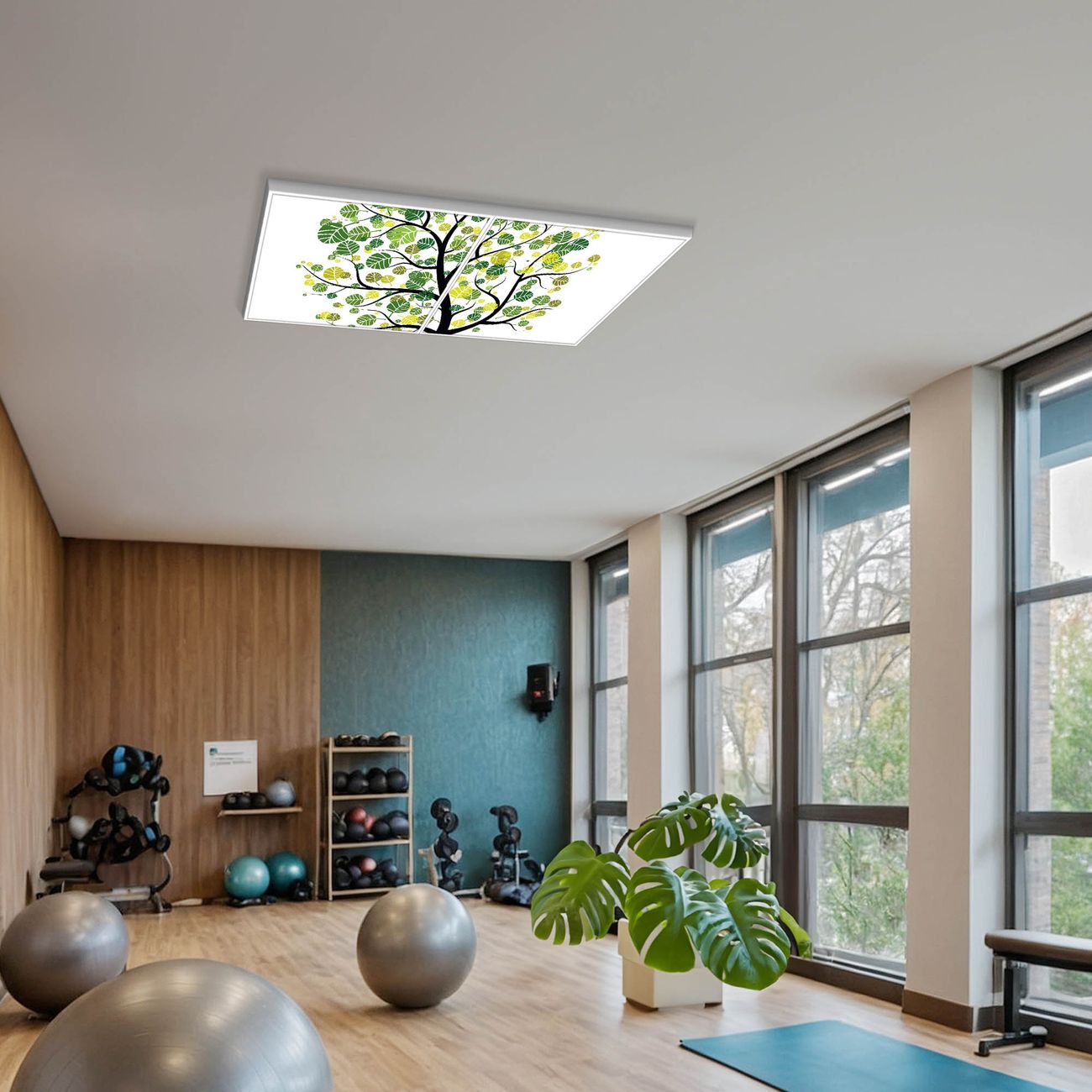 Entdecken Sie unsere vielseitigen Lichtdecken, hier in der Größe 124 x 62cm mit dem Motiv Motiv Laubzauberbaum - Ihre Beleuchtungslösung für jede Umgebung Beleuchten Sie Ihren Raum nicht nur, sondern schaffen Sie Atmosphäre! Die banjado Lichtdecke verwandelt jeden Ort, ob zu Hause, in Praxen, Büros oder Studios in eine Wohlfühloase. Unsere einzelnen Elemente haben eine genormte Einheitsgröße von 62 x 62cm und können somit in jede gängige Rasterdecken verbaut werden. So finden Sie Ihre passende Ausführung: Gern helfen wir Ihnen, die passende Ausführung zu wählen. Hierfür muss die aktuelle Gegebenheit Ihrer Decke oder Wand beachtet werden. Haben Sie bereits eine Rasterdecke (auch Odenwalddecke genannt)? Hier bestellen Sie lediglich das Motiv + Beleuchtungspanel, denn beides wird in die bereits vorhandene Decke eingelegt. Haben Sie eine glatte Decke mit Lichtauslass oder möchten die Lichtdecke an der Wand befestigen? Hier bestellen Sie bitte Motiv + Beleuchtungspanel + Deckenbefestigung, eine Aufbauanleitung liegt immer bei. Die Lichtdecke kann sowohl an der Decke als auch an der Wand montiert werden, perfekt für kreative Lichtakzente oder alternative Beleuchtungslösungen. Haben Sie bereits eine Lichtdecke und möchten nur das Motiv wechseln? Hier bestellen Sie bitte nur Motiv, der Wechsel ist denkbar einfach. Der Aufbau Ihrer banjado Lichtdecke gestaltet sich unkompliziert, dank einer verständlichen Anleitung, die Ihnen Schritt für Schritt durch den Montageprozess hilft. Für die endgültige Installation und den sicheren Anschluss empfehlen wir die Hinzuziehung eines Fachmanns, um die optimale Funktion und Sicherheit Ihrer Beleuchtung zu gewährleisten. Falls Sie einen Fachmann für die Installation benötigen, geben Sie uns gern Bescheid, wir vermitteln Ihnen gern einen geeigneten Ansprechpartner aus Ihrer Nähe. Steuerung: Steigern Sie Ihr Beleuchtungserlebnis mit der nahtlosen Integration in Ihr Smart Home. Durch die Kompatibilität mit der SmartLife App, Alexa und Google Assistant wird Ihr Smartphone zur zentralen Steuerungseinheit. Ihr Handy fungiert hierbei sozusagen als Fernbedienung. Legen Sie individuelle Lichtszenen in der App fest, die bei Aktivierung über den Wand-Ein-/Ausschalter immer wieder abgerufen werden können ohne Handy. Mit der Szenenfunktion in der Smart App können Sie die Beleuchtung personalisieren und steuern, sodass sie auf Ihre individuellen Bedürfnisse, Tagesrhythmus und Stimmung zugeschnitten ist. Beispielsweise können Sie sich in der Morgendämmerung durch ein sanftes Licht wecken lassen oder das Licht der Praxis werktags um 7 Uhr automatisch einschalten lassen. Dieses kann dann natürlich auch zu einer bestimmten Zeit automatisch ausgeschaltet werden. Motivwahl: Diese einzigartige Lichtdecke zeichnet sich durch ihre Fähigkeit aus, die Lichtfarbe je nach gewähltem Motiv anzupassen - ein Baum wirft ein sanftes grünes Licht, während eine Wolkendecke Ihren Raum in ein beruhigendes blaues Leuchten hüllt. Berücksichtigen Sie dies bitte bei Ihrer Motivauswahl. Sie können das Motiv jederzeit ohne großen Aufwand austauschen, ob nach Jahreszeit oder anderem Anlass, unsere Auswahl lässt kaum Wünsche offen. Wir fertigen Ihnen gern eine personalisierte Lichtdecke mit einem eigenen Motiv oder Logo oder Foto, schreiben Sie uns jederzeit an. Technische Daten: Das Motiv ist auf einer 4mm starken Acrylglas Scheibe aufgebracht, das Gesamtgewicht Ihrer Ausführung beträgt 9,9kg. Die Farbtemperatur lässt sich frei einstellen von 3000 bis 6000 Kelvin, damit können Sie stufenlos zwischen warmweiß, neutralweiß und kaltweiß wählen. Die Gesamtleistung bei Ihrer gewählten Ausführung beträgt 80W. Der Lichtstrom beträgt 3600 Lumen, die Nennspannung 230 V. Die Lichtdecke ist mit Schutzart IP20 für den Innenbereich konzipiert und sollte nicht im Nassbereich verwendet werden.