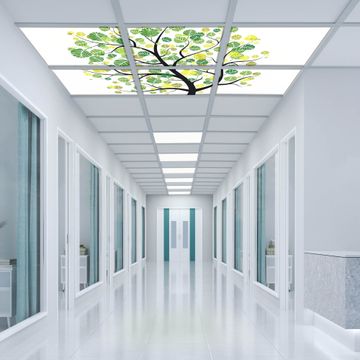 Entdecken Sie unsere vielseitigen Lichtdecken, hier in der Größe 186 x 124cm mit dem Motiv Motiv Laubzauberbaum - Ihre Beleuchtungslösung für jede Umgebung Beleuchten Sie Ihren Raum nicht nur, sondern schaffen Sie Atmosphäre! Die banjado Lichtdecke verwandelt jeden Ort, ob zu Hause, in Praxen, Büros oder Studios in eine Wohlfühloase. Unsere einzelnen Elemente haben eine genormte Einheitsgröße von 62 x 62cm und können somit in jede gängige Rasterdecken verbaut werden. So finden Sie Ihre passende Ausführung: Gern helfen wir Ihnen, die passende Ausführung zu wählen. Hierfür muss die aktuelle Gegebenheit Ihrer Decke oder Wand beachtet werden. Haben Sie bereits eine Rasterdecke (auch Odenwalddecke genannt)? Hier bestellen Sie lediglich das Motiv + Beleuchtungspanel, denn beides wird in die bereits vorhandene Decke eingelegt. Haben Sie eine glatte Decke mit Lichtauslass oder möchten die Lichtdecke an der Wand befestigen? Hier bestellen Sie bitte Motiv + Beleuchtungspanel + Deckenbefestigung, eine Aufbauanleitung liegt immer bei. Die Lichtdecke kann sowohl an der Decke als auch an der Wand montiert werden, perfekt für kreative Lichtakzente oder alternative Beleuchtungslösungen. Haben Sie bereits eine Lichtdecke und möchten nur das Motiv wechseln? Hier bestellen Sie bitte nur Motiv, der Wechsel ist denkbar einfach. Der Aufbau Ihrer banjado Lichtdecke gestaltet sich unkompliziert, dank einer verständlichen Anleitung, die Ihnen Schritt für Schritt durch den Montageprozess hilft. Für die endgültige Installation und den sicheren Anschluss empfehlen wir die Hinzuziehung eines Fachmanns, um die optimale Funktion und Sicherheit Ihrer Beleuchtung zu gewährleisten. Falls Sie einen Fachmann für die Installation benötigen, geben Sie uns gern Bescheid, wir vermitteln Ihnen gern einen geeigneten Ansprechpartner aus Ihrer Nähe. Steuerung: Steigern Sie Ihr Beleuchtungserlebnis mit der nahtlosen Integration in Ihr Smart Home. Durch die Kompatibilität mit der SmartLife App, Alexa und Google Assistant wird Ihr Smartphone zur zentralen Steuerungseinheit. Ihr Handy fungiert hierbei sozusagen als Fernbedienung. Legen Sie individuelle Lichtszenen in der App fest, die bei Aktivierung über den Wand-Ein-/Ausschalter immer wieder abgerufen werden können ohne Handy. Mit der Szenenfunktion in der Smart App können Sie die Beleuchtung personalisieren und steuern, sodass sie auf Ihre individuellen Bedürfnisse, Tagesrhythmus und Stimmung zugeschnitten ist. Beispielsweise können Sie sich in der Morgendämmerung durch ein sanftes Licht wecken lassen oder das Licht der Praxis werktags um 7 Uhr automatisch einschalten lassen. Dieses kann dann natürlich auch zu einer bestimmten Zeit automatisch ausgeschaltet werden. Motivwahl: Diese einzigartige Lichtdecke zeichnet sich durch ihre Fähigkeit aus, die Lichtfarbe je nach gewähltem Motiv anzupassen - ein Baum wirft ein sanftes grünes Licht, während eine Wolkendecke Ihren Raum in ein beruhigendes blaues Leuchten hüllt. Berücksichtigen Sie dies bitte bei Ihrer Motivauswahl. Sie können das Motiv jederzeit ohne großen Aufwand austauschen, ob nach Jahreszeit oder anderem Anlass, unsere Auswahl lässt kaum Wünsche offen. Wir fertigen Ihnen gern eine personalisierte Lichtdecke mit einem eigenen Motiv oder Logo oder Foto, schreiben Sie uns jederzeit an. Technische Daten: Das Motiv ist auf einer 4mm starken Acrylglas Scheibe aufgebracht, das Gesamtgewicht Ihrer Ausführung beträgt 26,6kg. Die Farbtemperatur lässt sich frei einstellen von 3000 bis 6000 Kelvin, damit können Sie stufenlos zwischen warmweiß, neutralweiß und kaltweiß wählen. Die Gesamtleistung bei Ihrer gewählten Ausführung beträgt 240W. Der Lichtstrom beträgt 3600 Lumen, die Nennspannung 230 V. Die Lichtdecke ist mit Schutzart IP20 für den Innenbereich konzipiert und sollte nicht im Nassbereich verwendet werden.