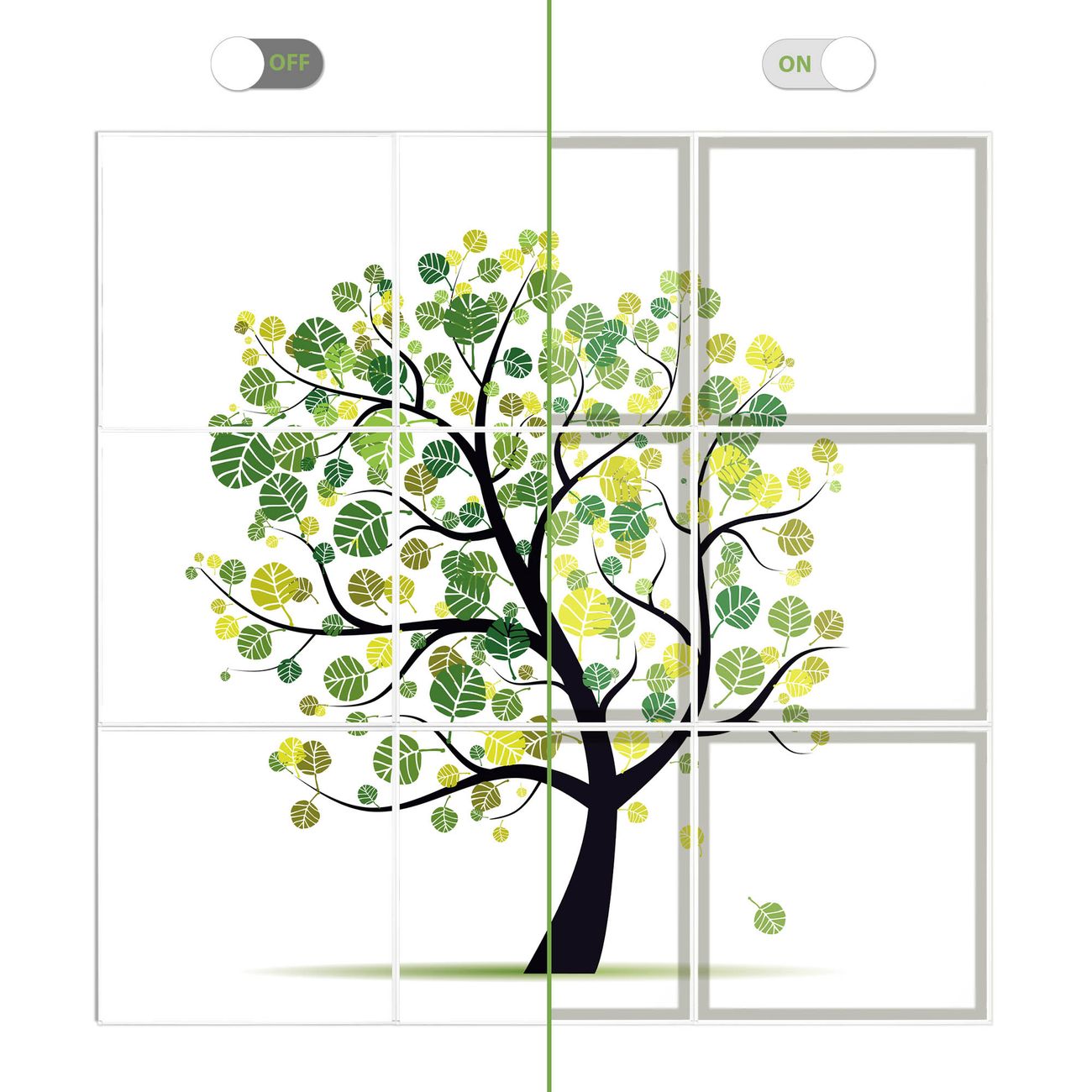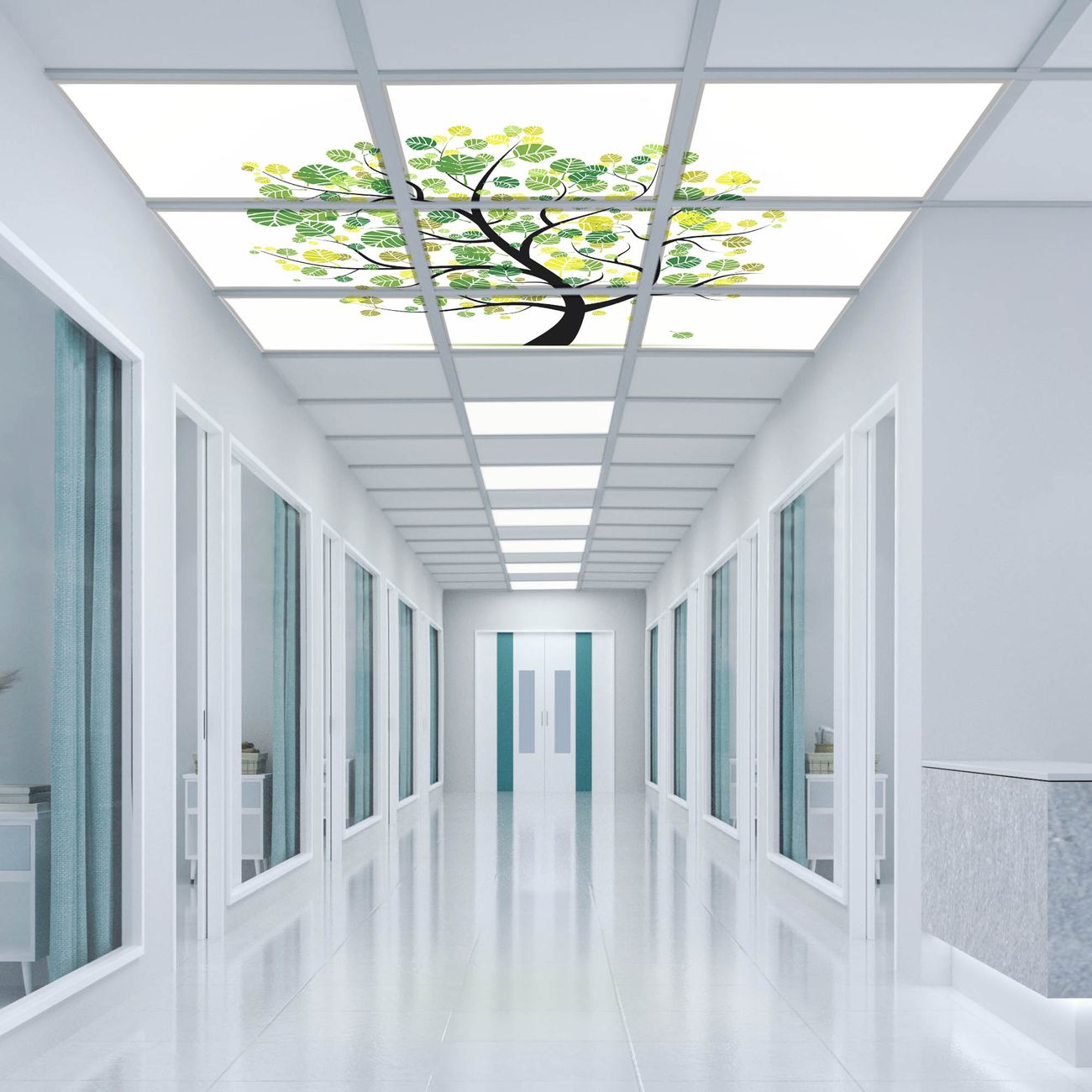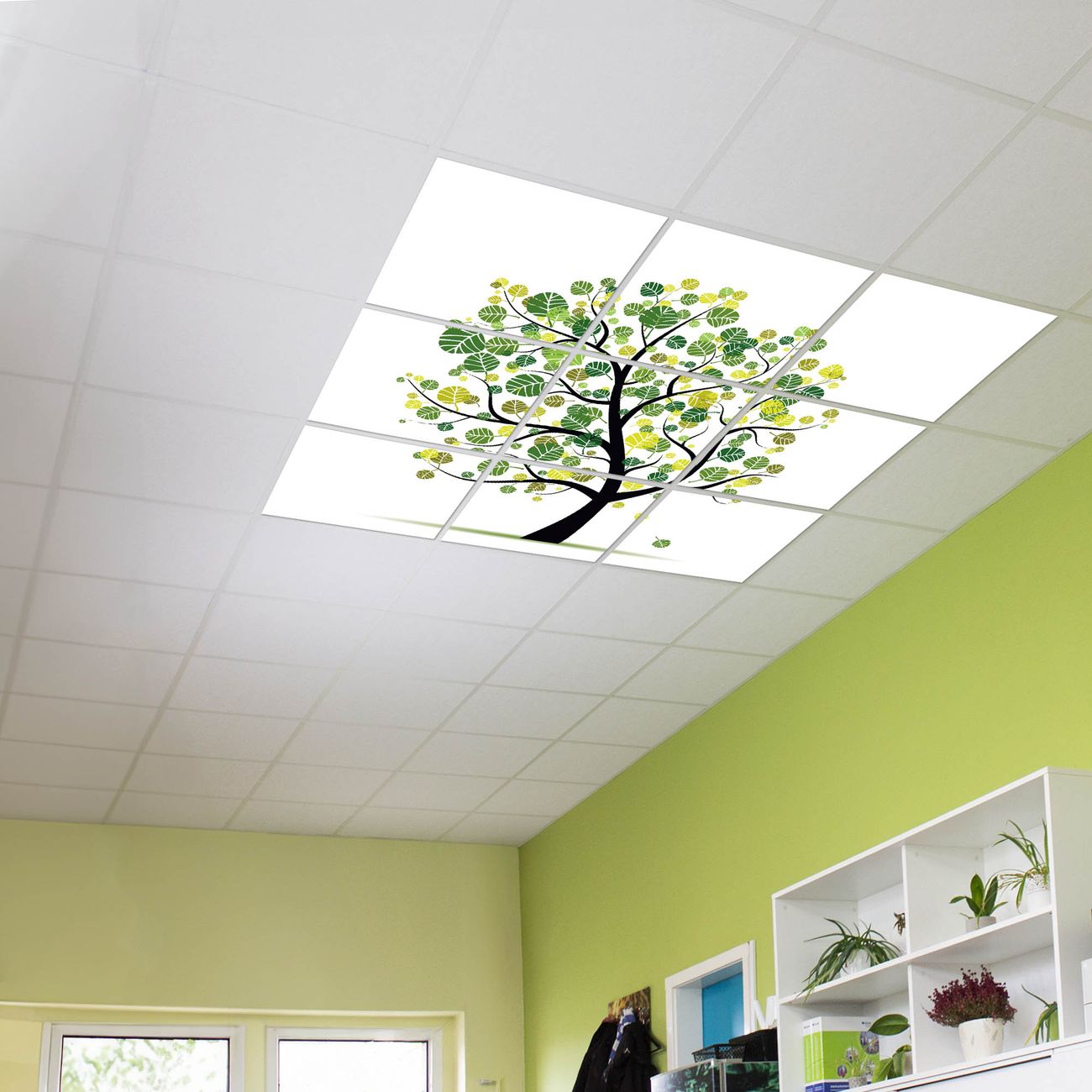 Entdecken Sie unsere vielseitigen Lichtdecken, hier in der Größe 186 x 186cm mit dem Motiv Motiv Laubzauberbaum - Ihre Beleuchtungslösung für jede Umgebung Beleuchten Sie Ihren Raum nicht nur, sondern schaffen Sie Atmosphäre! Die banjado Lichtdecke verwandelt jeden Ort, ob zu Hause, in Praxen, Büros oder Studios in eine Wohlfühloase. Unsere einzelnen Elemente haben eine genormte Einheitsgröße von 62 x 62cm und können somit in jede gängige Rasterdecken verbaut werden. So finden Sie Ihre passende Ausführung: Gern helfen wir Ihnen, die passende Ausführung zu wählen. Hierfür muss die aktuelle Gegebenheit Ihrer Decke oder Wand beachtet werden. Haben Sie bereits eine Rasterdecke (auch Odenwalddecke genannt)? Hier bestellen Sie lediglich das Motiv + Beleuchtungspanel, denn beides wird in die bereits vorhandene Decke eingelegt. Haben Sie eine glatte Decke mit Lichtauslass oder möchten die Lichtdecke an der Wand befestigen? Hier bestellen Sie bitte Motiv + Beleuchtungspanel + Deckenbefestigung, eine Aufbauanleitung liegt immer bei. Die Lichtdecke kann sowohl an der Decke als auch an der Wand montiert werden, perfekt für kreative Lichtakzente oder alternative Beleuchtungslösungen. Haben Sie bereits eine Lichtdecke und möchten nur das Motiv wechseln? Hier bestellen Sie bitte nur Motiv, der Wechsel ist denkbar einfach. Der Aufbau Ihrer banjado Lichtdecke gestaltet sich unkompliziert, dank einer verständlichen Anleitung, die Ihnen Schritt für Schritt durch den Montageprozess hilft. Für die endgültige Installation und den sicheren Anschluss empfehlen wir die Hinzuziehung eines Fachmanns, um die optimale Funktion und Sicherheit Ihrer Beleuchtung zu gewährleisten. Falls Sie einen Fachmann für die Installation benötigen, geben Sie uns gern Bescheid, wir vermitteln Ihnen gern einen geeigneten Ansprechpartner aus Ihrer Nähe. Steuerung: Steigern Sie Ihr Beleuchtungserlebnis mit der nahtlosen Integration in Ihr Smart Home. Durch die Kompatibilität mit der SmartLife App, Alexa und Google Assistant wird Ihr Smartphone zur zentralen Steuerungseinheit. Ihr Handy fungiert hierbei sozusagen als Fernbedienung. Legen Sie individuelle Lichtszenen in der App fest, die bei Aktivierung über den Wand-Ein-/Ausschalter immer wieder abgerufen werden können ohne Handy. Mit der Szenenfunktion in der Smart App können Sie die Beleuchtung personalisieren und steuern, sodass sie auf Ihre individuellen Bedürfnisse, Tagesrhythmus und Stimmung zugeschnitten ist. Beispielsweise können Sie sich in der Morgendämmerung durch ein sanftes Licht wecken lassen oder das Licht der Praxis werktags um 7 Uhr automatisch einschalten lassen. Dieses kann dann natürlich auch zu einer bestimmten Zeit automatisch ausgeschaltet werden. Motivwahl: Diese einzigartige Lichtdecke zeichnet sich durch ihre Fähigkeit aus, die Lichtfarbe je nach gewähltem Motiv anzupassen - ein Baum wirft ein sanftes grünes Licht, während eine Wolkendecke Ihren Raum in ein beruhigendes blaues Leuchten hüllt. Berücksichtigen Sie dies bitte bei Ihrer Motivauswahl. Sie können das Motiv jederzeit ohne großen Aufwand austauschen, ob nach Jahreszeit oder anderem Anlass, unsere Auswahl lässt kaum Wünsche offen. Wir fertigen Ihnen gern eine personalisierte Lichtdecke mit einem eigenen Motiv oder Logo oder Foto, schreiben Sie uns jederzeit an. Technische Daten: Das Motiv ist auf einer 4mm starken Acrylglas Scheibe aufgebracht, das Gesamtgewicht Ihrer Ausführung beträgt 20,4kg. Die Farbtemperatur lässt sich frei einstellen von 3000 bis 6000 Kelvin, damit können Sie stufenlos zwischen warmweiß, neutralweiß und kaltweiß wählen. Die Gesamtleistung bei Ihrer gewählten Ausführung beträgt 360W. Der Lichtstrom beträgt 3600 Lumen, die Nennspannung 230 V. Die Lichtdecke ist mit Schutzart IP20 für den Innenbereich konzipiert und sollte nicht im Nassbereich verwendet werden.