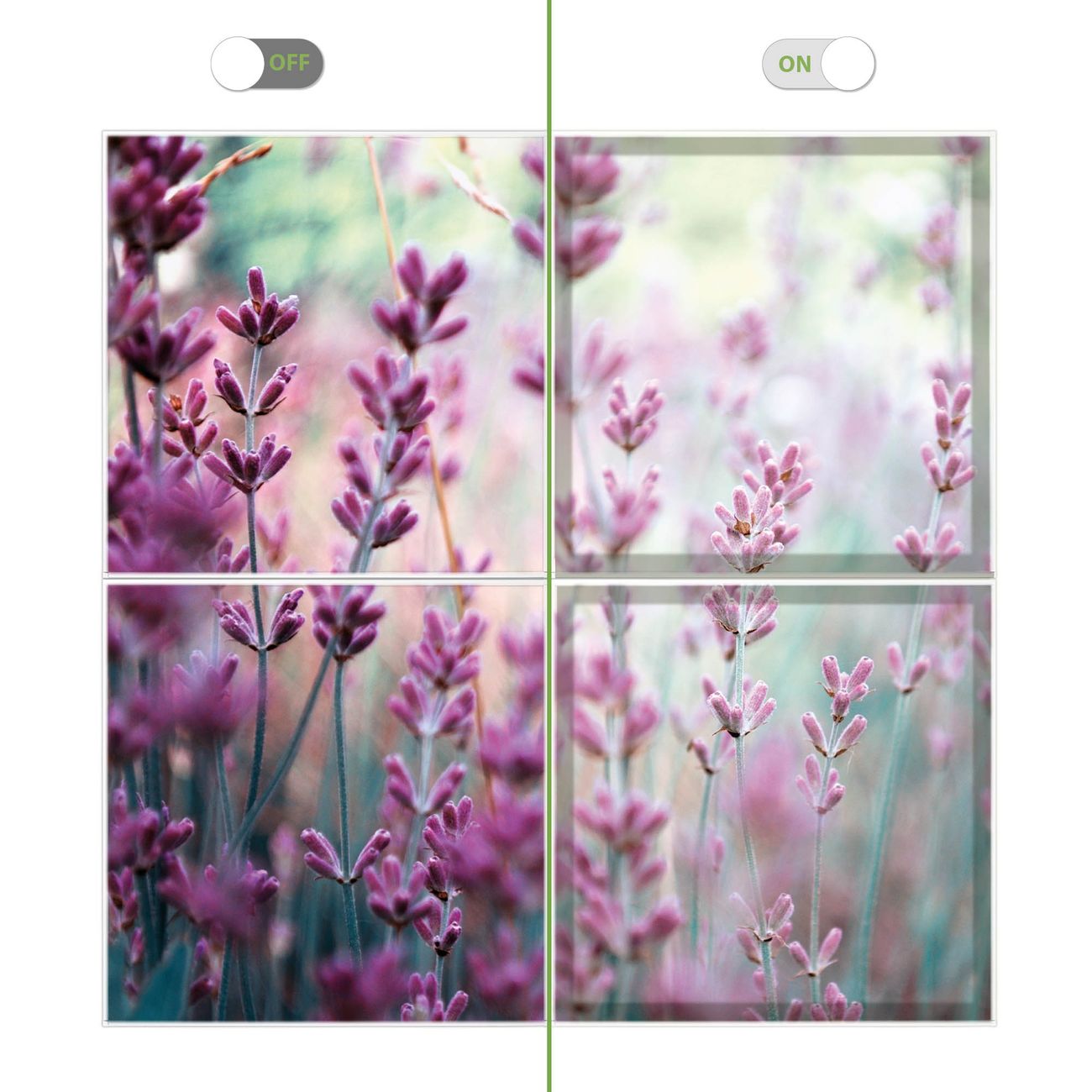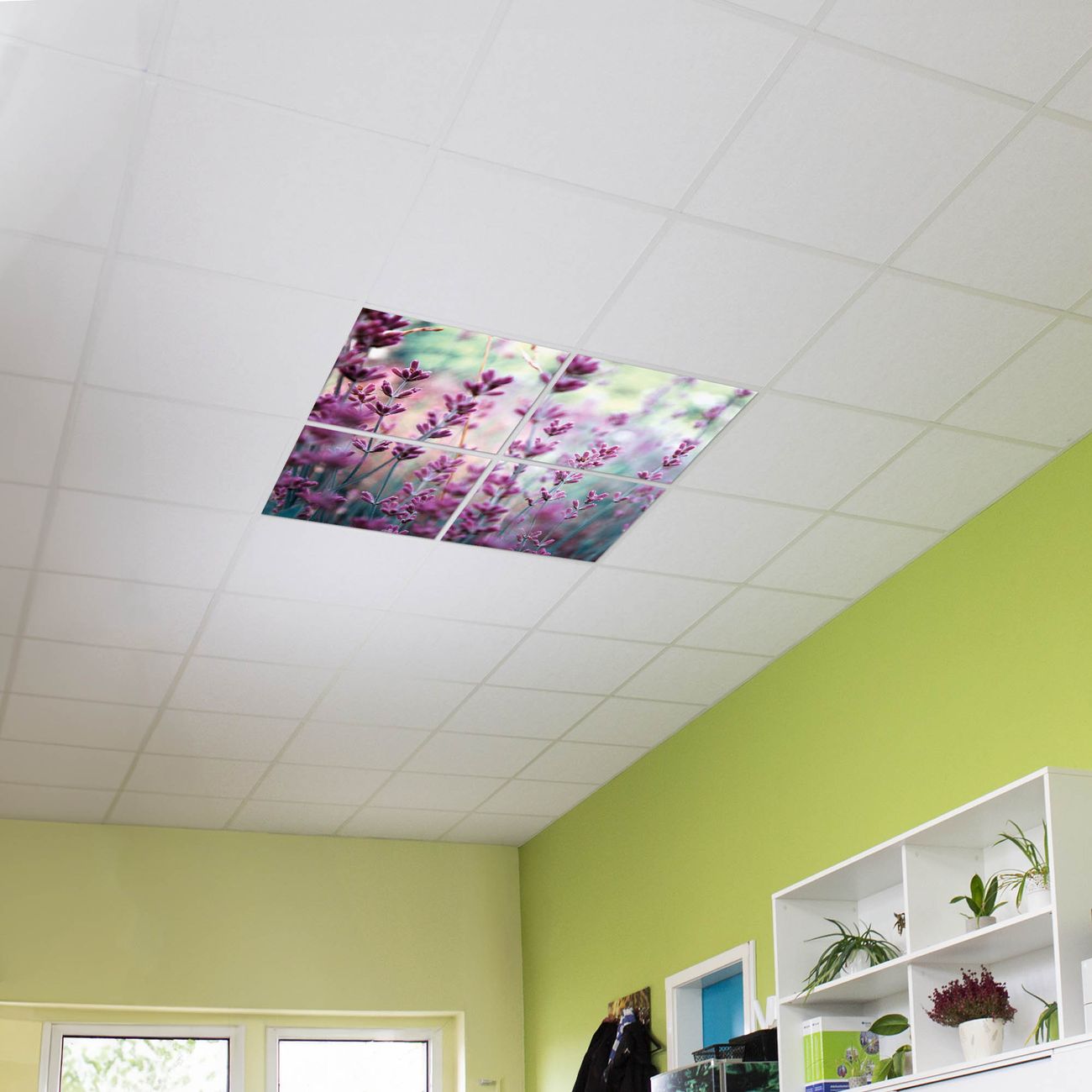 Entdecken Sie unsere vielseitigen Lichtdecken, hier in der Größe 124 x 124cm mit dem Motiv Motiv Lavendel 2 - Ihre Beleuchtungslösung für jede Umgebung Beleuchten Sie Ihren Raum nicht nur, sondern schaffen Sie Atmosphäre! Die banjado Lichtdecke verwandelt jeden Ort, ob zu Hause, in Praxen, Büros oder Studios in eine Wohlfühloase. Unsere einzelnen Elemente haben eine genormte Einheitsgröße von 62 x 62cm und können somit in jede gängige Rasterdecken verbaut werden. So finden Sie Ihre passende Ausführung: Gern helfen wir Ihnen, die passende Ausführung zu wählen. Hierfür muss die aktuelle Gegebenheit Ihrer Decke oder Wand beachtet werden. Haben Sie bereits eine Rasterdecke (auch Odenwalddecke genannt)? Hier bestellen Sie lediglich das Motiv + Beleuchtungspanel, denn beides wird in die bereits vorhandene Decke eingelegt. Haben Sie eine glatte Decke mit Lichtauslass oder möchten die Lichtdecke an der Wand befestigen? Hier bestellen Sie bitte Motiv + Beleuchtungspanel + Deckenbefestigung, eine Aufbauanleitung liegt immer bei. Die Lichtdecke kann sowohl an der Decke als auch an der Wand montiert werden, perfekt für kreative Lichtakzente oder alternative Beleuchtungslösungen. Haben Sie bereits eine Lichtdecke und möchten nur das Motiv wechseln? Hier bestellen Sie bitte nur Motiv, der Wechsel ist denkbar einfach. Der Aufbau Ihrer banjado Lichtdecke gestaltet sich unkompliziert, dank einer verständlichen Anleitung, die Ihnen Schritt für Schritt durch den Montageprozess hilft. Für die endgültige Installation und den sicheren Anschluss empfehlen wir die Hinzuziehung eines Fachmanns, um die optimale Funktion und Sicherheit Ihrer Beleuchtung zu gewährleisten. Falls Sie einen Fachmann für die Installation benötigen, geben Sie uns gern Bescheid, wir vermitteln Ihnen gern einen geeigneten Ansprechpartner aus Ihrer Nähe. Steuerung: Steigern Sie Ihr Beleuchtungserlebnis mit der nahtlosen Integration in Ihr Smart Home. Durch die Kompatibilität mit der SmartLife App, Alexa und Google Assistant wird Ihr Smartphone zur zentralen Steuerungseinheit. Ihr Handy fungiert hierbei sozusagen als Fernbedienung. Legen Sie individuelle Lichtszenen in der App fest, die bei Aktivierung über den Wand-Ein-/Ausschalter immer wieder abgerufen werden können ohne Handy. Mit der Szenenfunktion in der Smart App können Sie die Beleuchtung personalisieren und steuern, sodass sie auf Ihre individuellen Bedürfnisse, Tagesrhythmus und Stimmung zugeschnitten ist. Beispielsweise können Sie sich in der Morgendämmerung durch ein sanftes Licht wecken lassen oder das Licht der Praxis werktags um 7 Uhr automatisch einschalten lassen. Dieses kann dann natürlich auch zu einer bestimmten Zeit automatisch ausgeschaltet werden. Motivwahl: Diese einzigartige Lichtdecke zeichnet sich durch ihre Fähigkeit aus, die Lichtfarbe je nach gewähltem Motiv anzupassen - ein Baum wirft ein sanftes grünes Licht, während eine Wolkendecke Ihren Raum in ein beruhigendes blaues Leuchten hüllt. Berücksichtigen Sie dies bitte bei Ihrer Motivauswahl. Sie können das Motiv jederzeit ohne großen Aufwand austauschen, ob nach Jahreszeit oder anderem Anlass, unsere Auswahl lässt kaum Wünsche offen. Wir fertigen Ihnen gern eine personalisierte Lichtdecke mit einem eigenen Motiv oder Logo oder Foto, schreiben Sie uns jederzeit an. Technische Daten: Das Motiv ist auf einer 4mm starken Acrylglas Scheibe aufgebracht, das Gesamtgewicht Ihrer Ausführung beträgt 9,0kg. Die Farbtemperatur lässt sich frei einstellen von 3000 bis 6000 Kelvin, damit können Sie stufenlos zwischen warmweiß, neutralweiß und kaltweiß wählen. Die Gesamtleistung bei Ihrer gewählten Ausführung beträgt 160W. Der Lichtstrom beträgt 3600 Lumen, die Nennspannung 230 V. Die Lichtdecke ist mit Schutzart IP20 für den Innenbereich konzipiert und sollte nicht im Nassbereich verwendet werden.