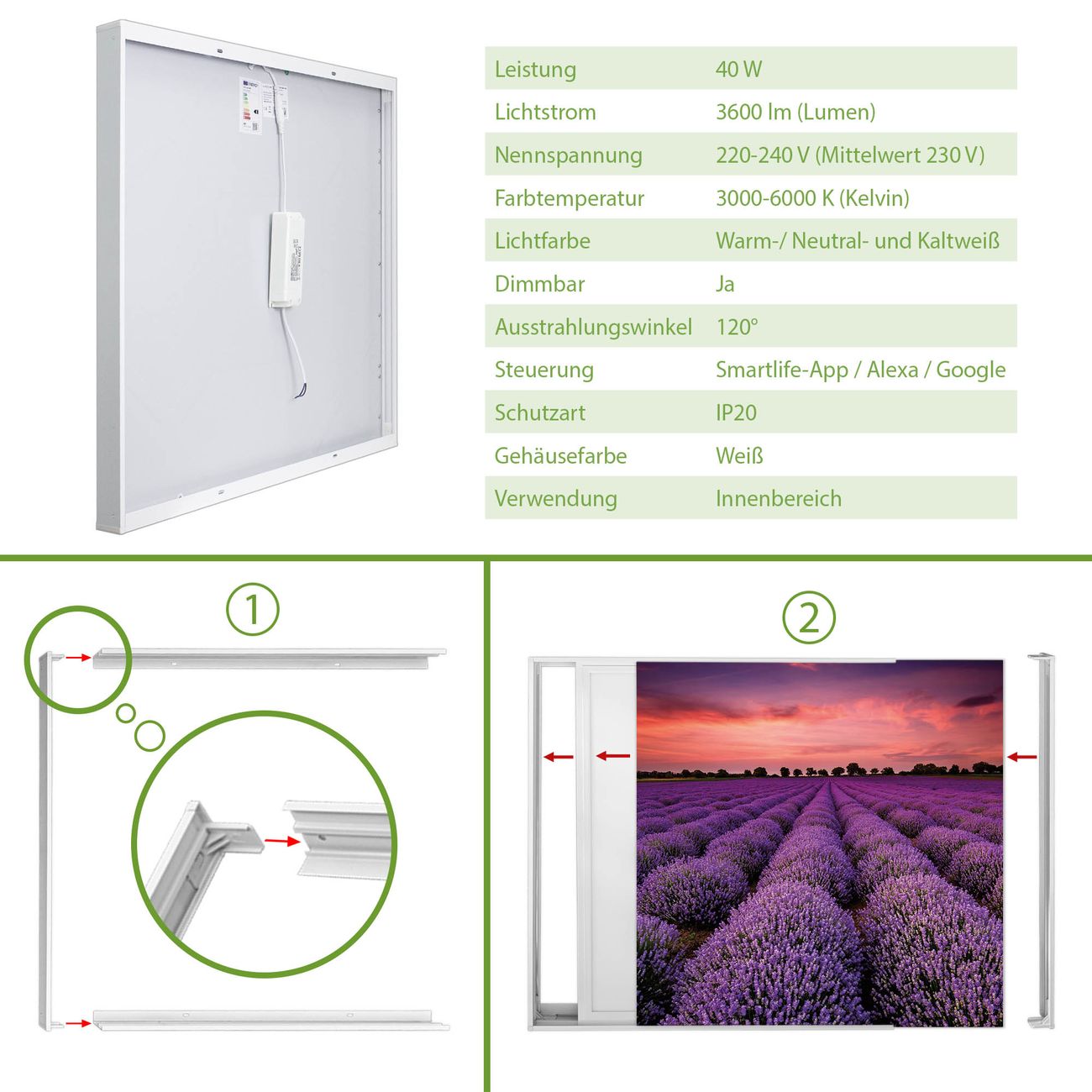 banjado Motivlichtdecke LED Lampe Smart Home verschiedene Größen Motiv Lavendelfeld